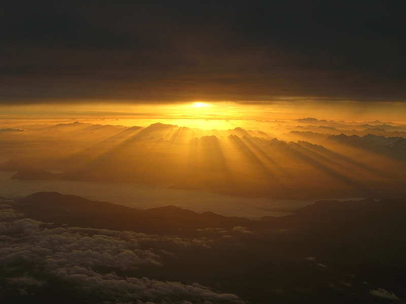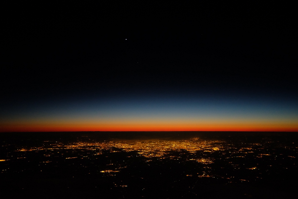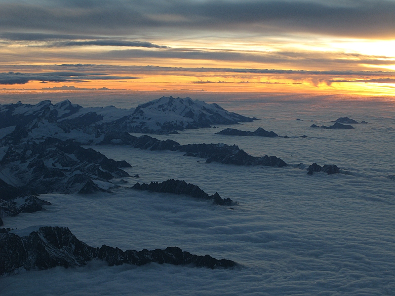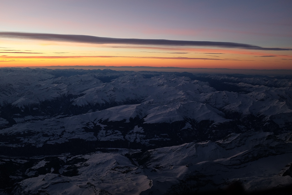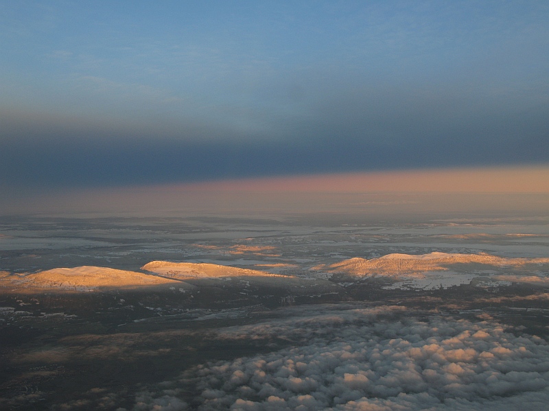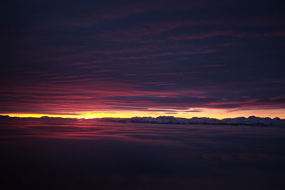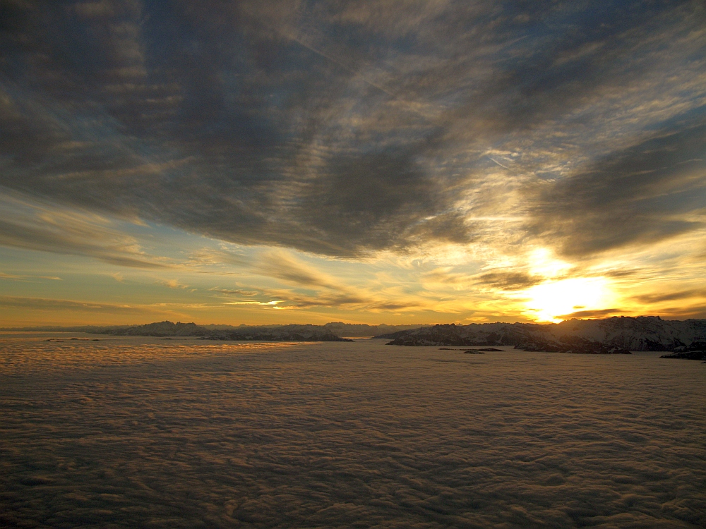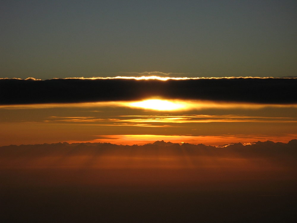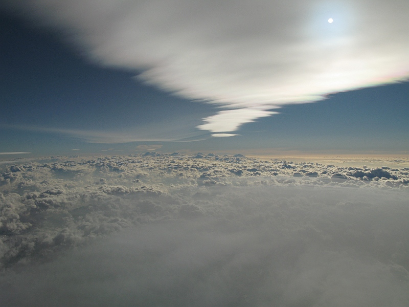 Wieder auf dem Heimflug. Der erste Sonnenuntergang seit 10 Tagen.