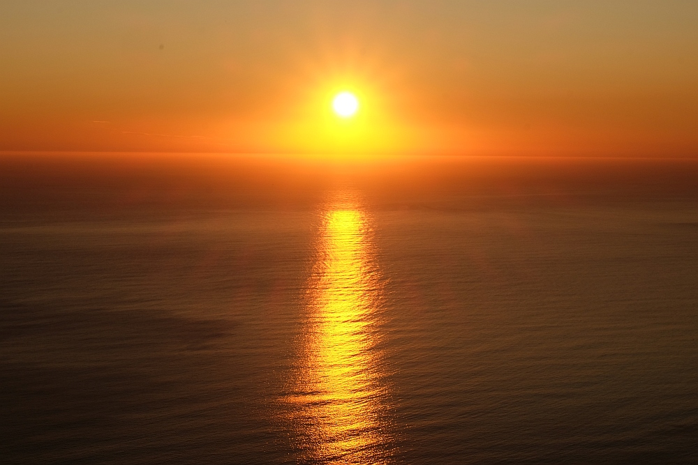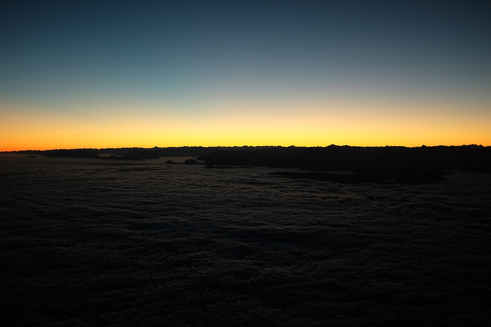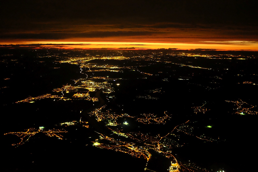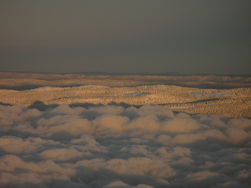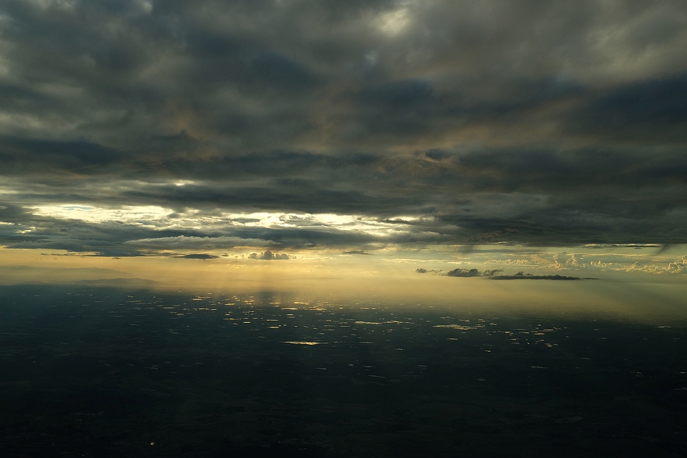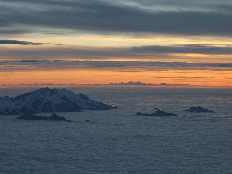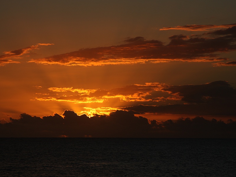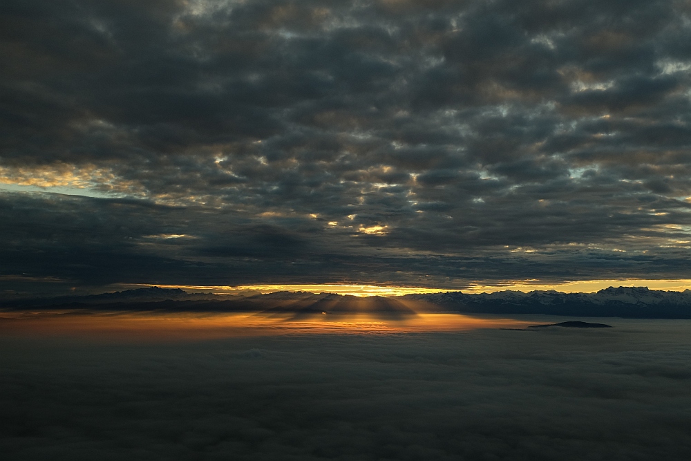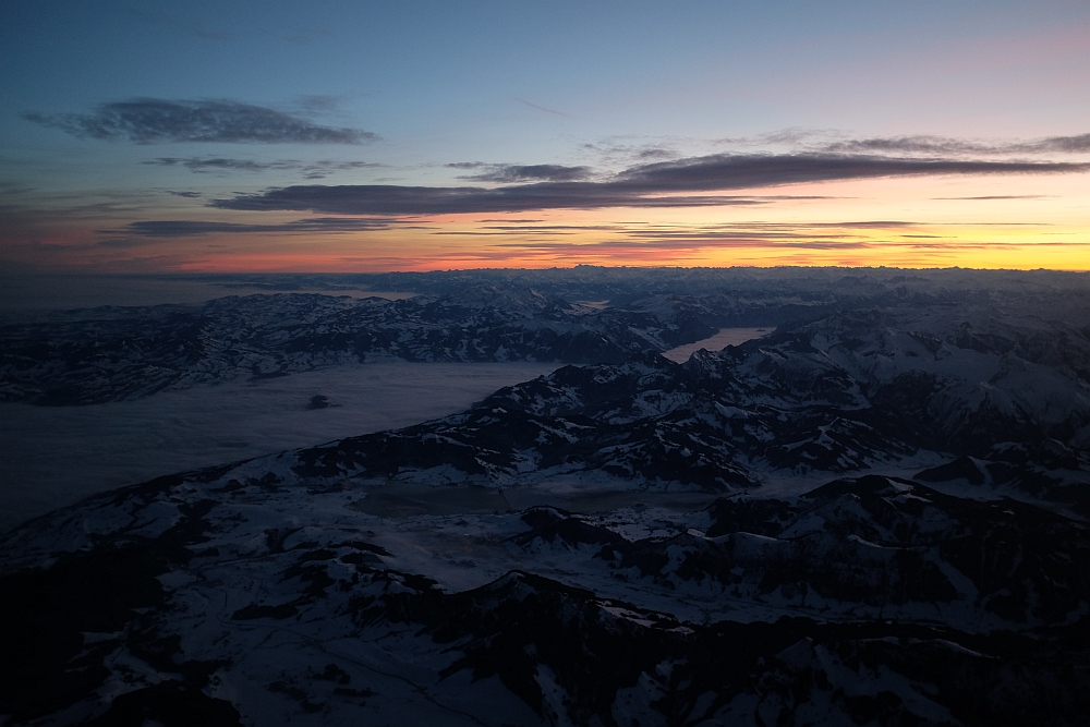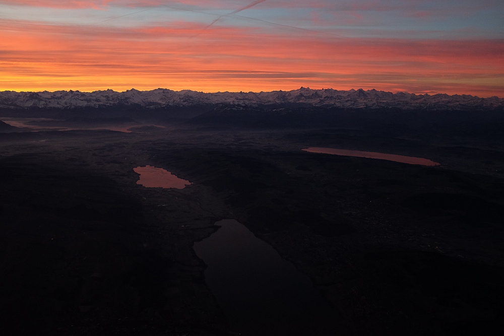 Wieder auf dem Heimflug. Der erste Sonnenuntergang seit 10 Tagen.