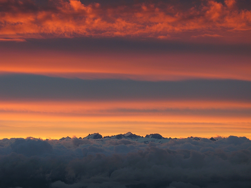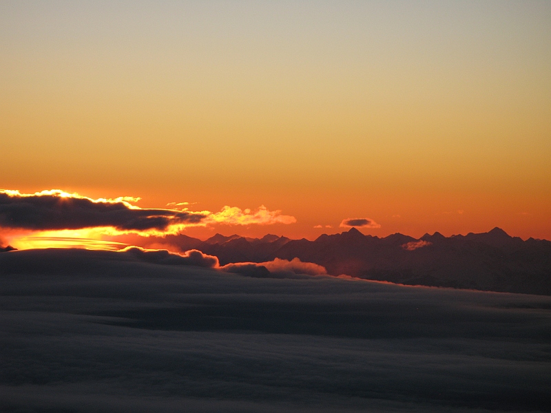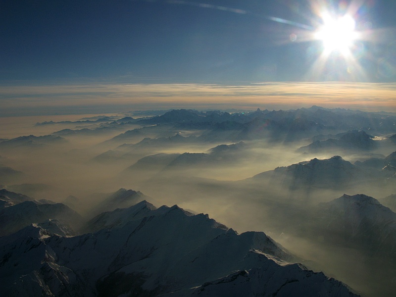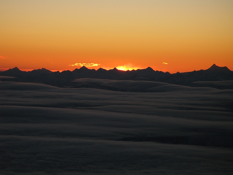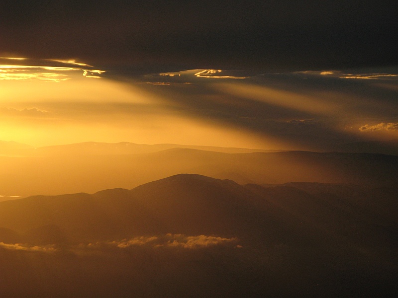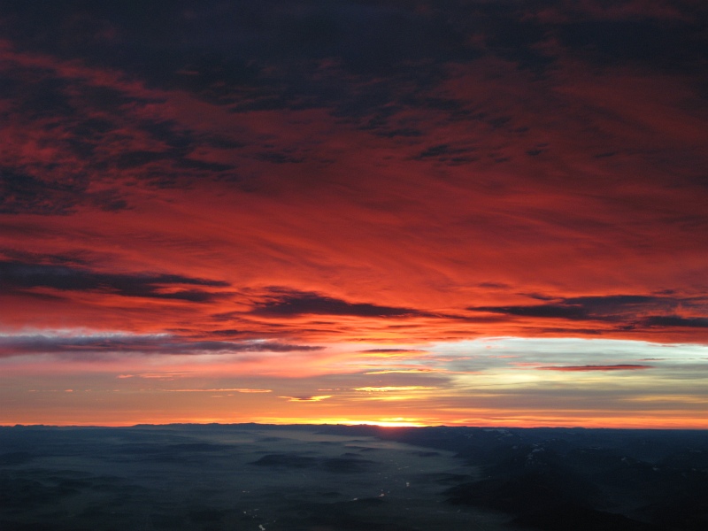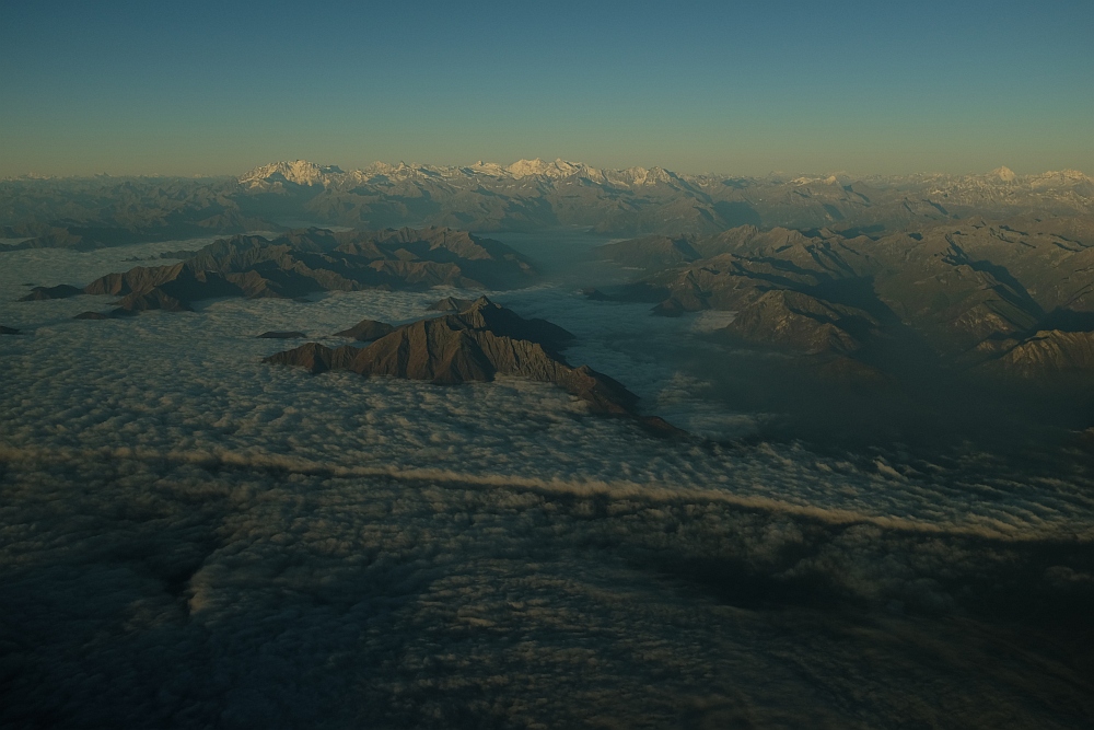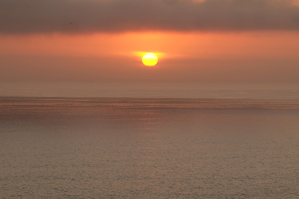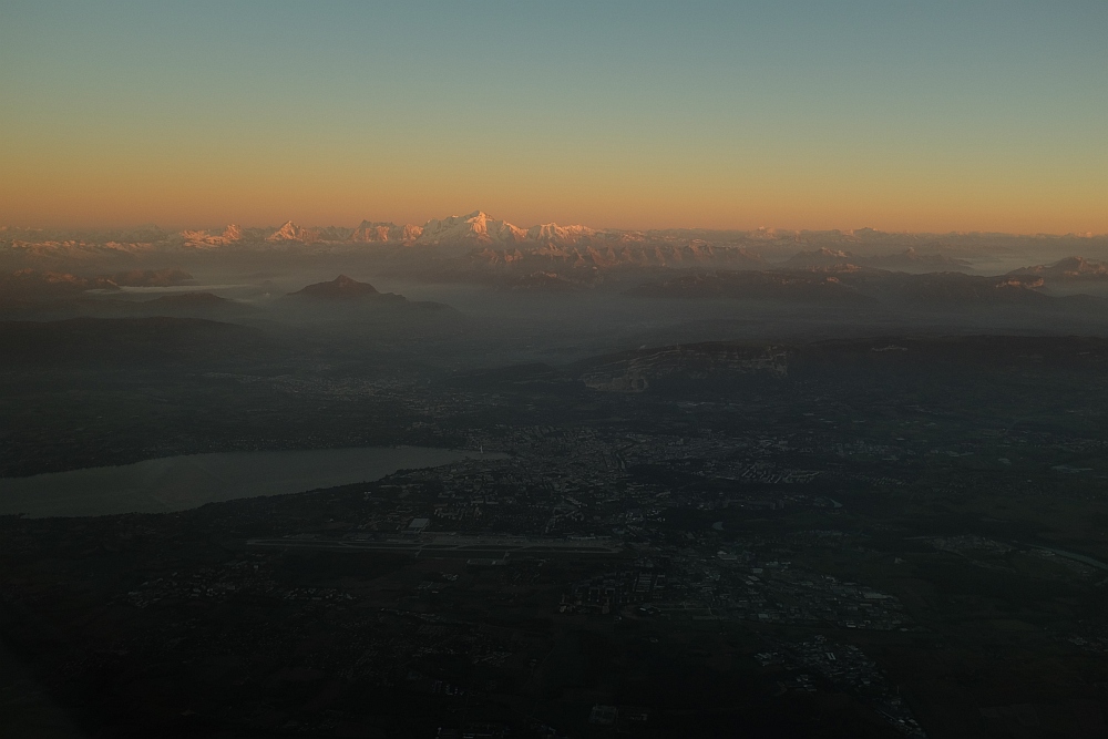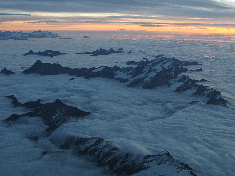 Wieder auf dem Heimflug. Der erste Sonnenuntergang seit 10 Tagen.