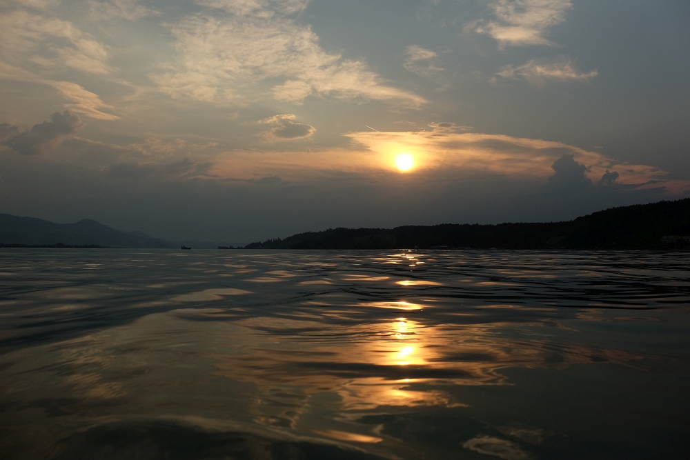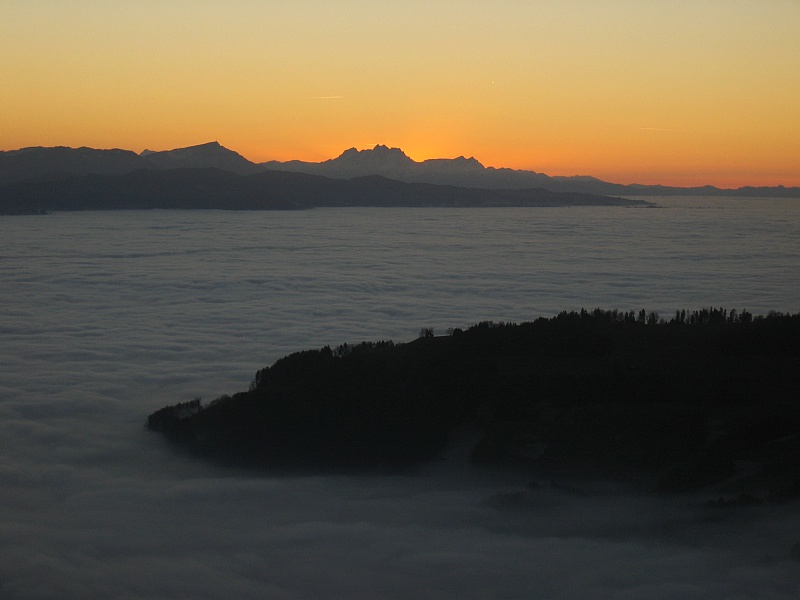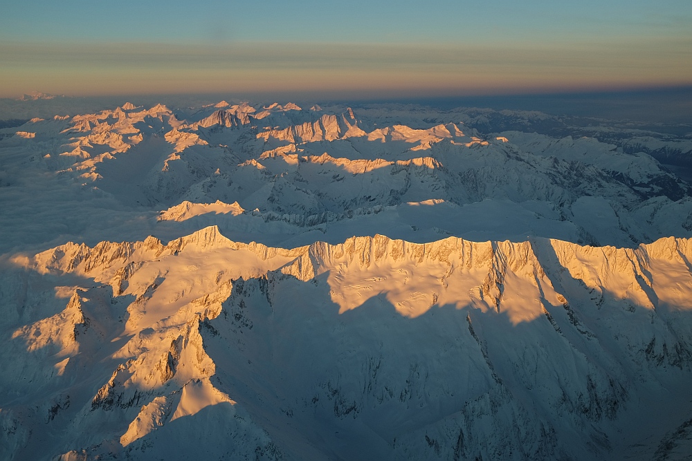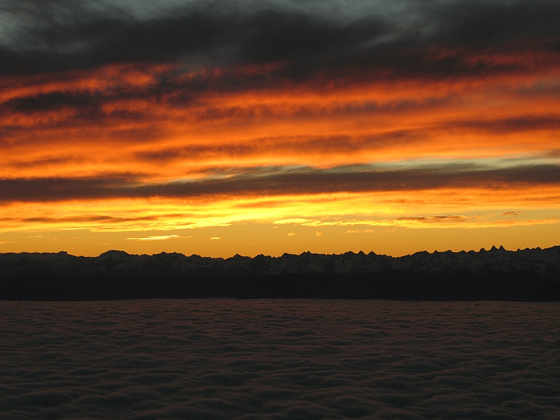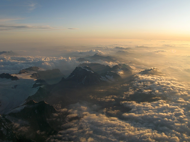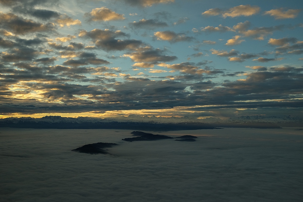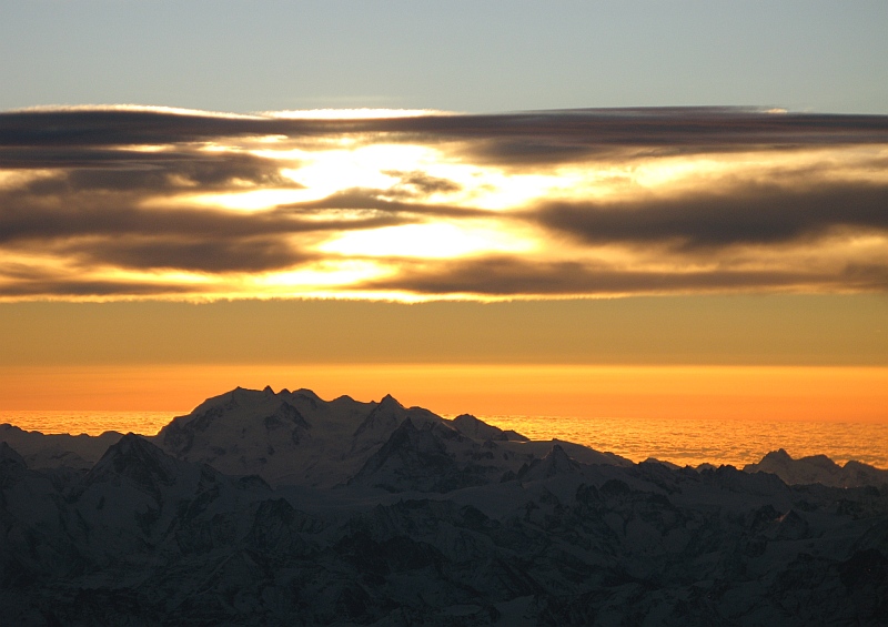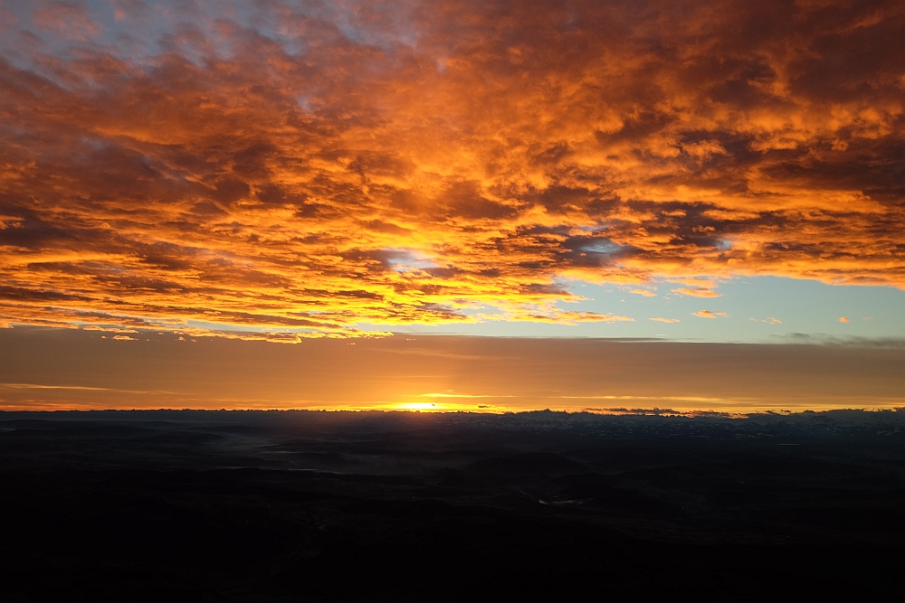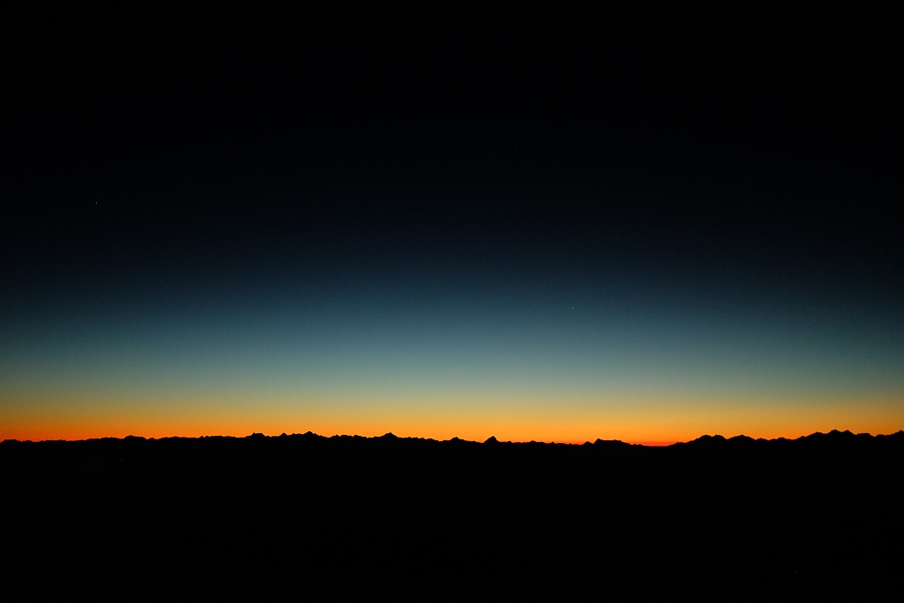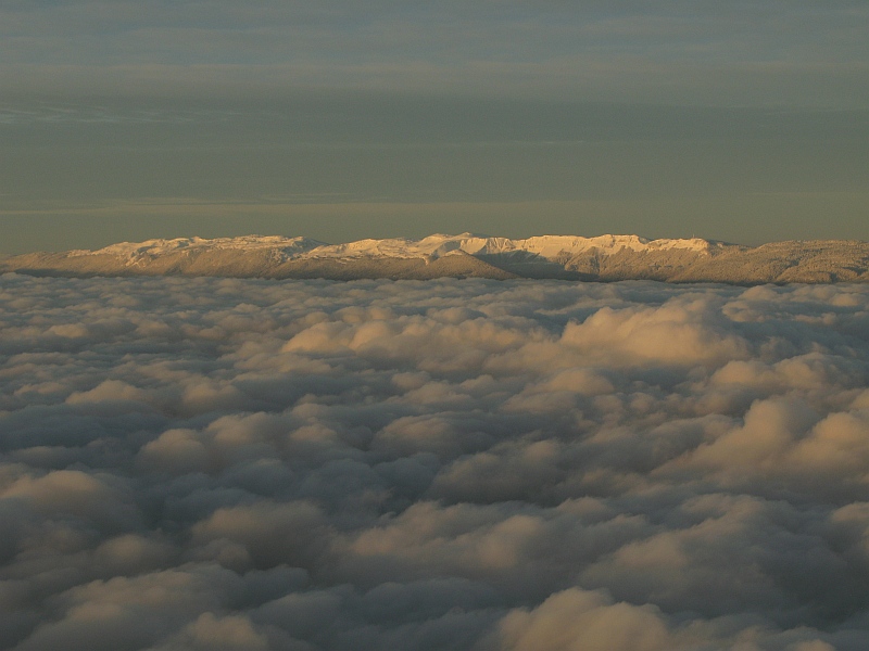 Wieder auf dem Heimflug. Der erste Sonnenuntergang seit 10 Tagen.