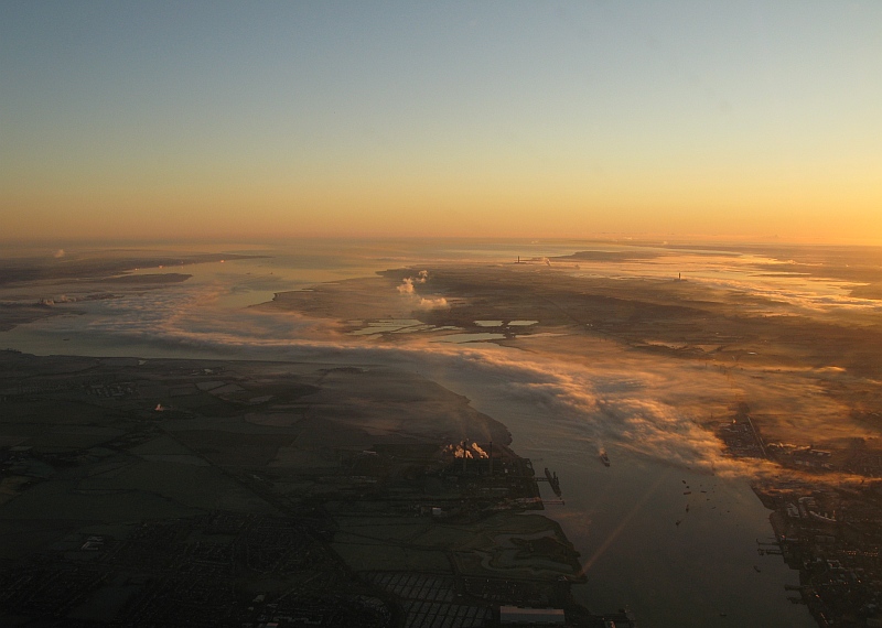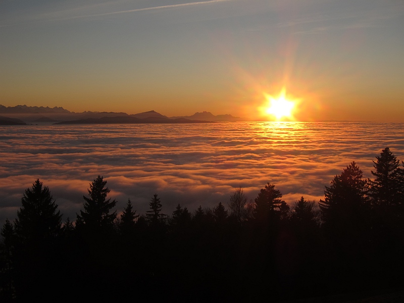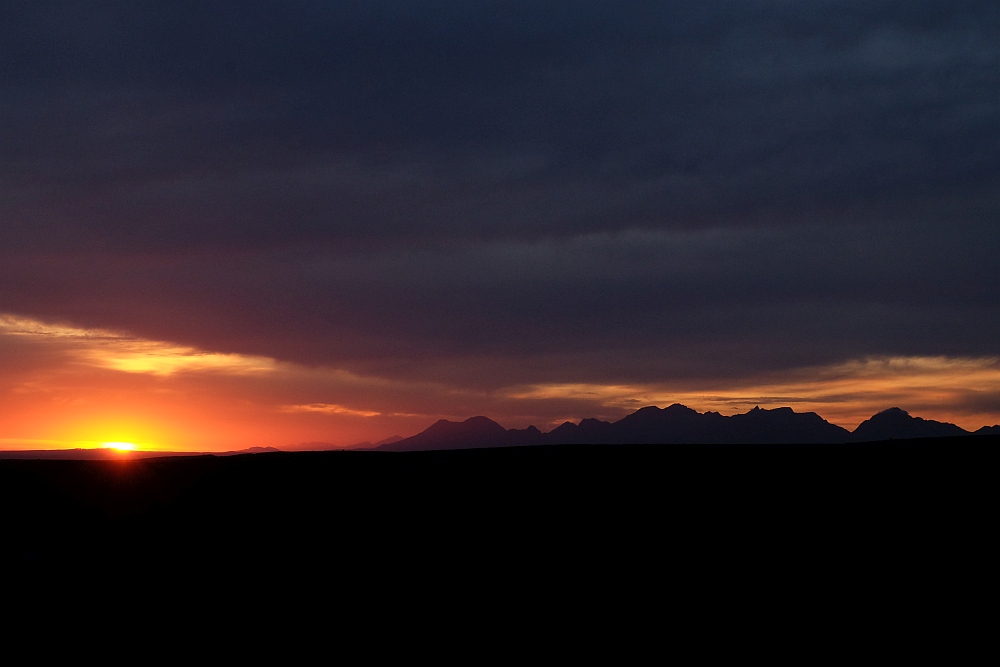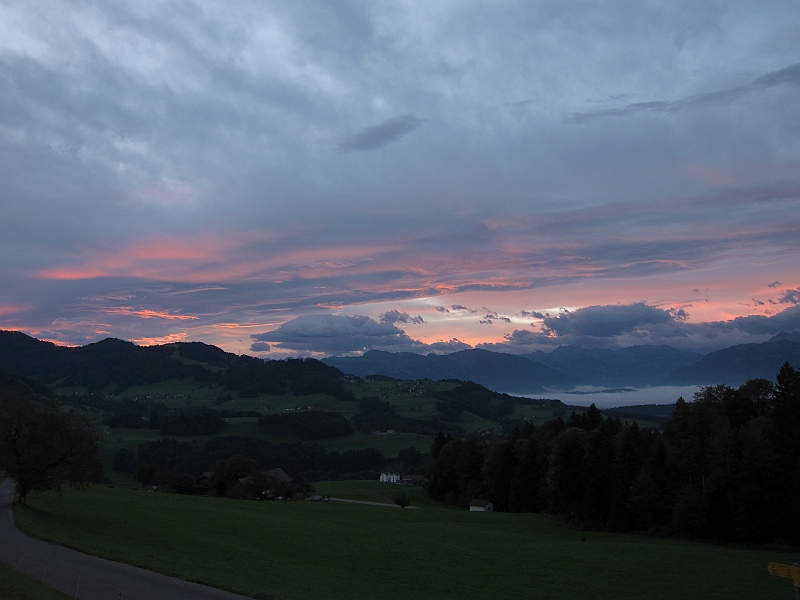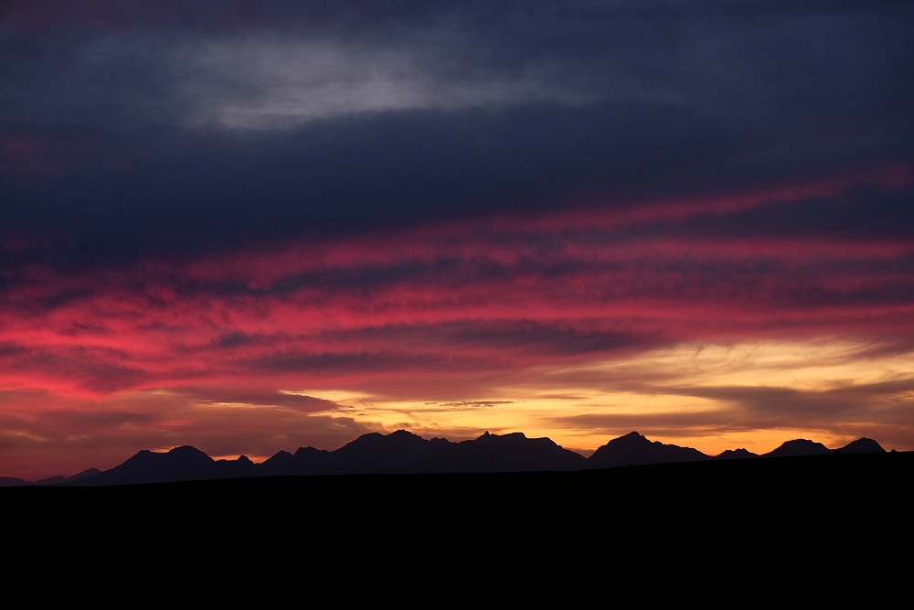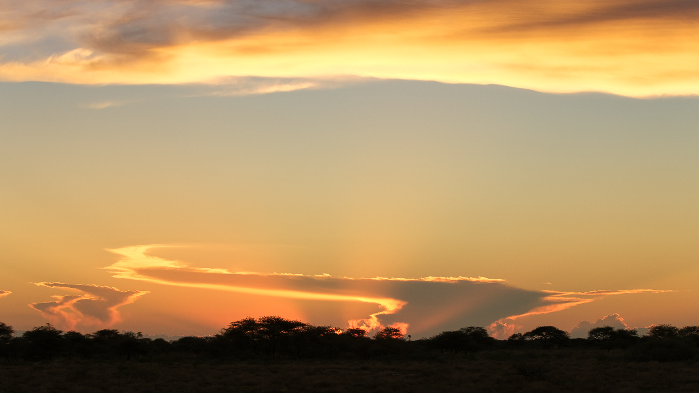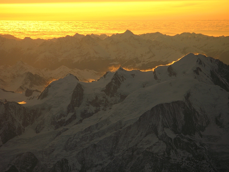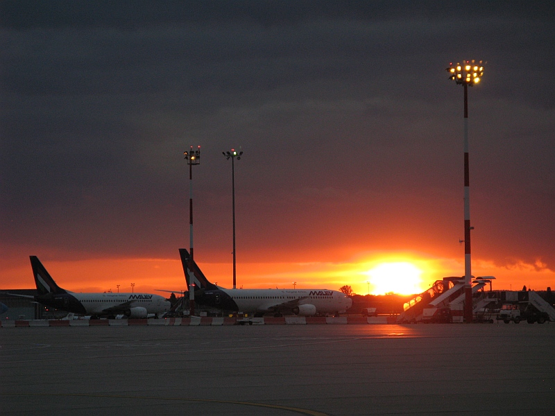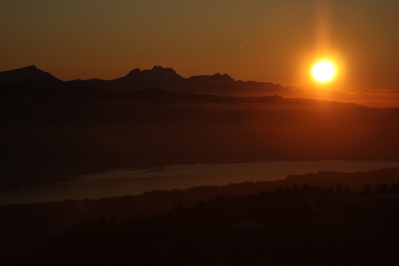 Wieder auf dem Heimflug. Der erste Sonnenuntergang seit 10 Tagen.