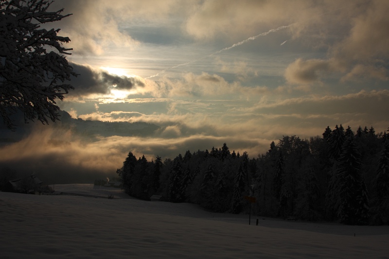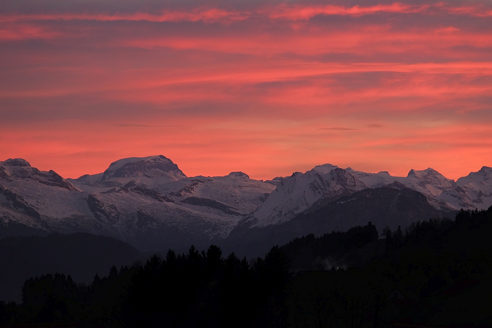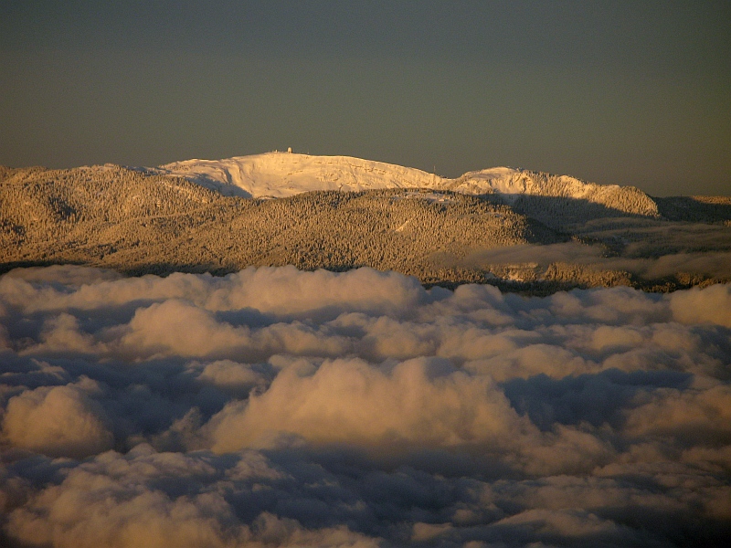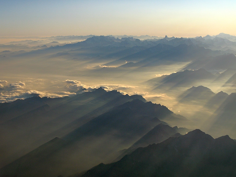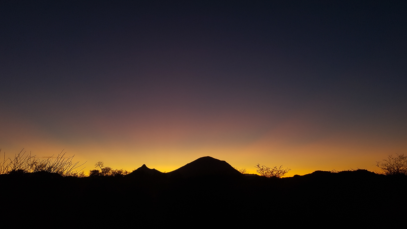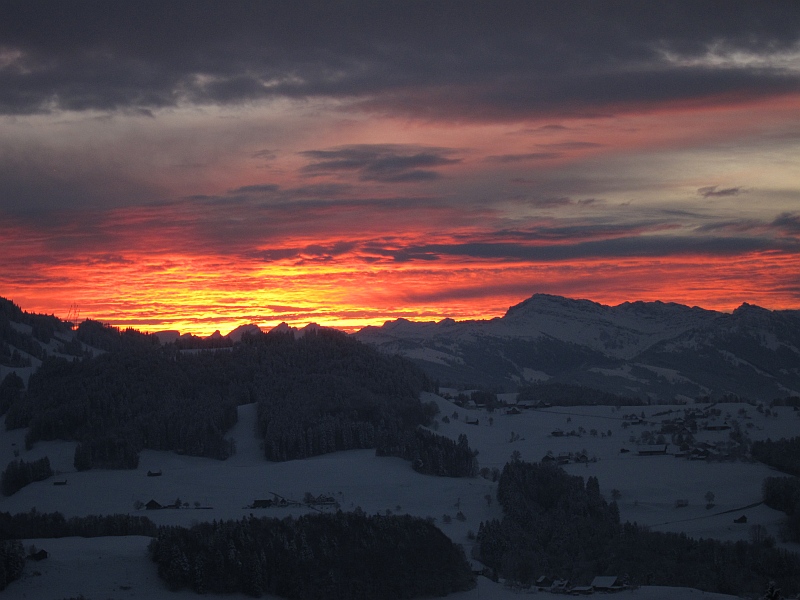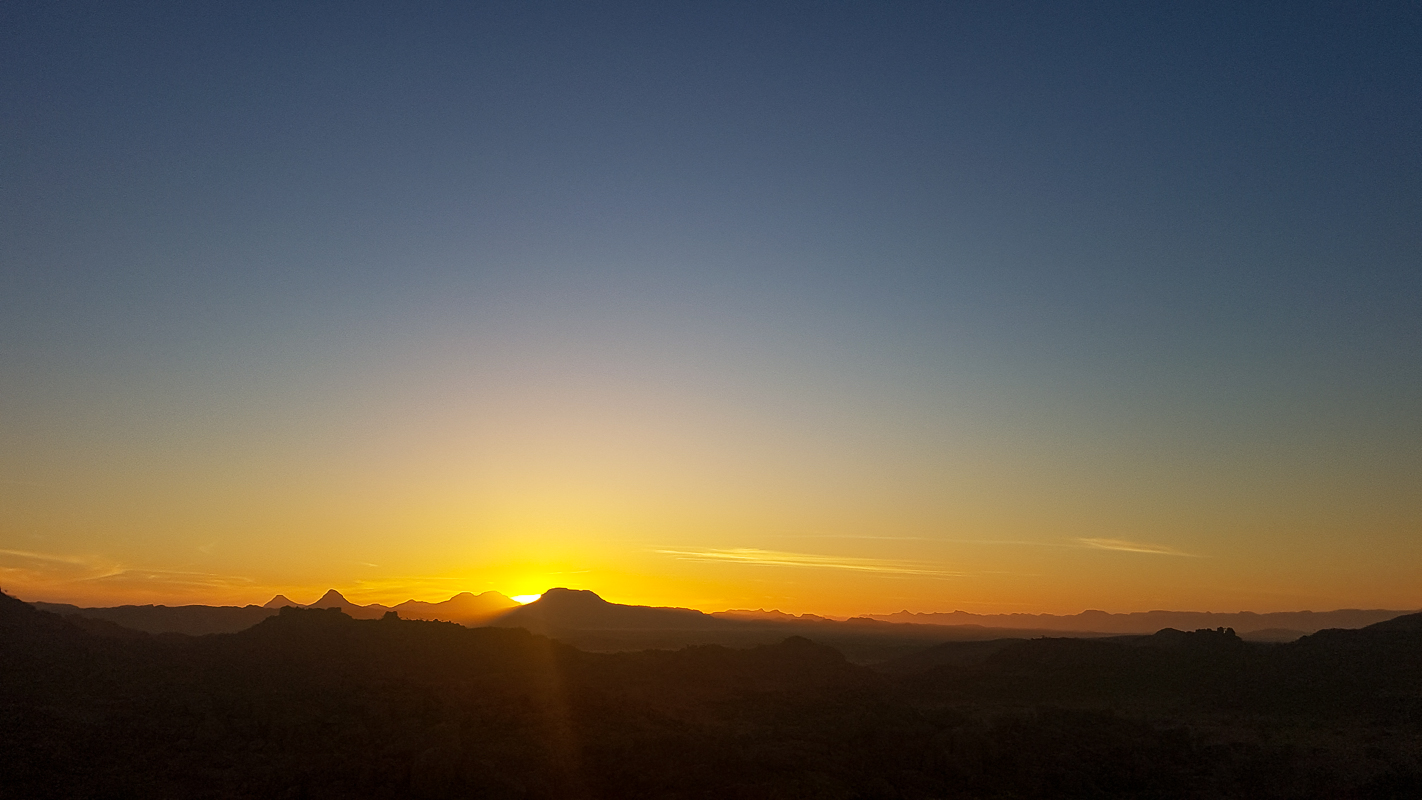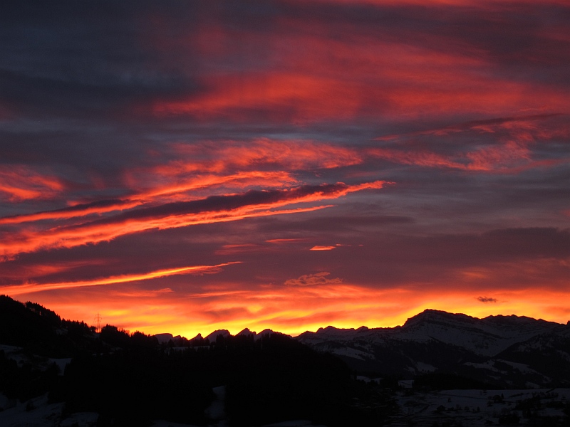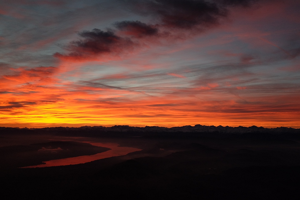 Wieder auf dem Heimflug. Der erste Sonnenuntergang seit 10 Tagen.