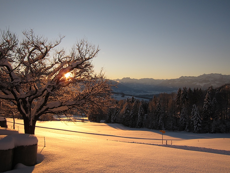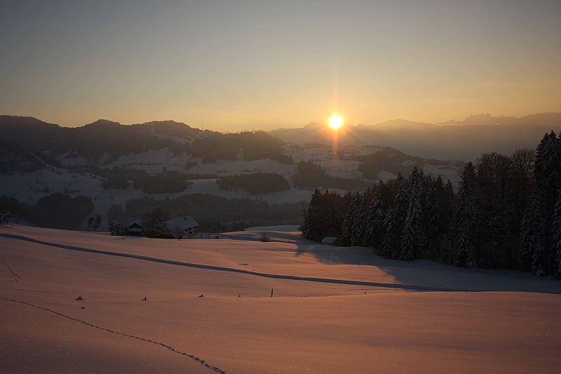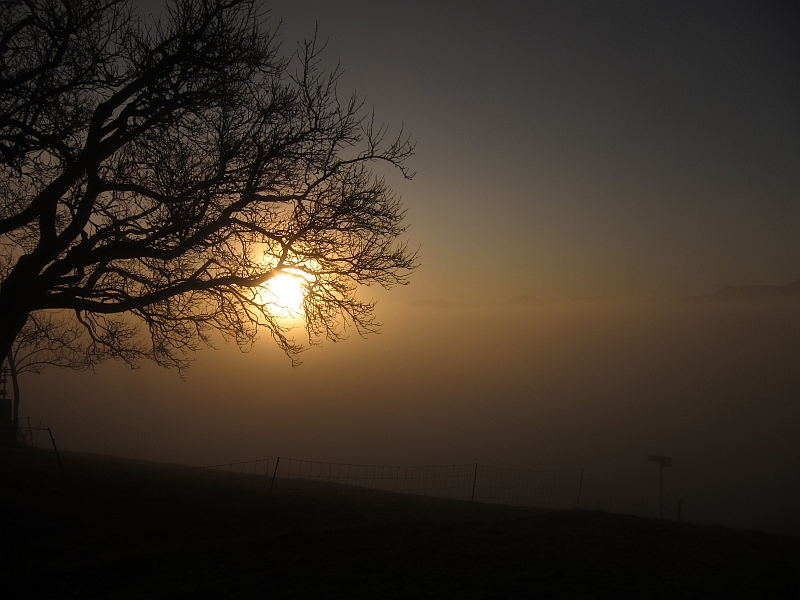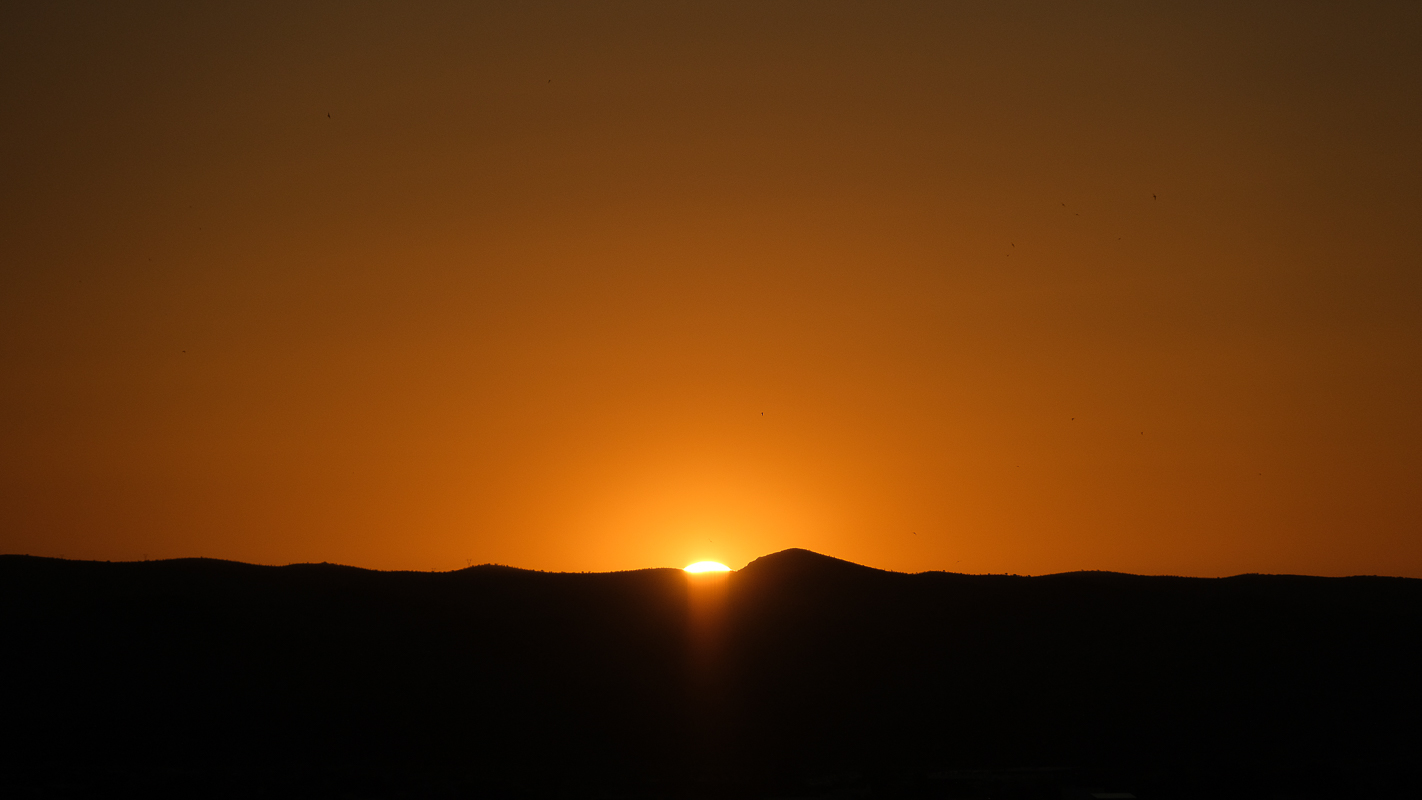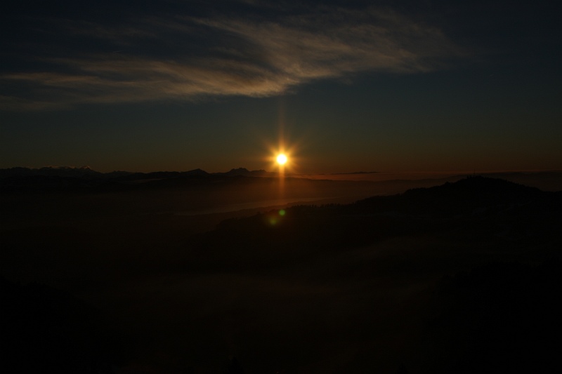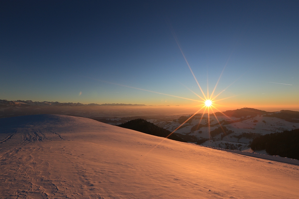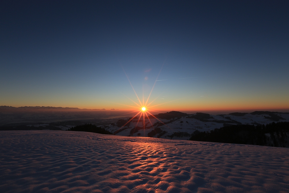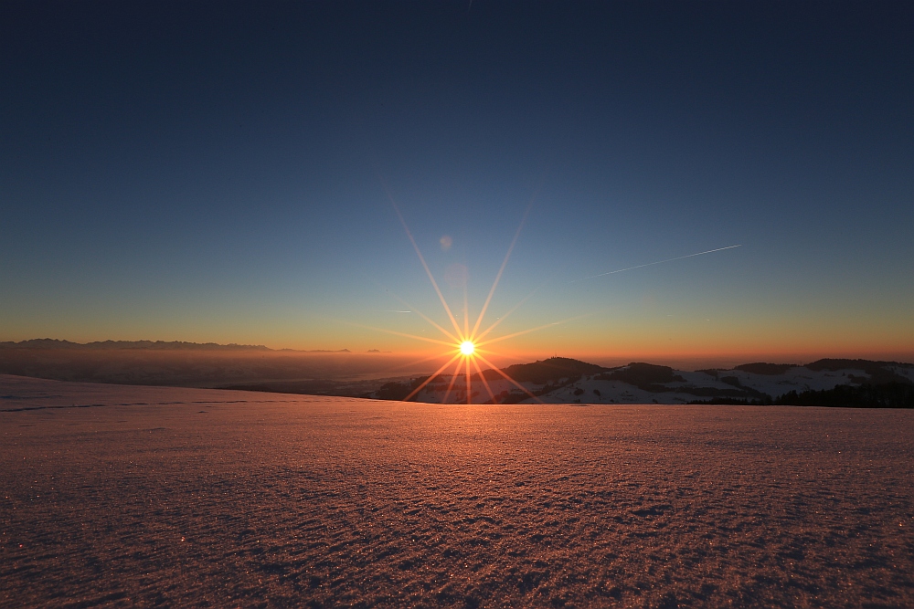 Die Sonne hat den niedrigsten Punkt am Horizont bereits überschritten und steigt schon wieder am Himmel empor.