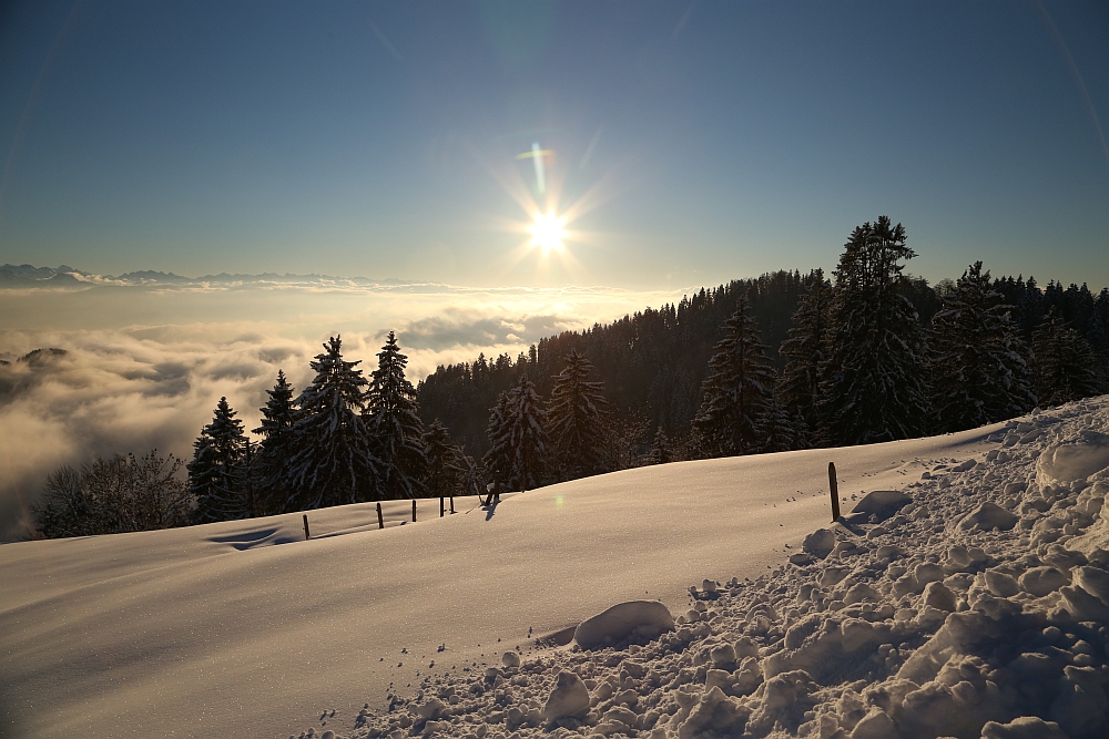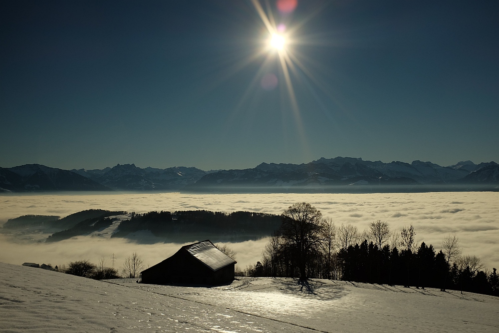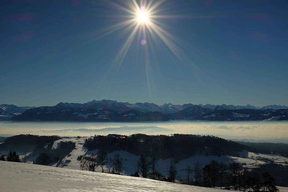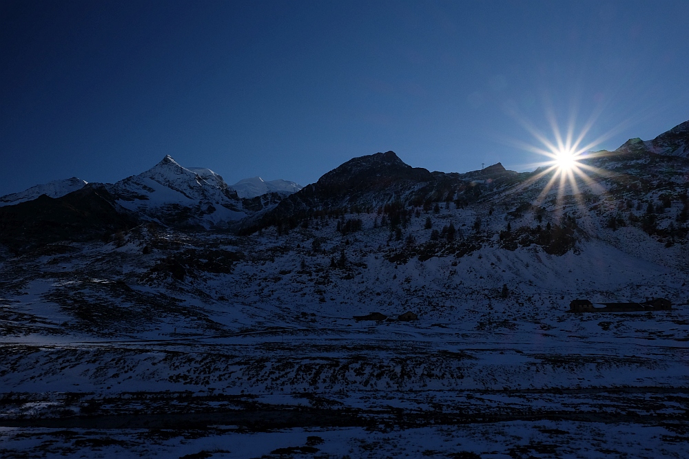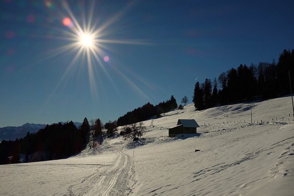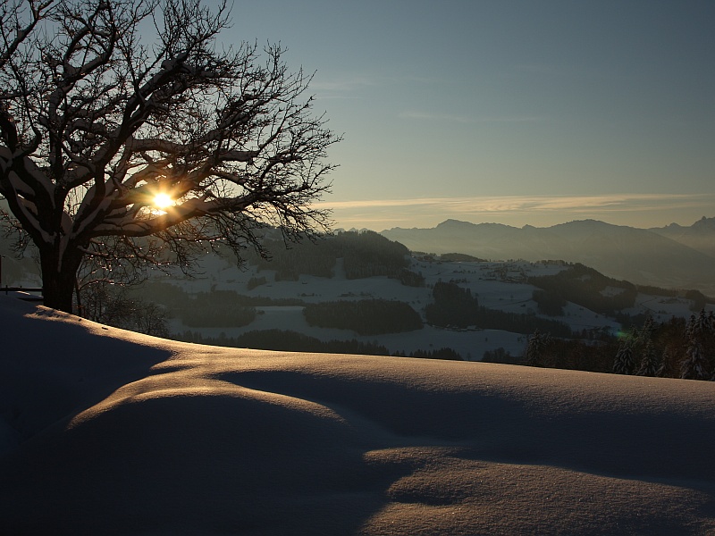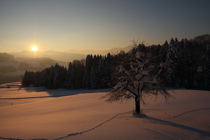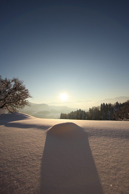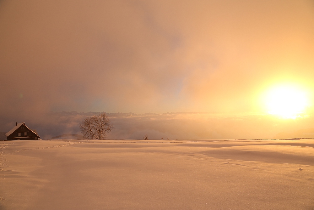 Die Sonne hat den niedrigsten Punkt am Horizont bereits überschritten und steigt schon wieder am Himmel empor.