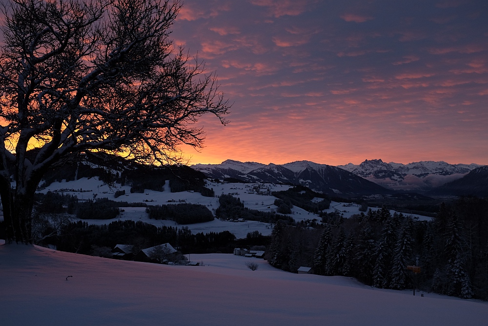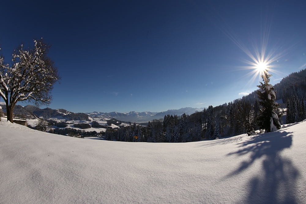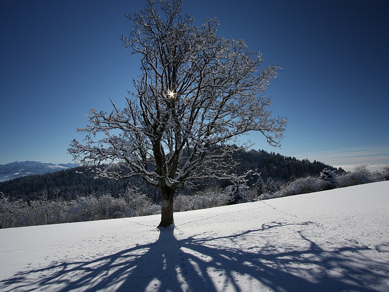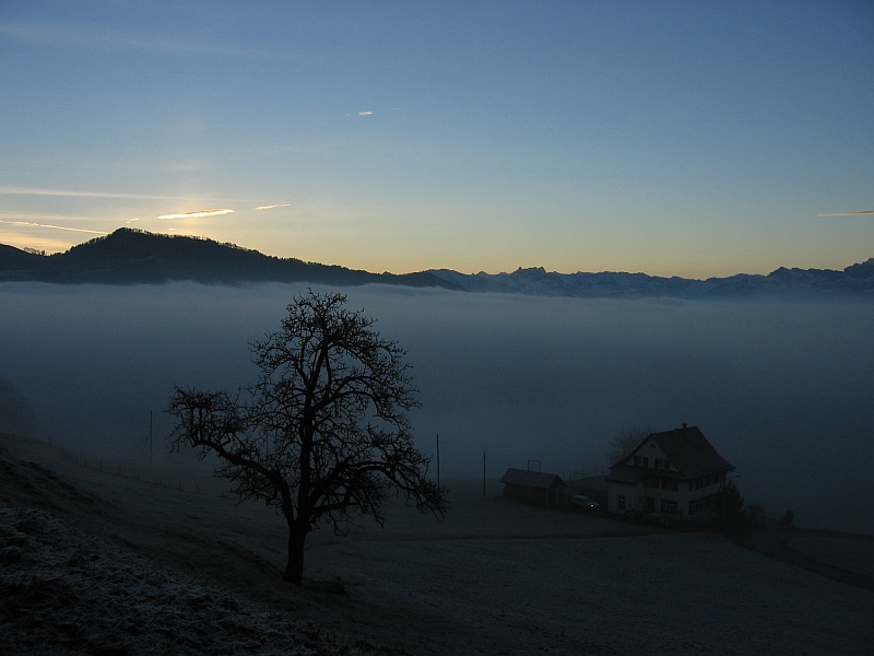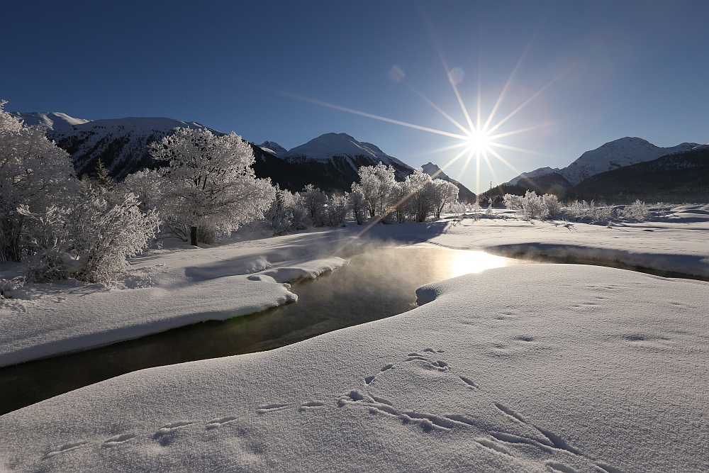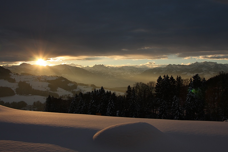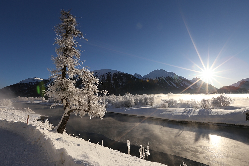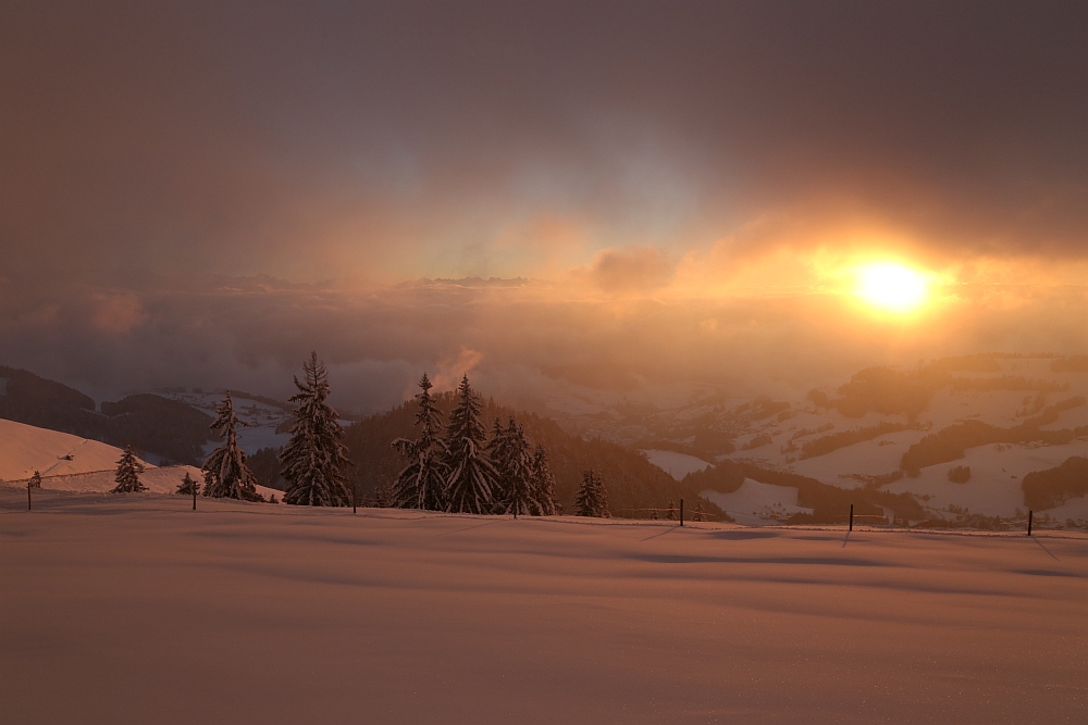 Die Sonne hat den niedrigsten Punkt am Horizont bereits überschritten und steigt schon wieder am Himmel empor.