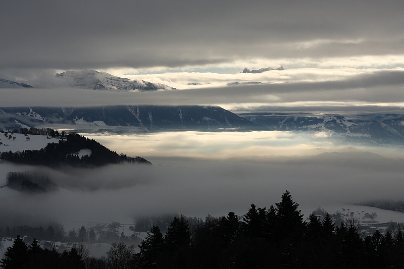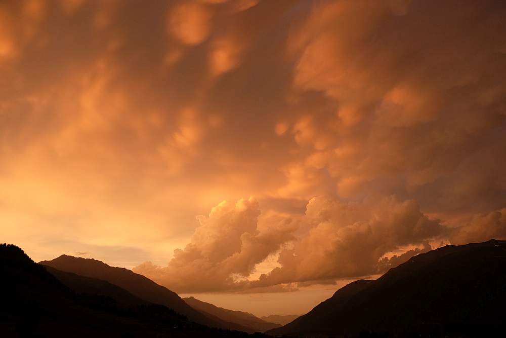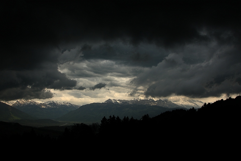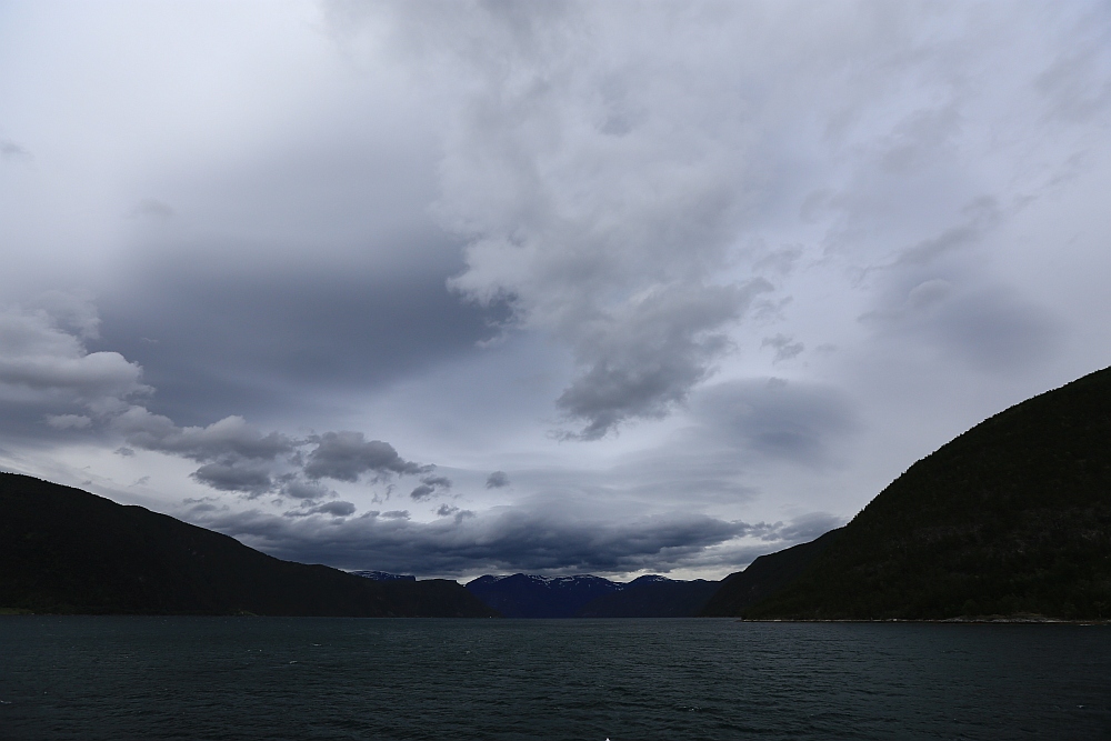 Bedrohlicher Norwegischer Himmel auf der Überfahrt zwischen Kaupanger und Gudvangen