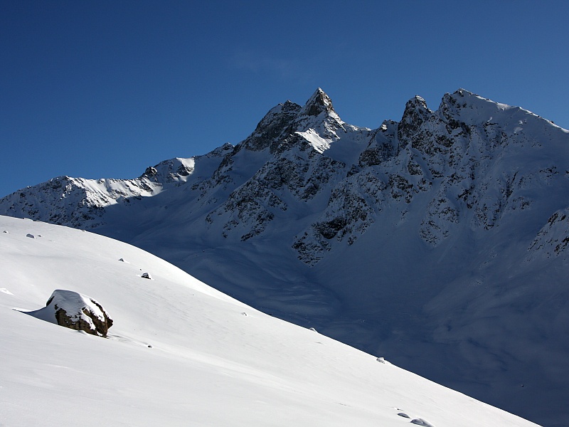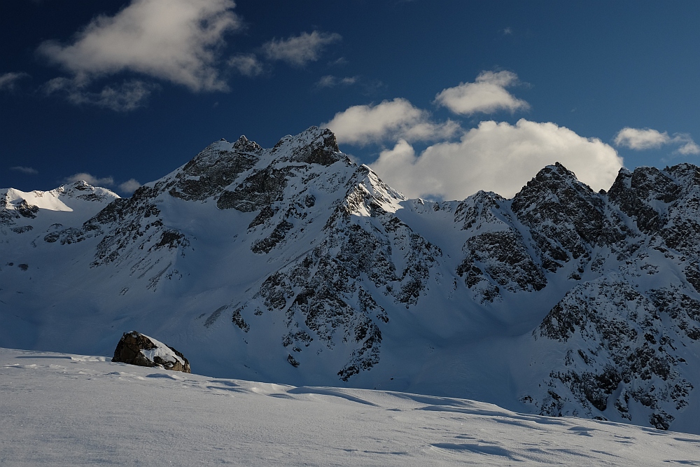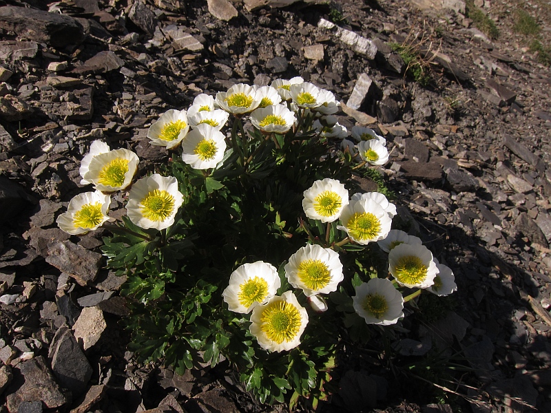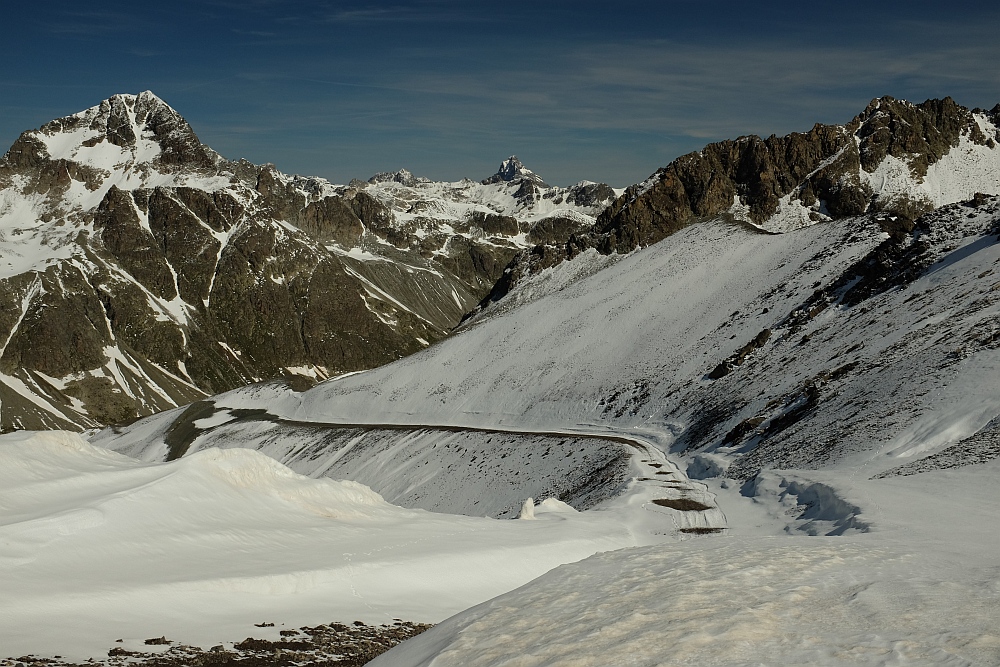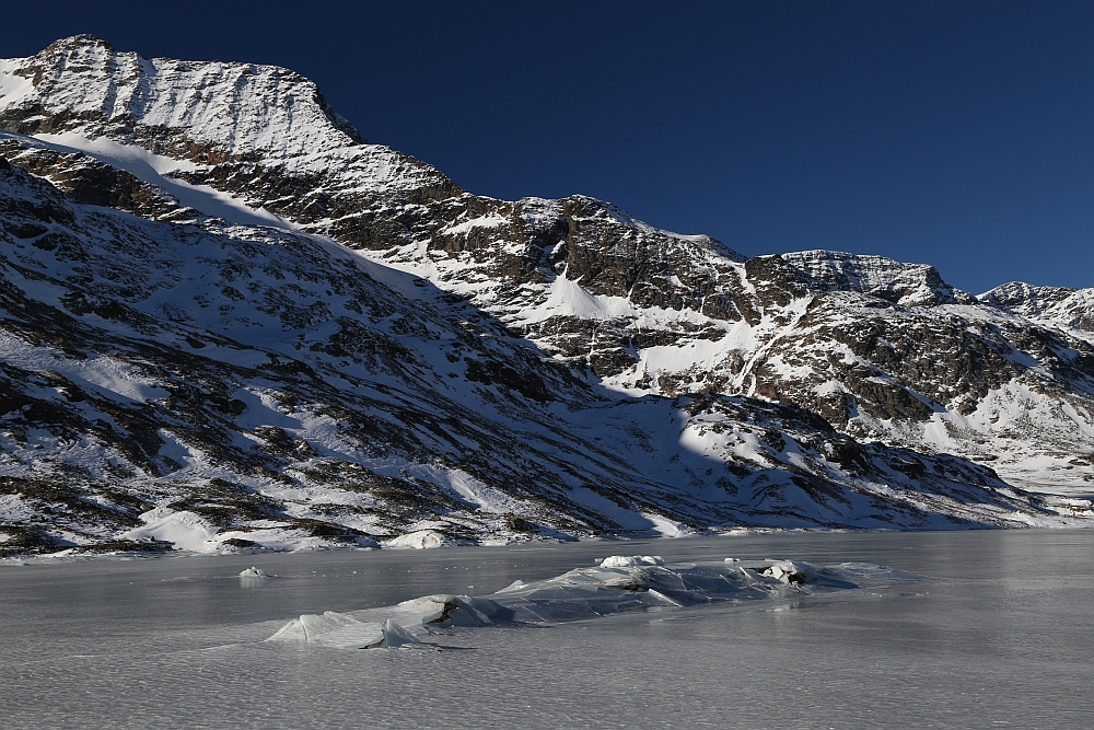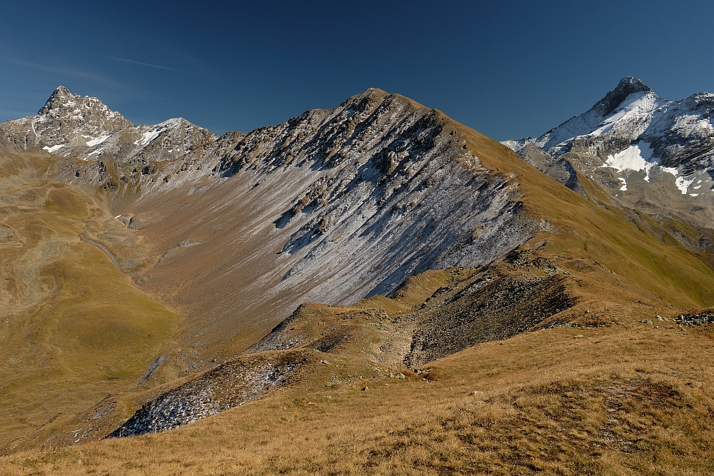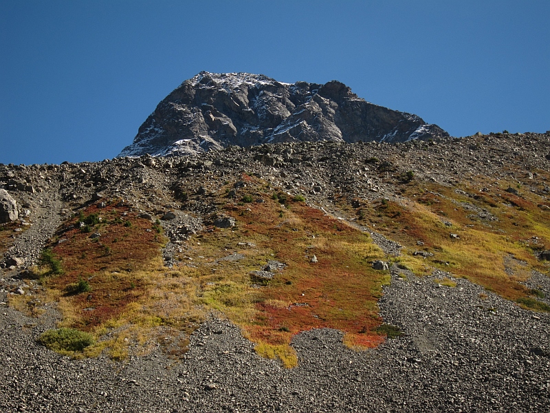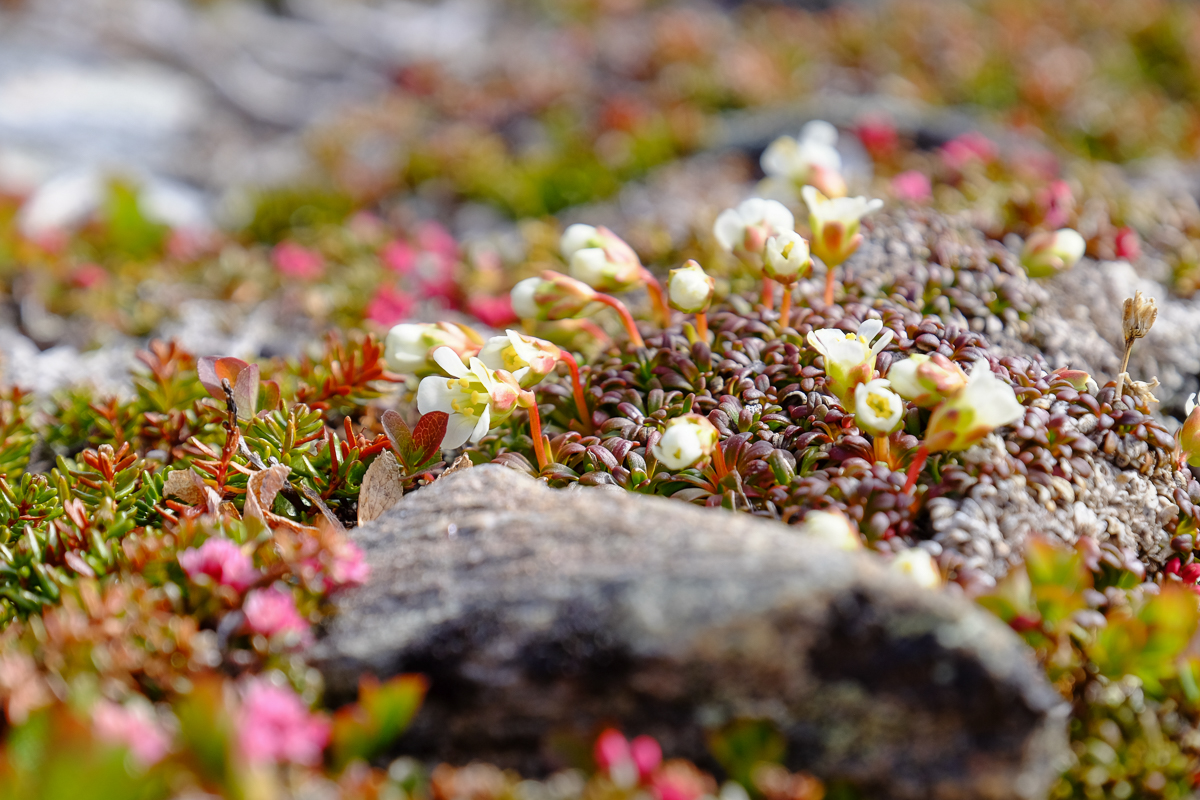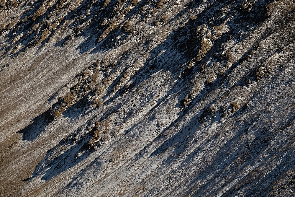 Obwohl eigentlich viel Schnee liegt hat der ständige Wind an vielen Stellen den Fels und die karge Vegation freigeblasen.