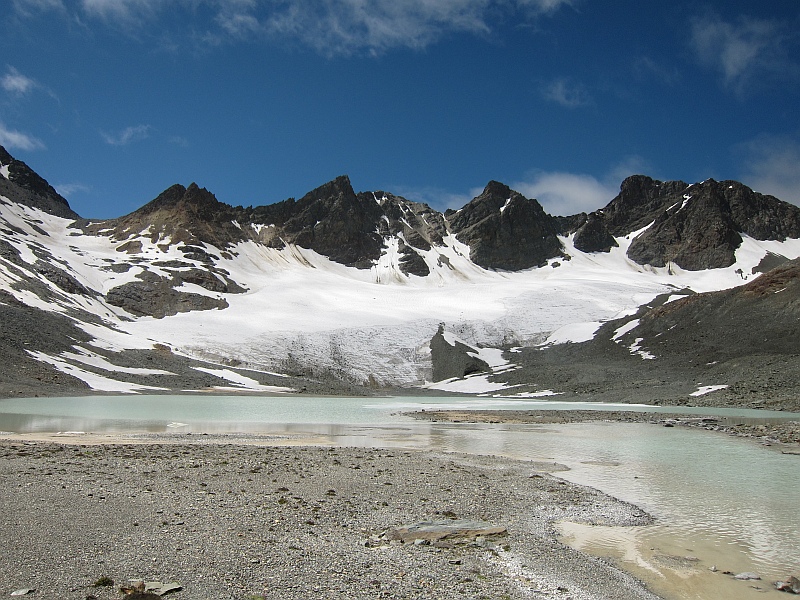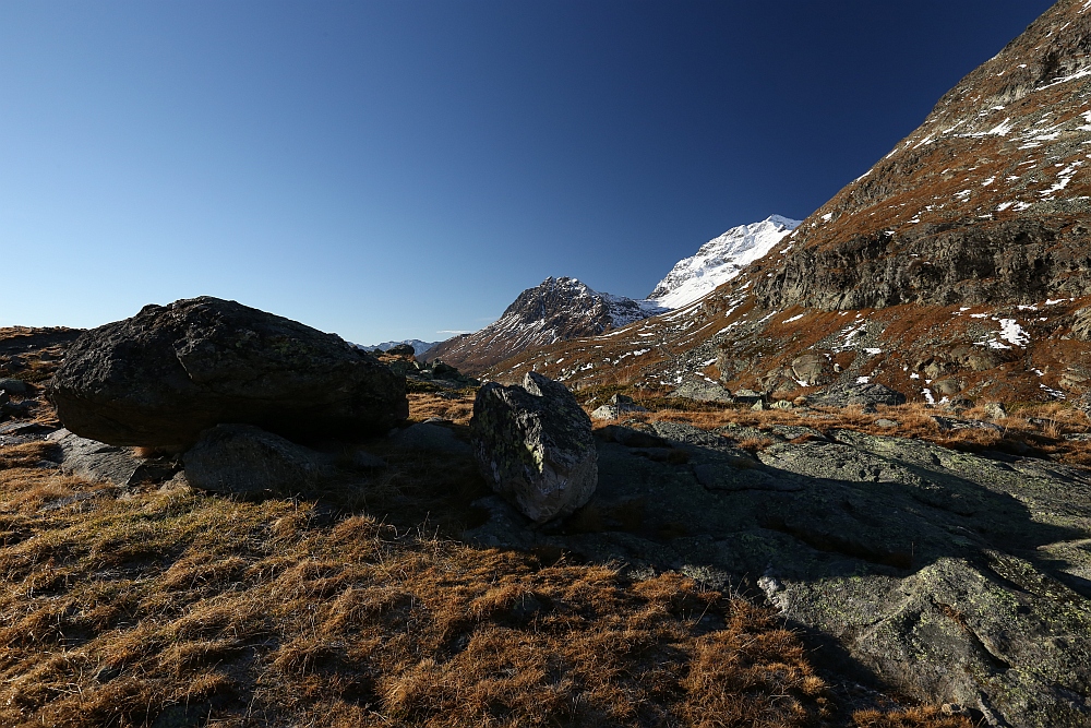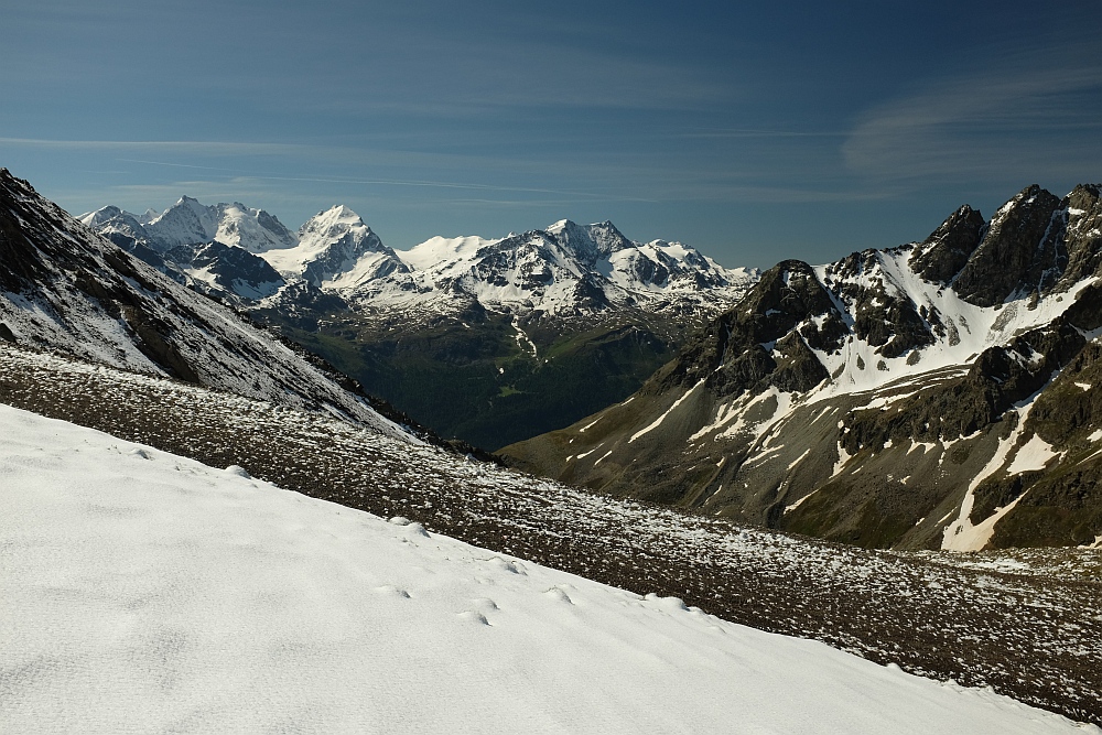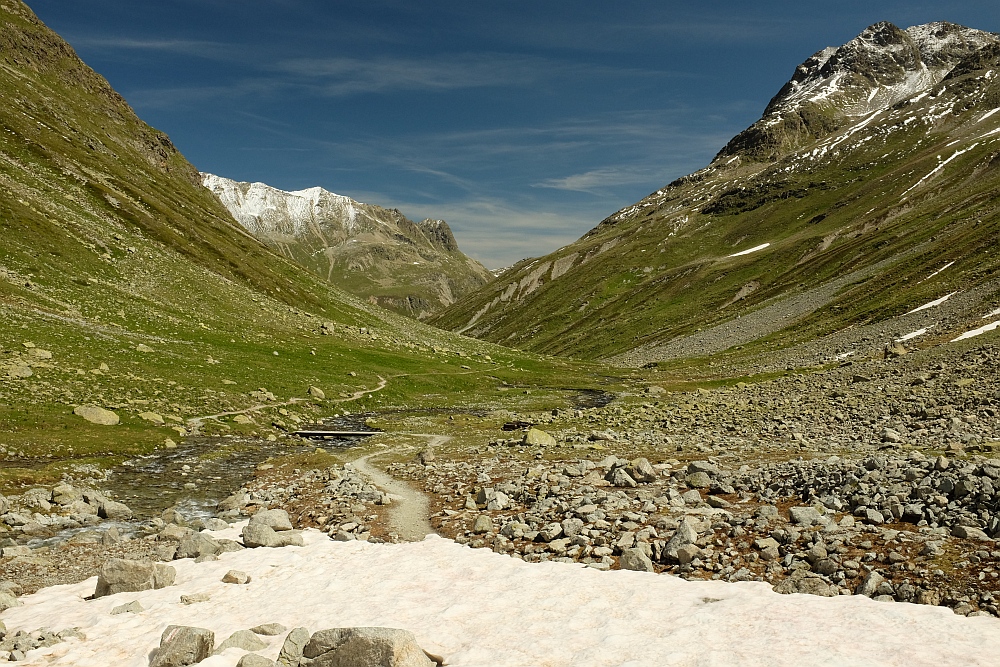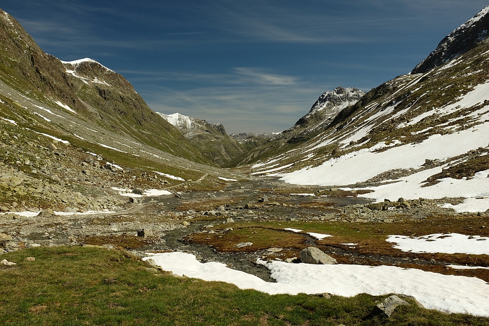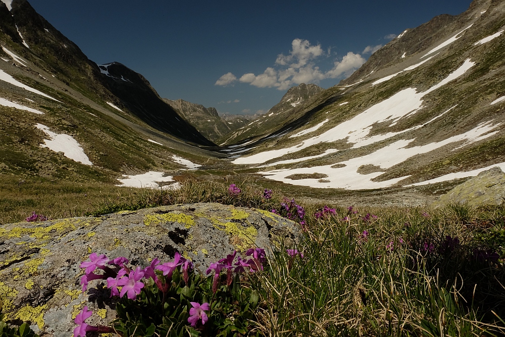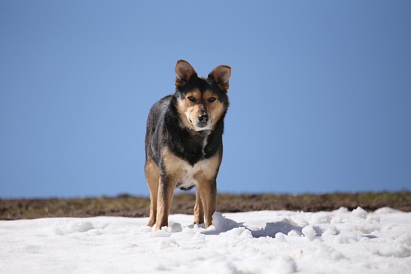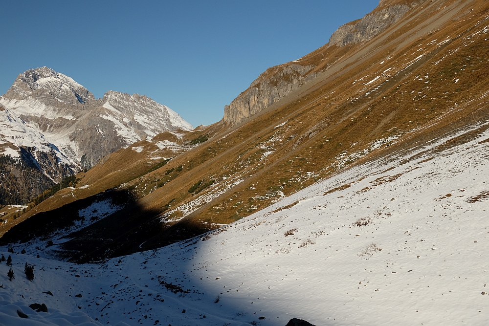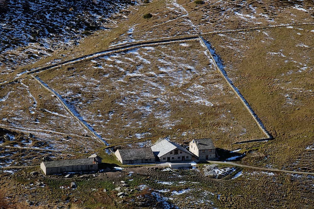 Obwohl eigentlich viel Schnee liegt hat der ständige Wind an vielen Stellen den Fels und die karge Vegation freigeblasen.