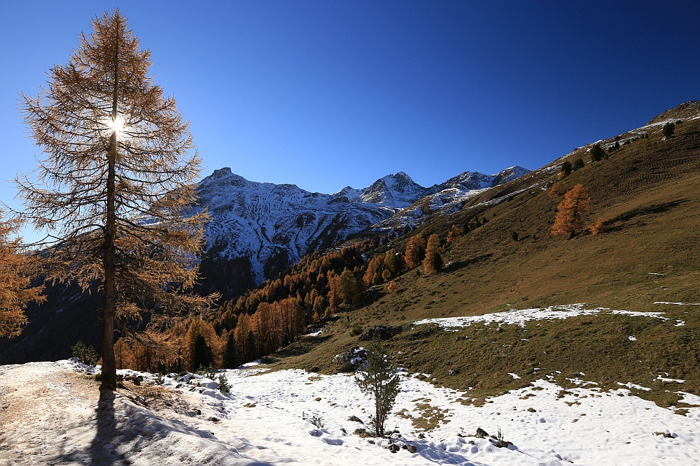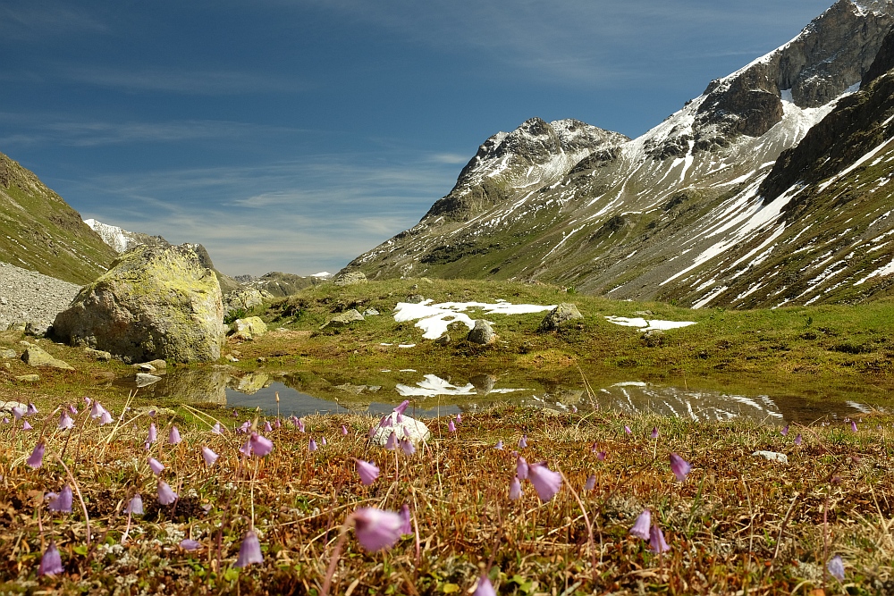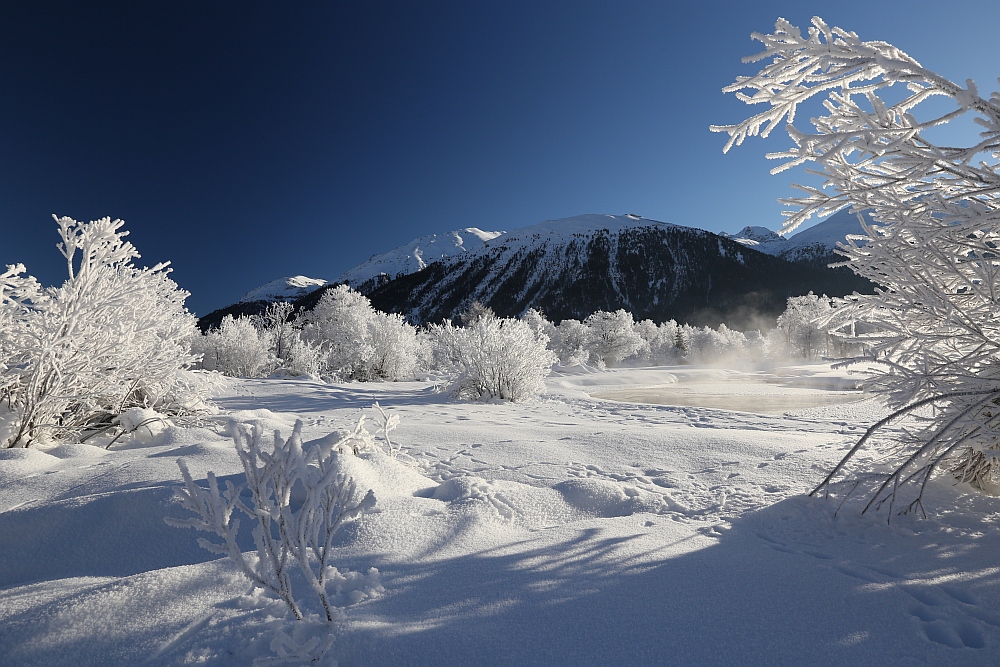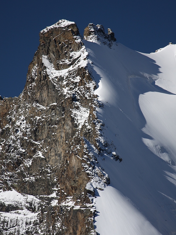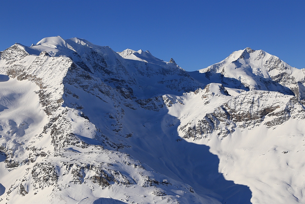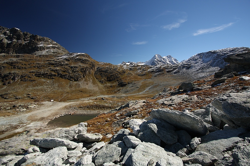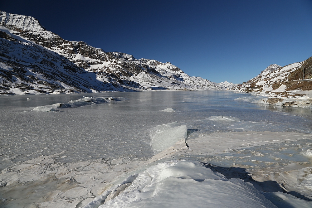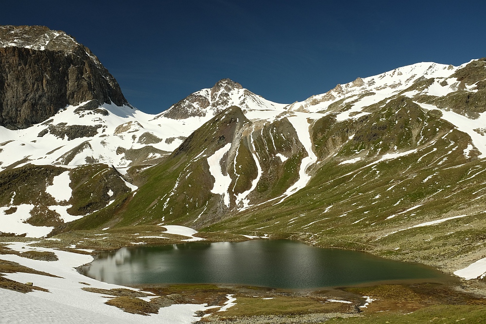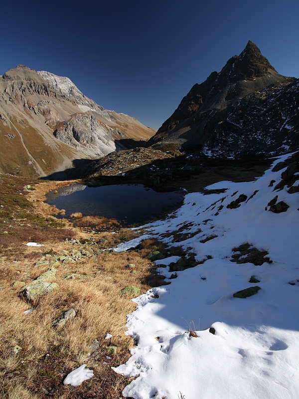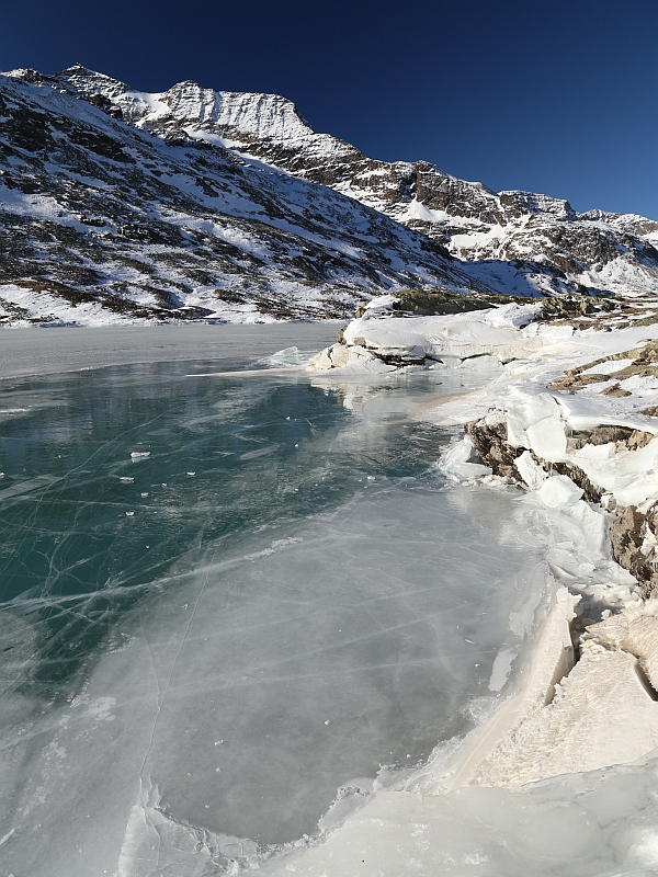 Obwohl eigentlich viel Schnee liegt hat der ständige Wind an vielen Stellen den Fels und die karge Vegation freigeblasen.