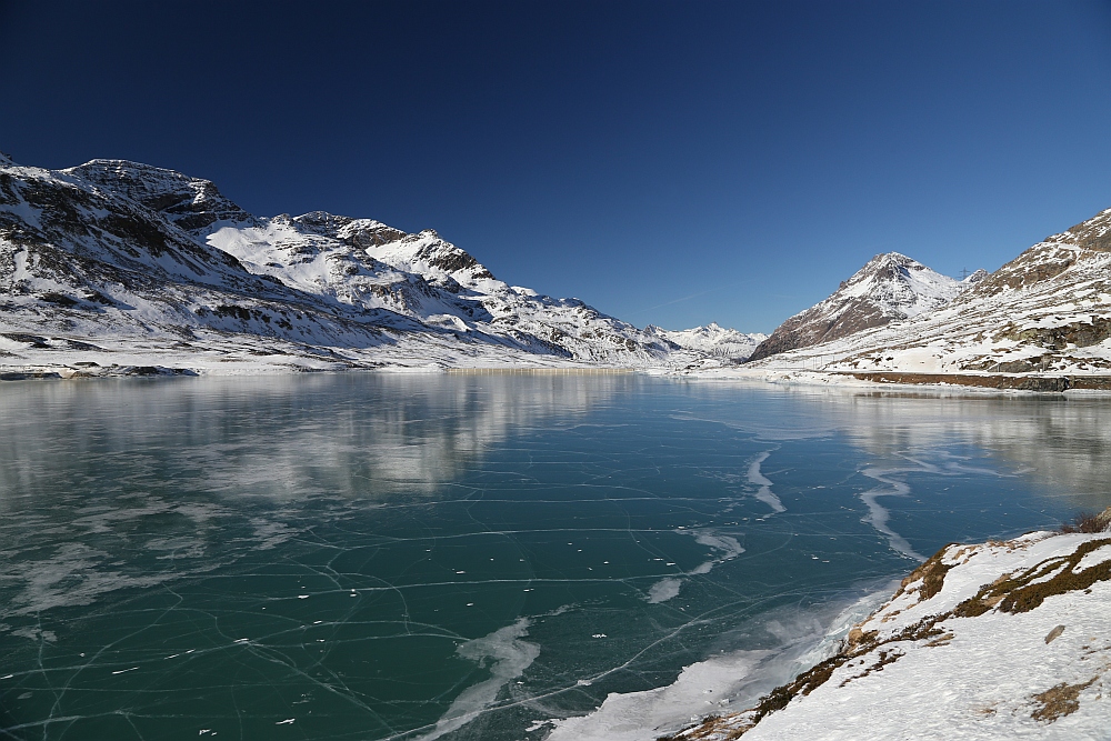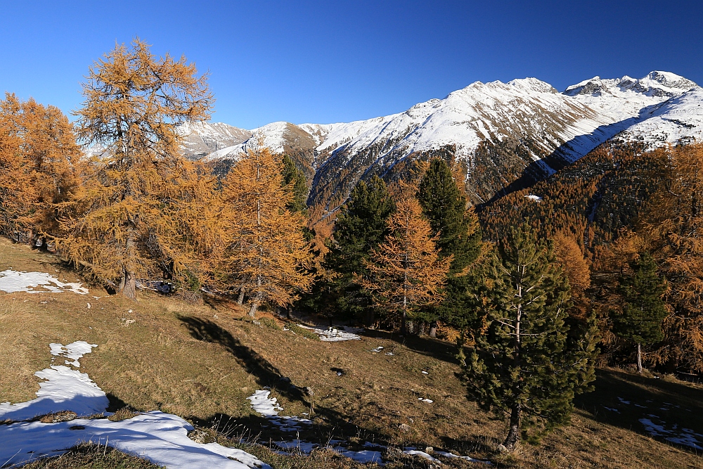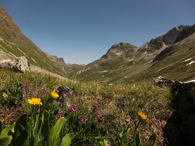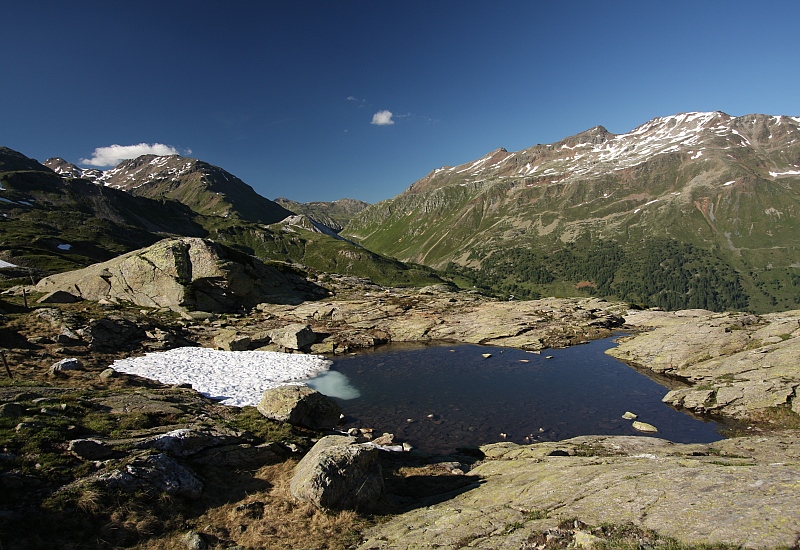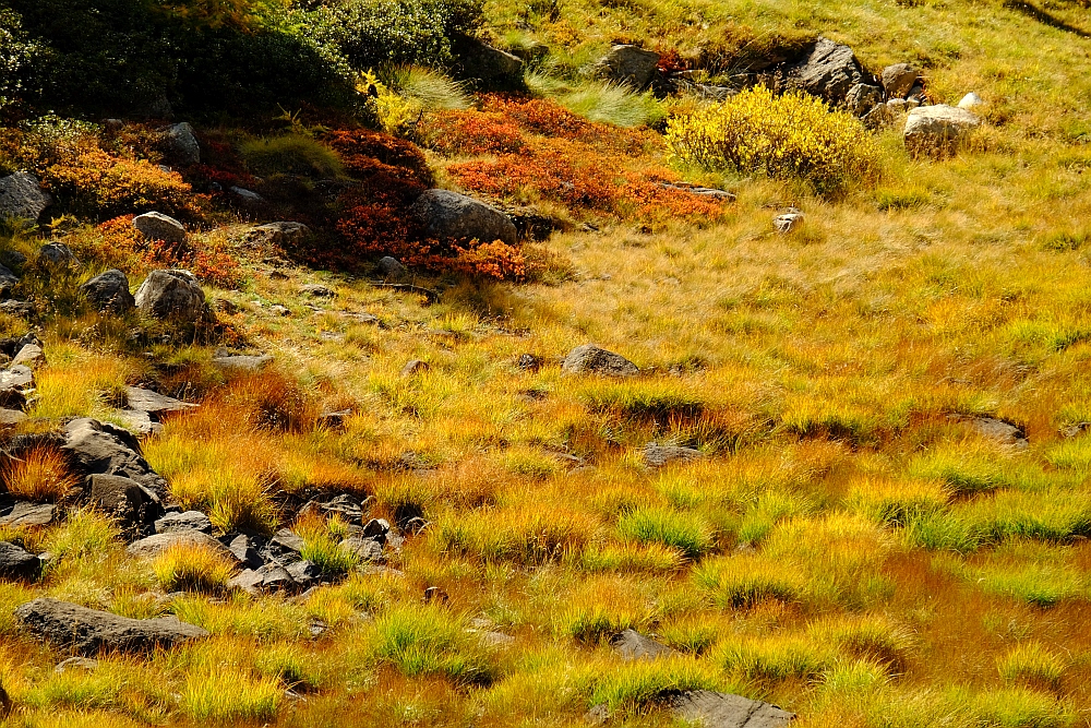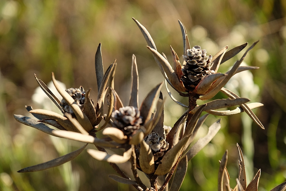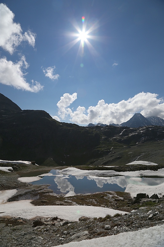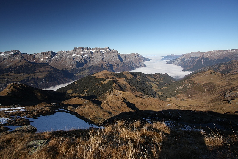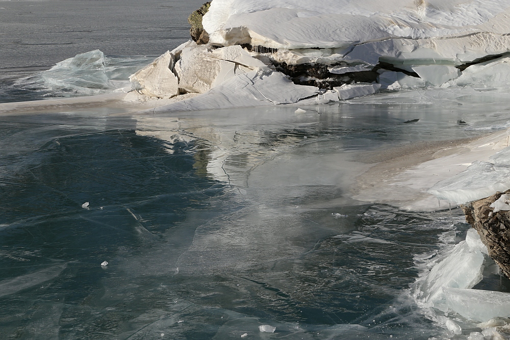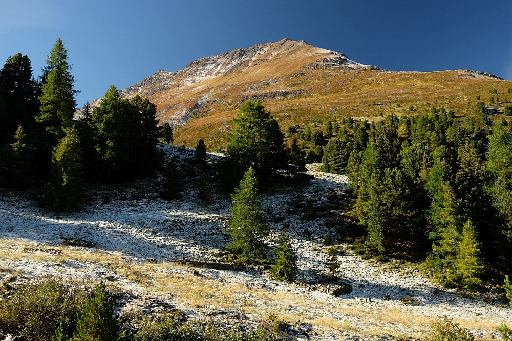 Obwohl eigentlich viel Schnee liegt hat der ständige Wind an vielen Stellen den Fels und die karge Vegation freigeblasen.