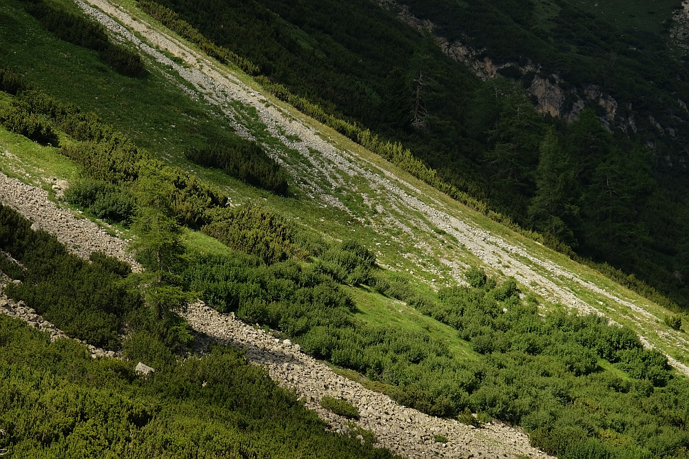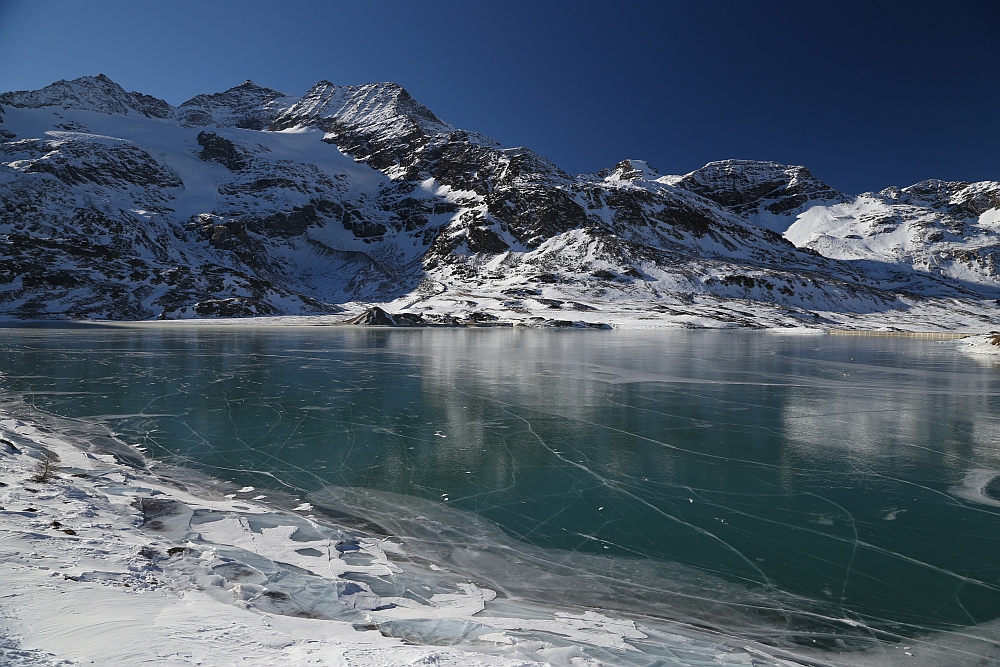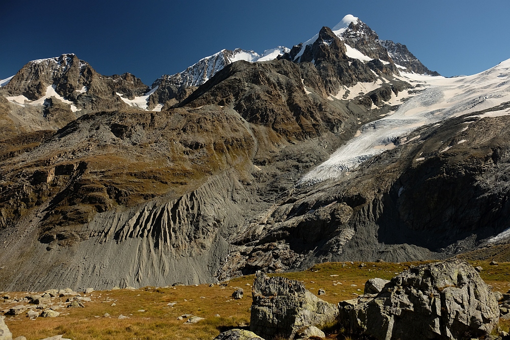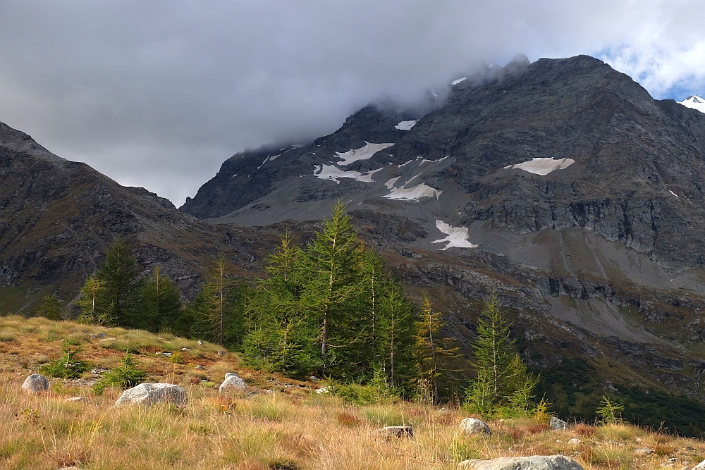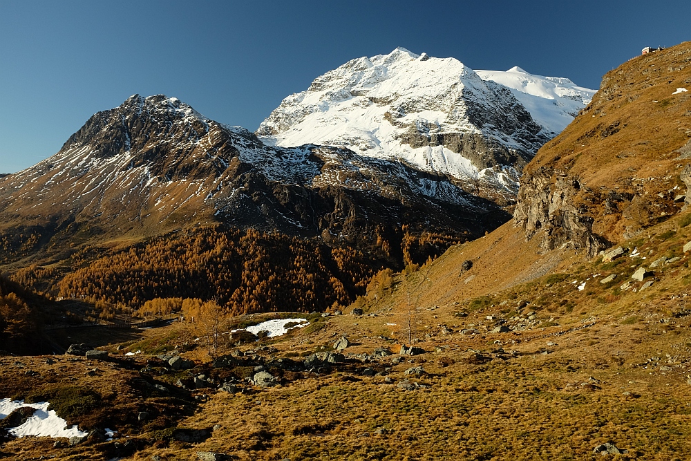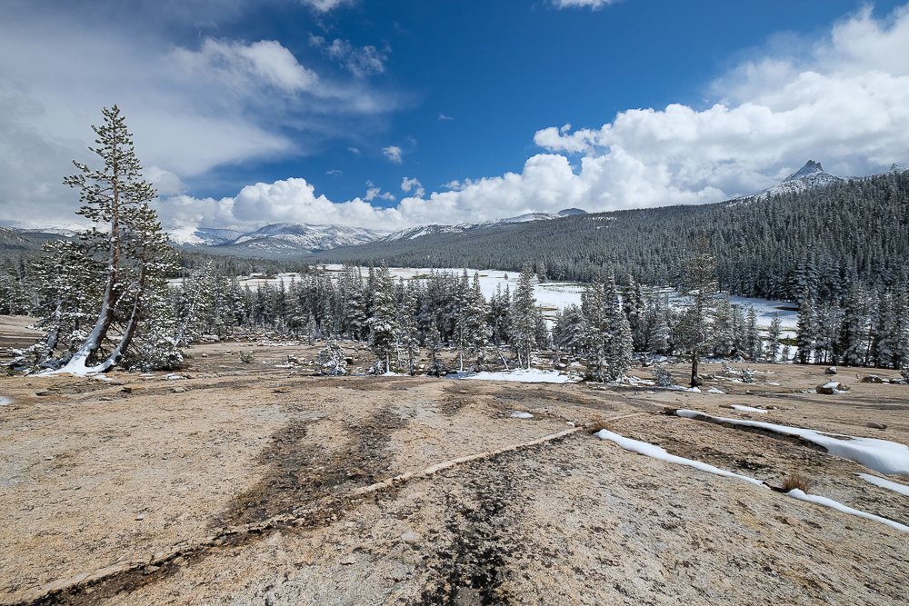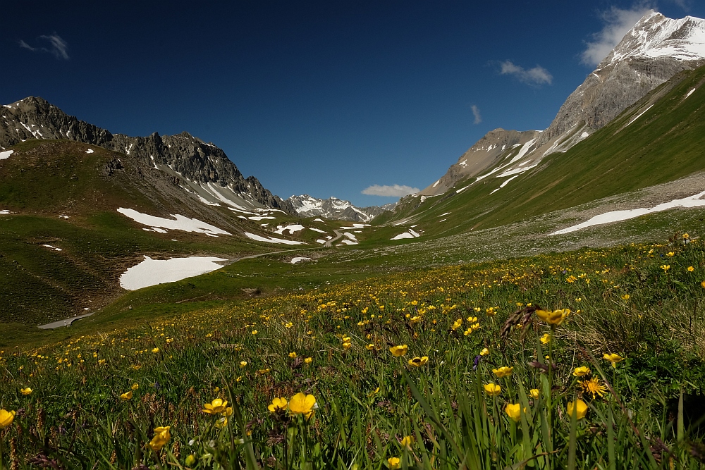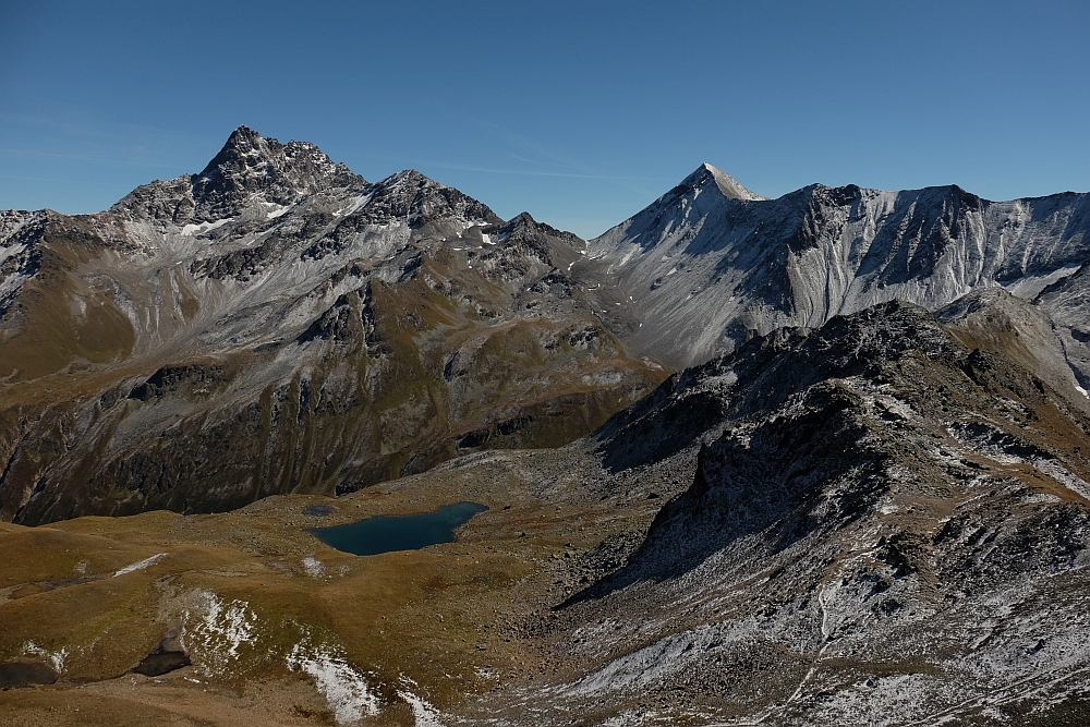 Obwohl eigentlich viel Schnee liegt hat der ständige Wind an vielen Stellen den Fels und die karge Vegation freigeblasen.