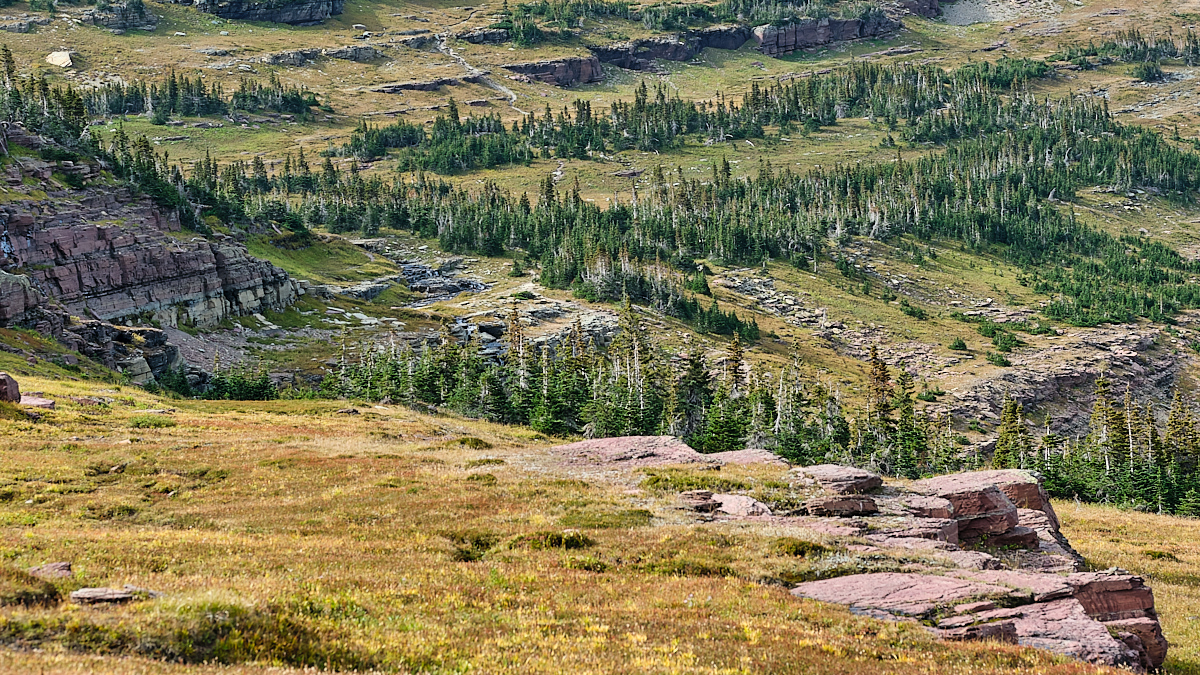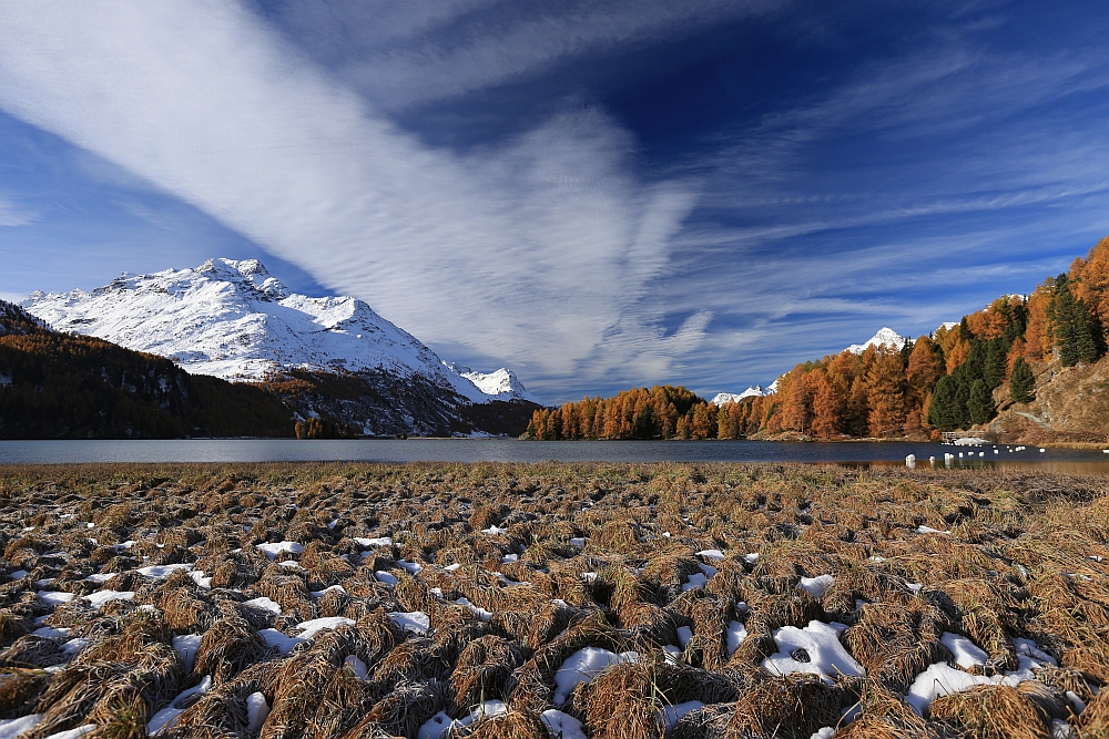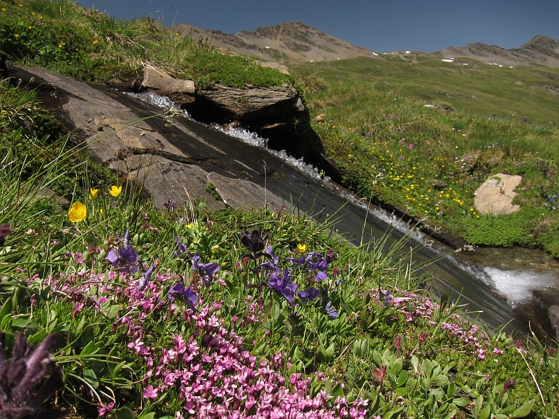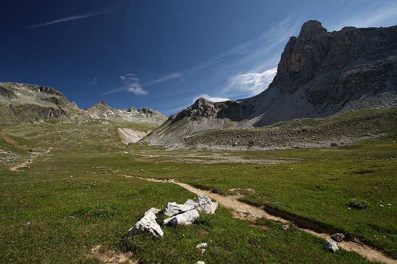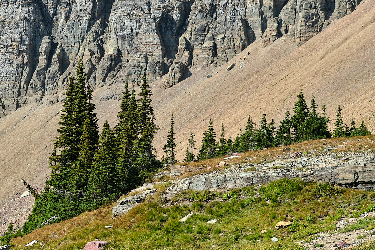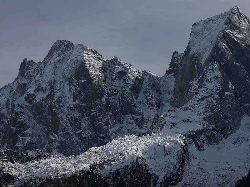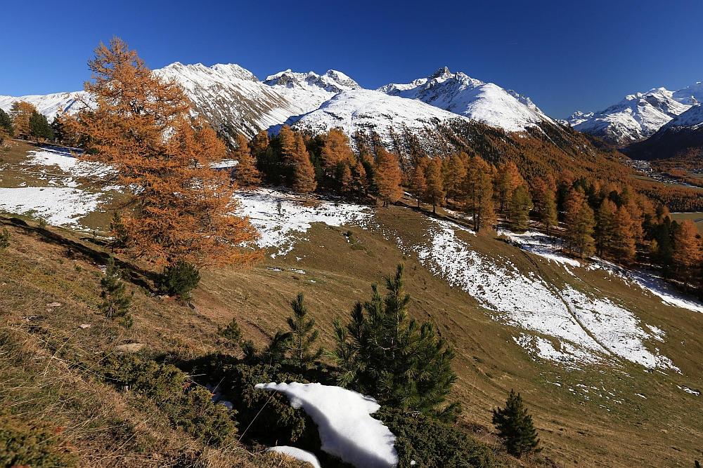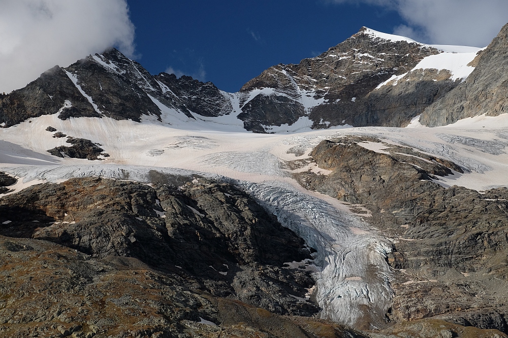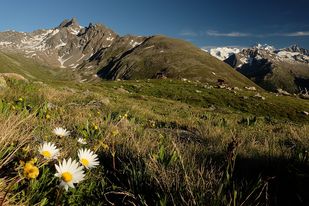 Obwohl eigentlich viel Schnee liegt hat der ständige Wind an vielen Stellen den Fels und die karge Vegation freigeblasen.