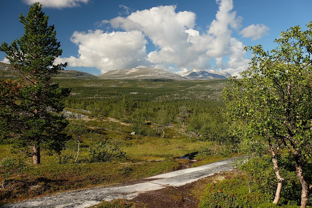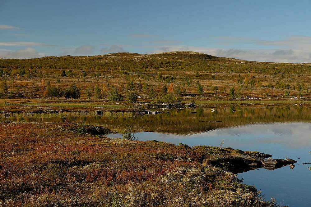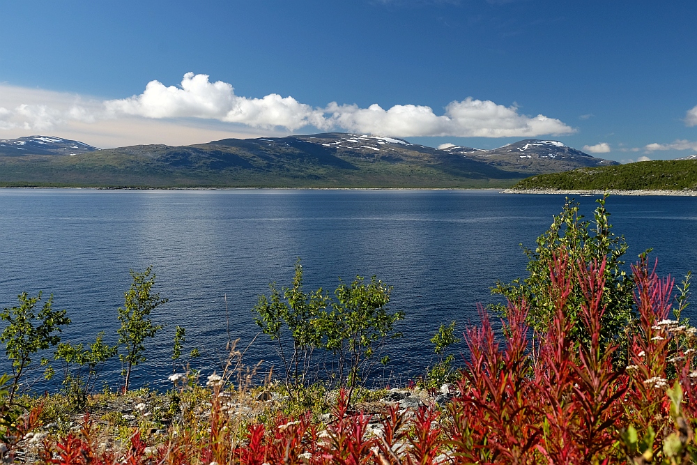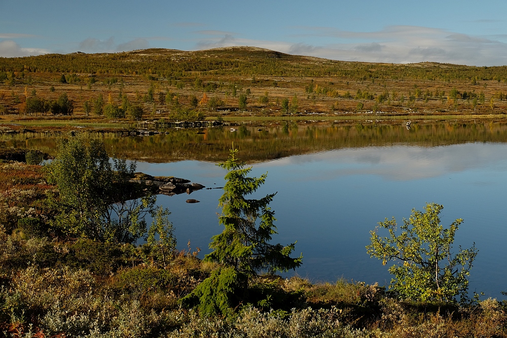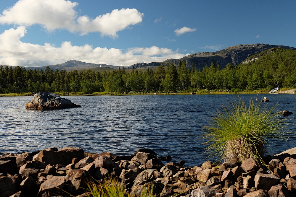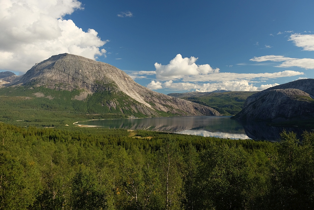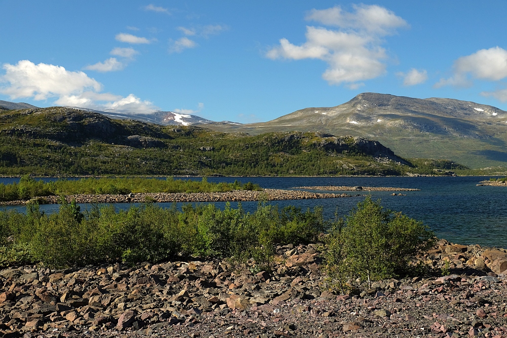 Die Gegend um den Stausee ist ziemlich karg und es wachsen nur noch kleine Birken, obwohl der See nur knapp 450 Meter hoch liegt