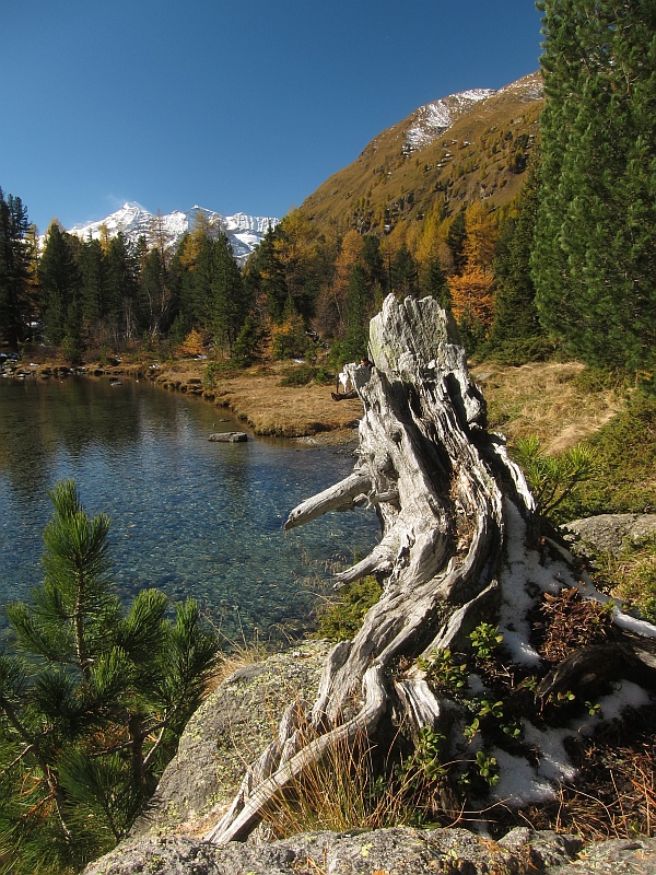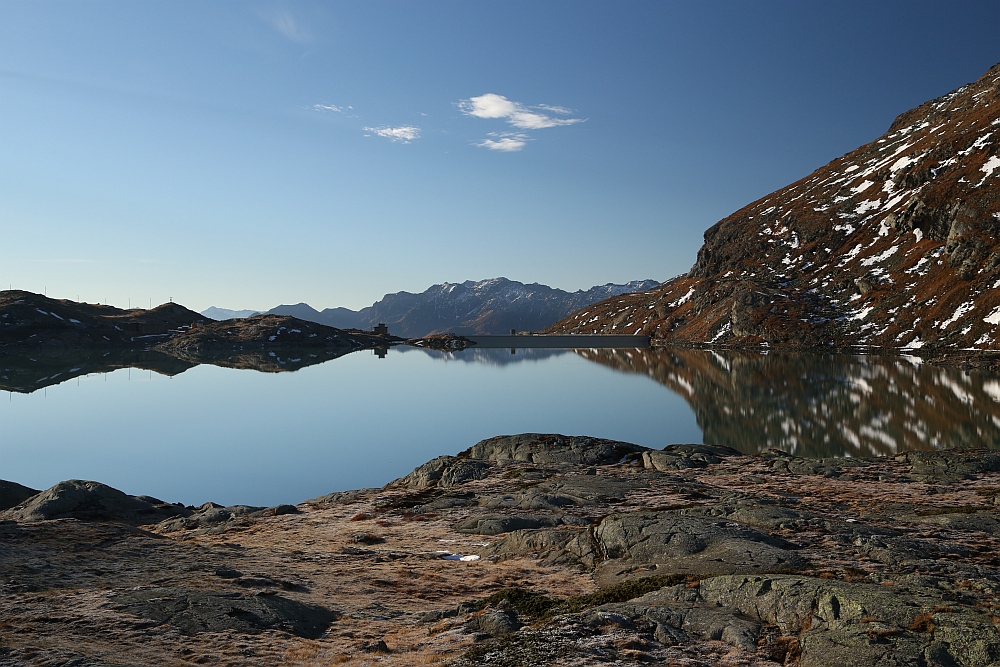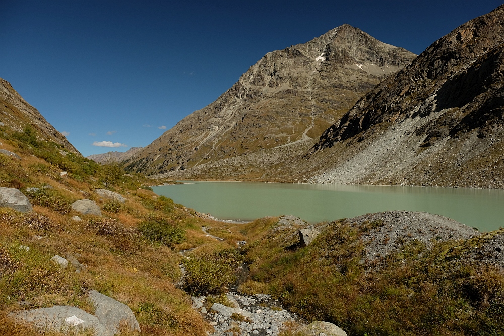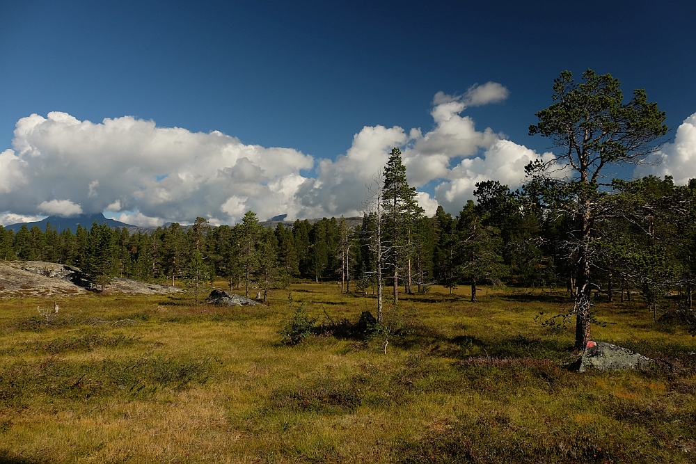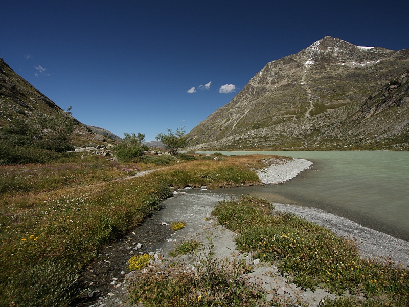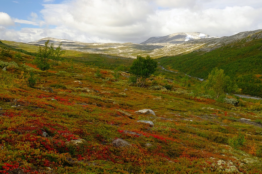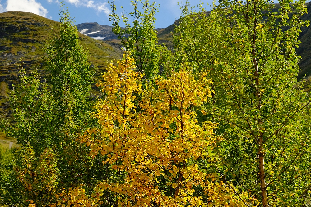 Die Gegend um den Stausee ist ziemlich karg und es wachsen nur noch kleine Birken, obwohl der See nur knapp 450 Meter hoch liegt