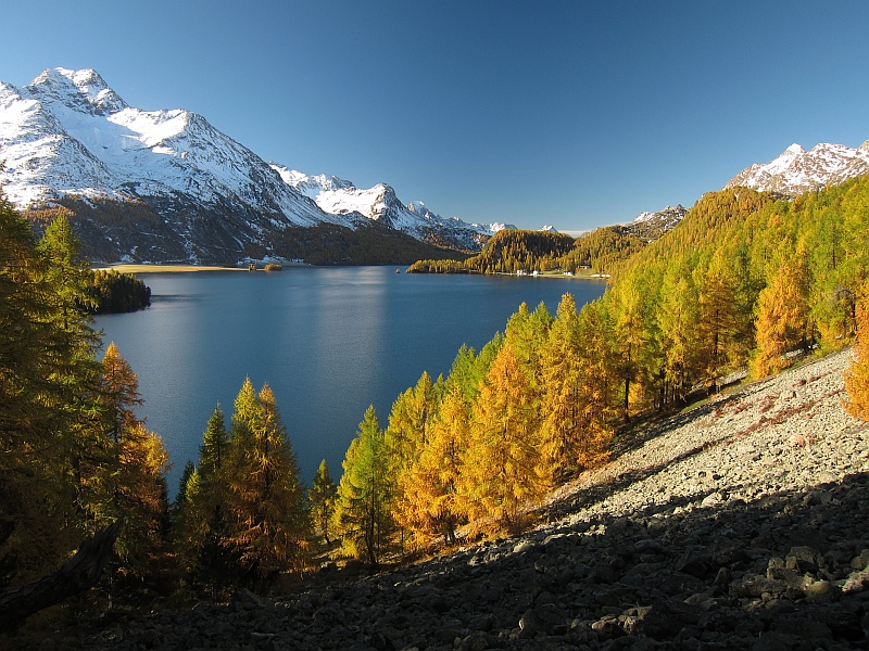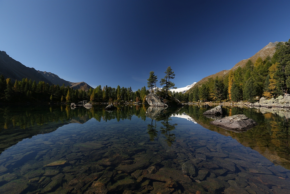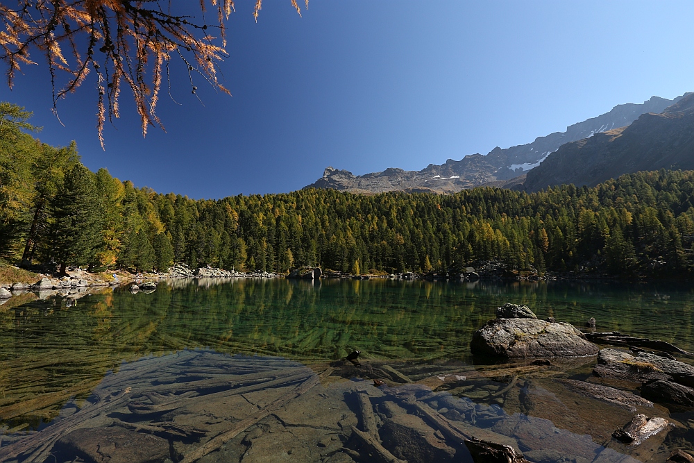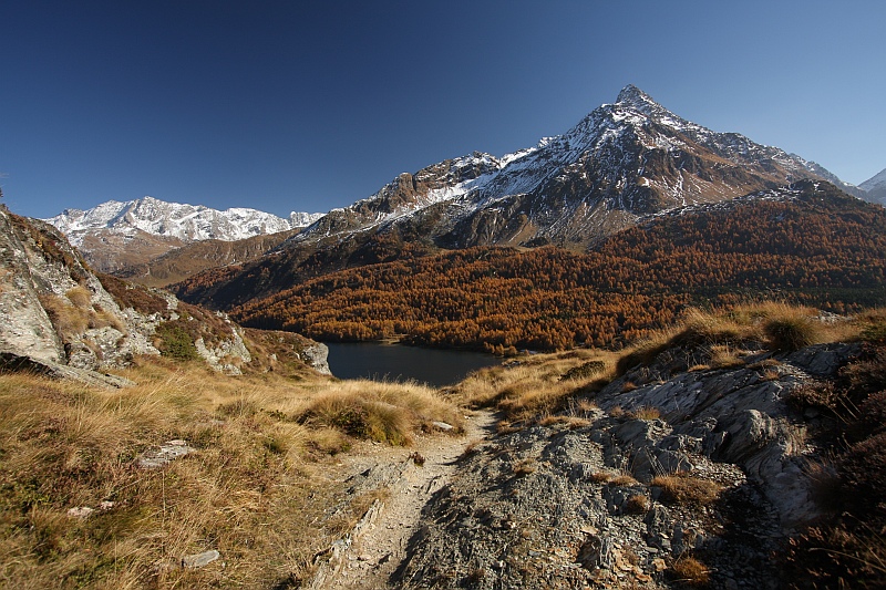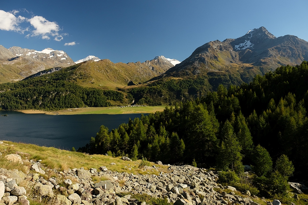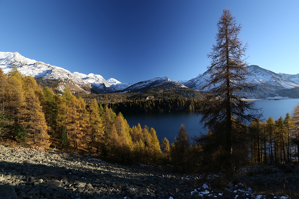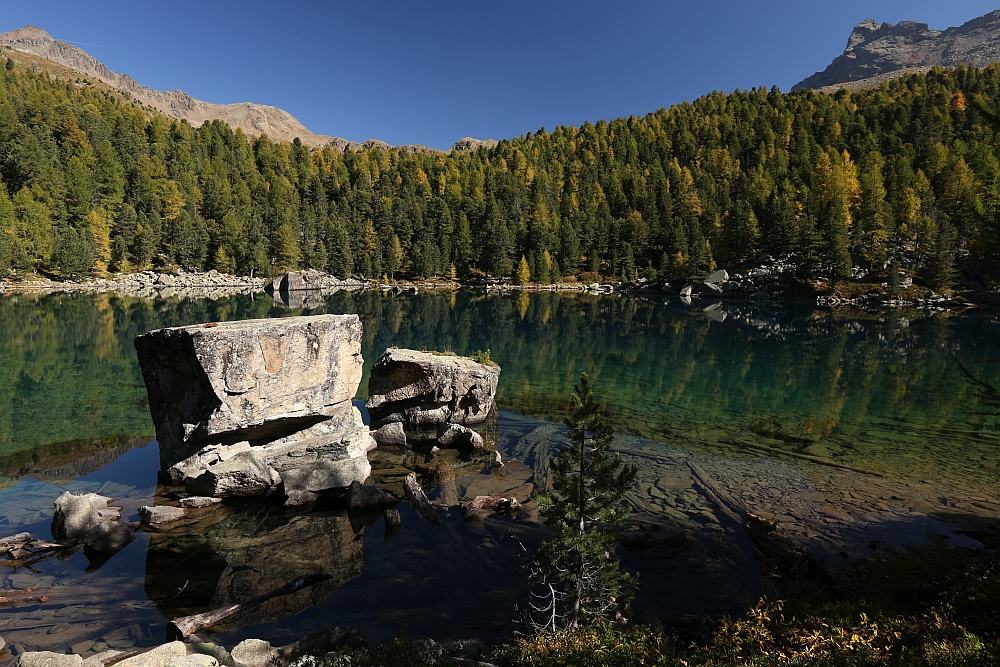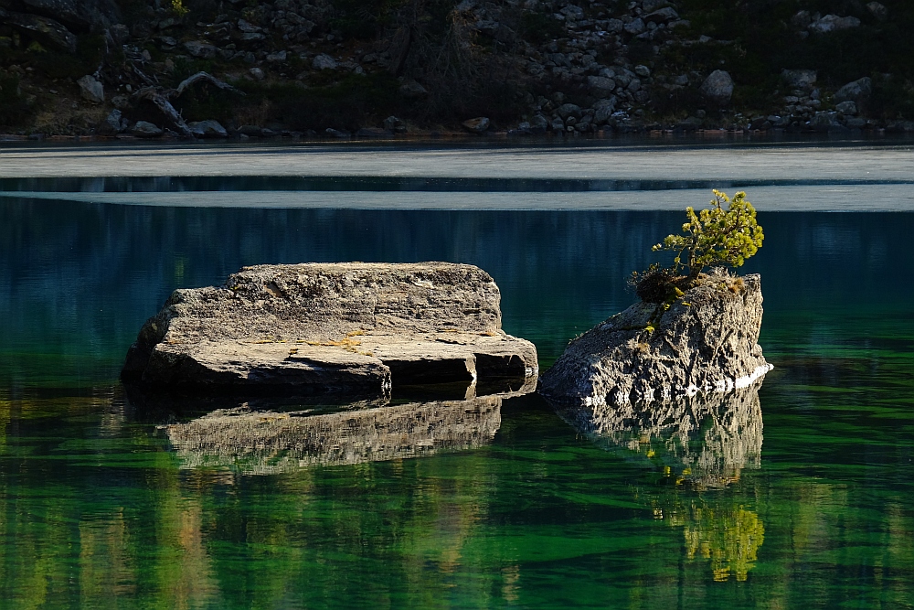 Die Gegend um den Stausee ist ziemlich karg und es wachsen nur noch kleine Birken, obwohl der See nur knapp 450 Meter hoch liegt