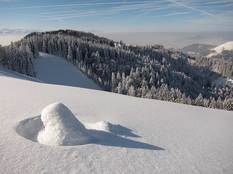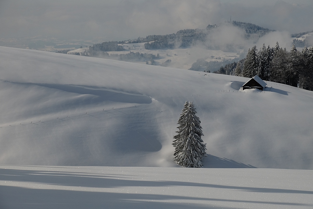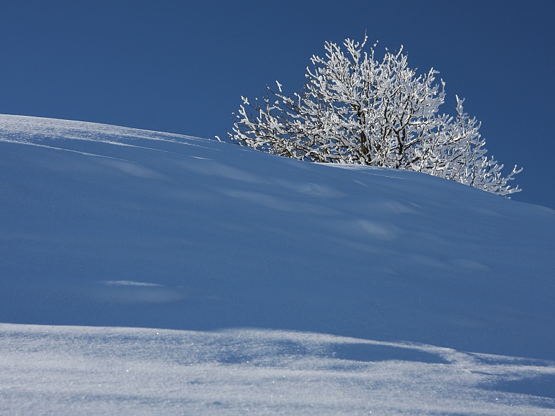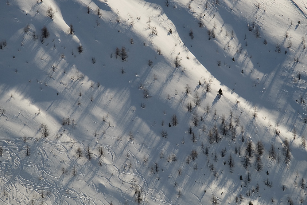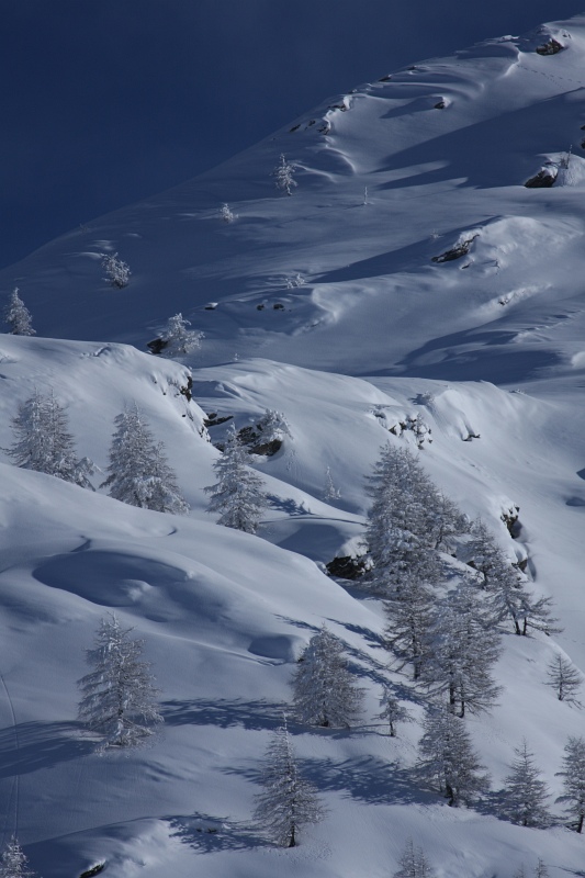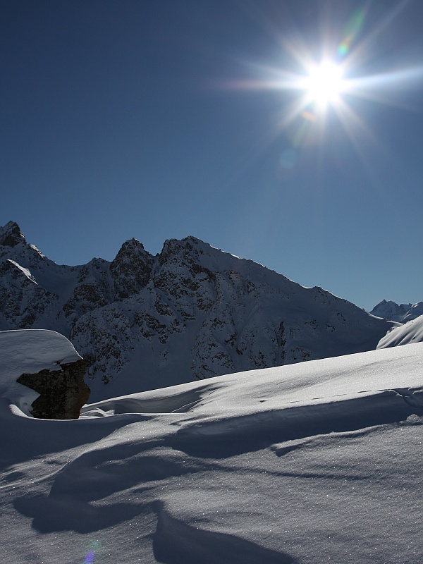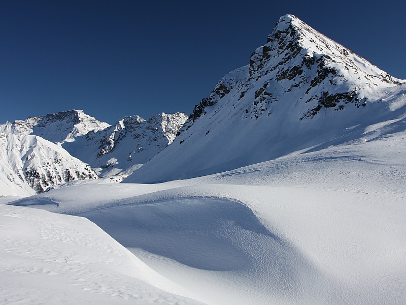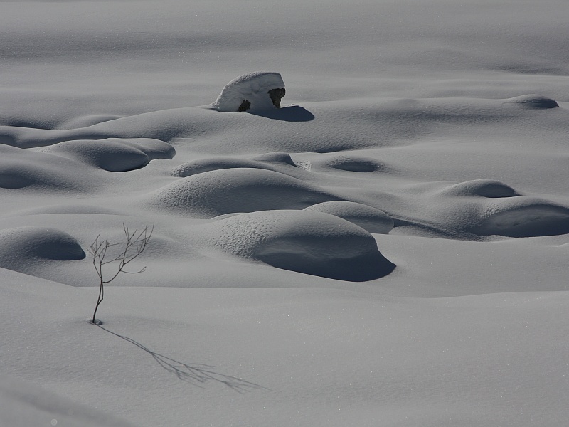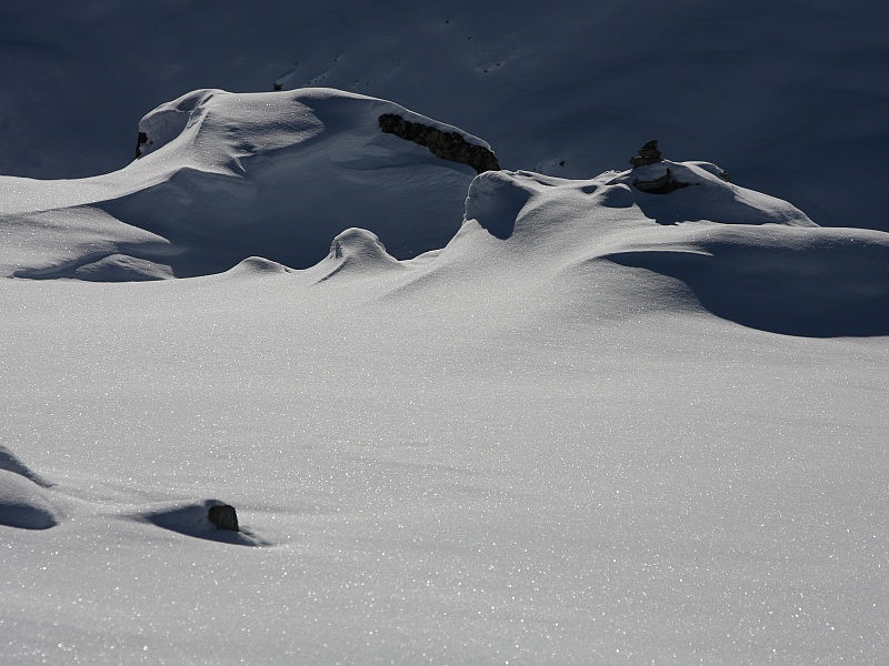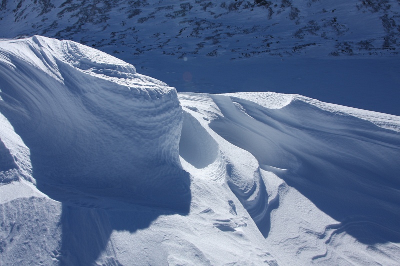 Der häufig starke Wind formt den Schnee zu interessanten Formen.