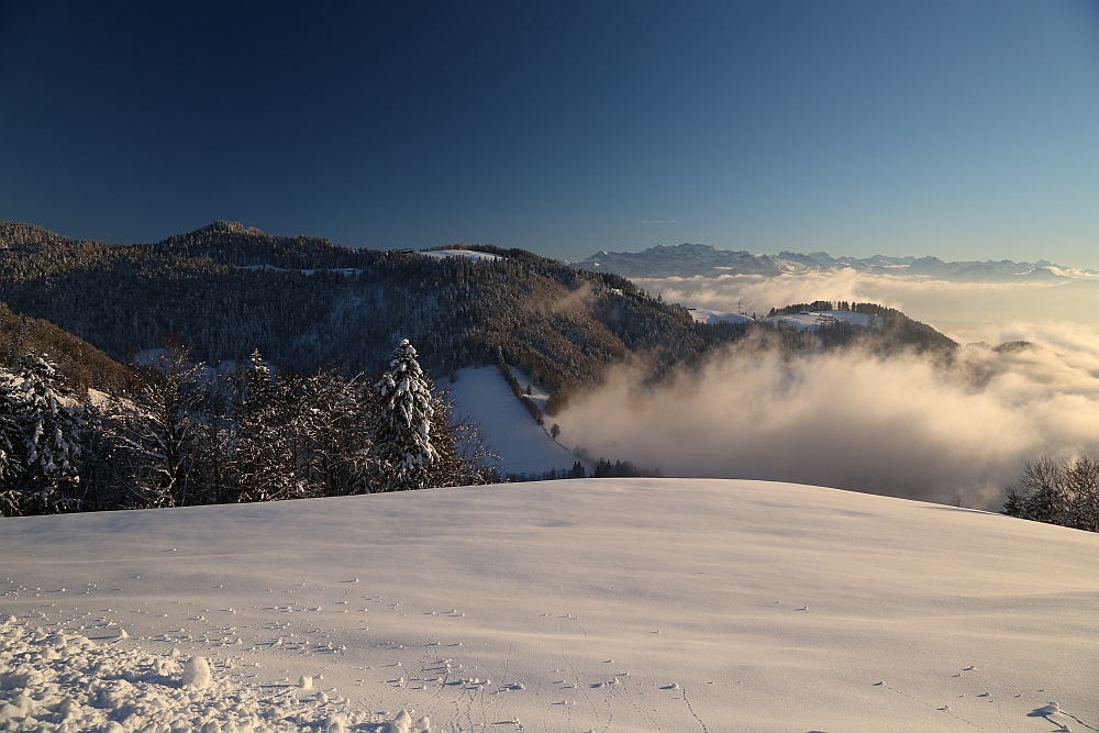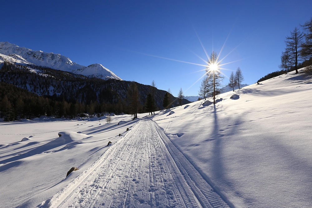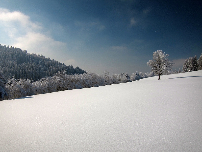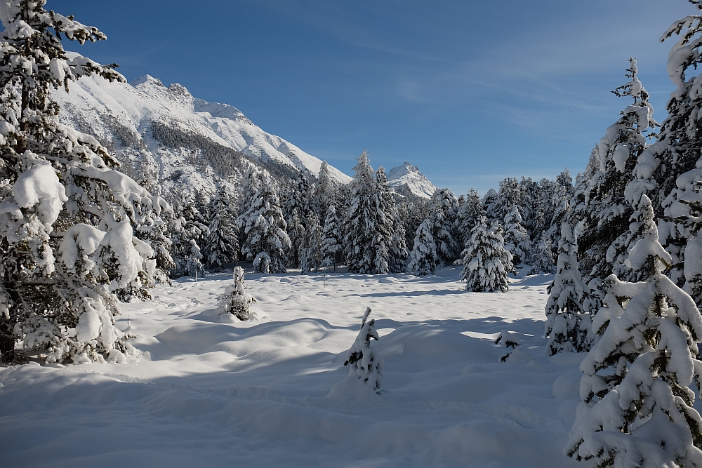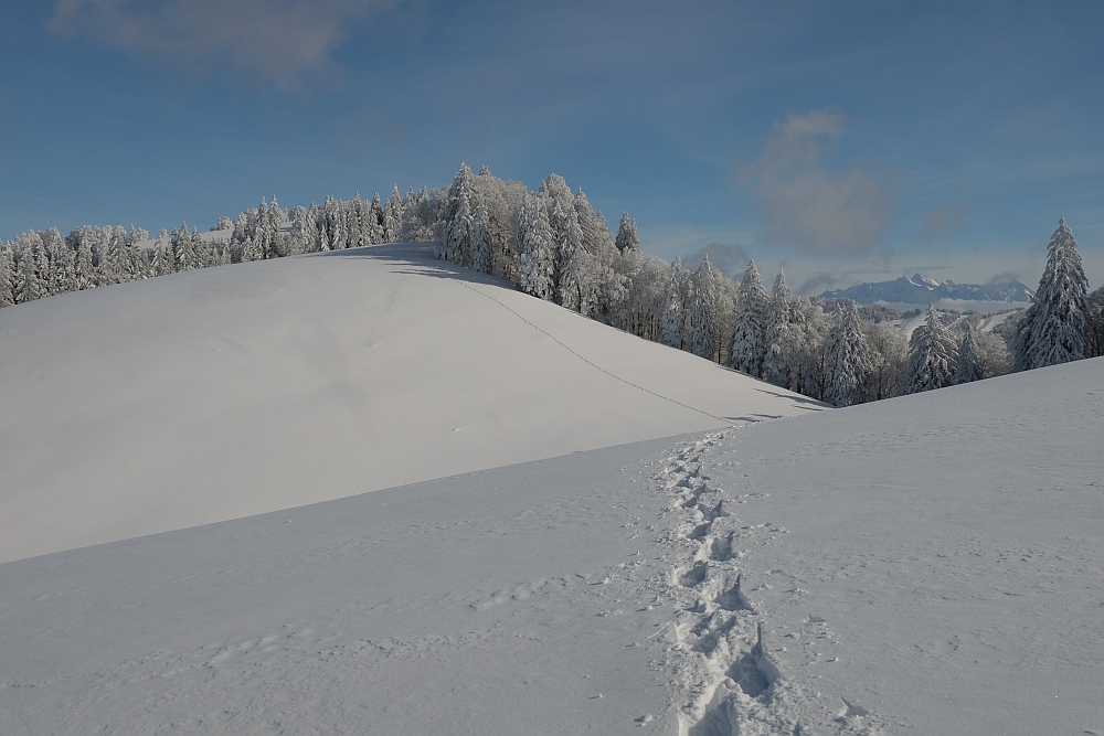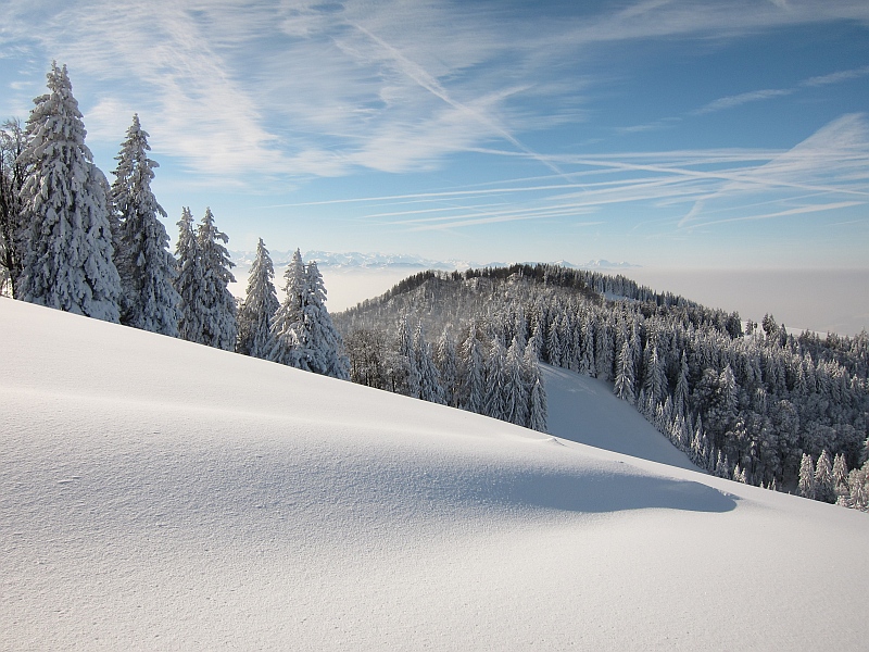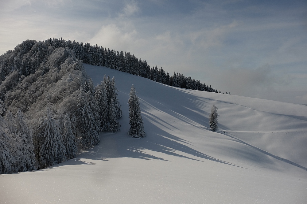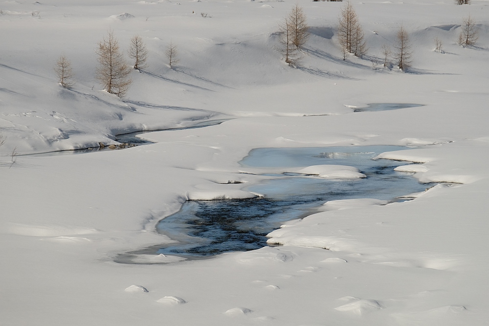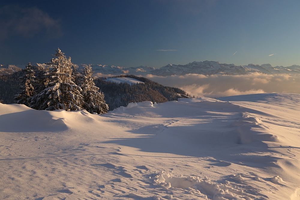 Der häufig starke Wind formt den Schnee zu interessanten Formen.