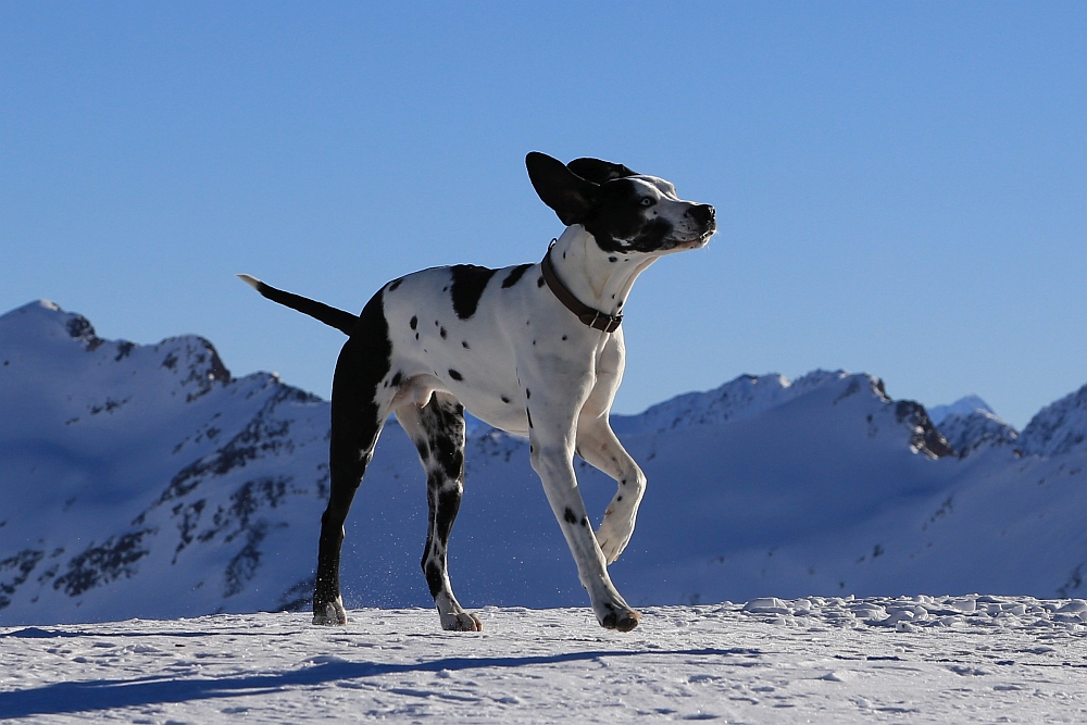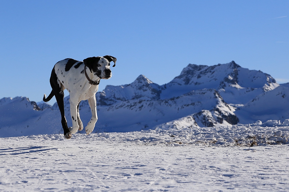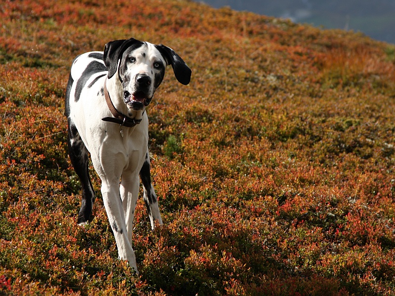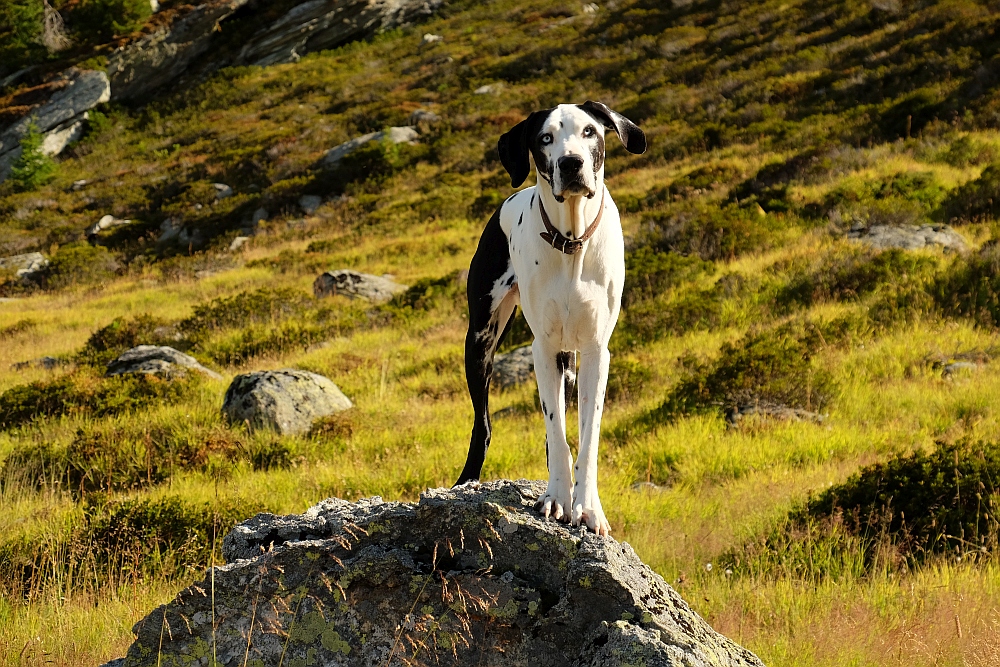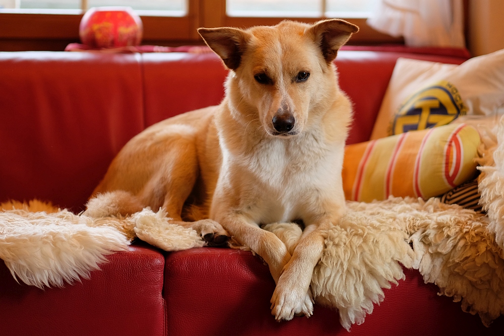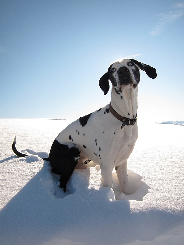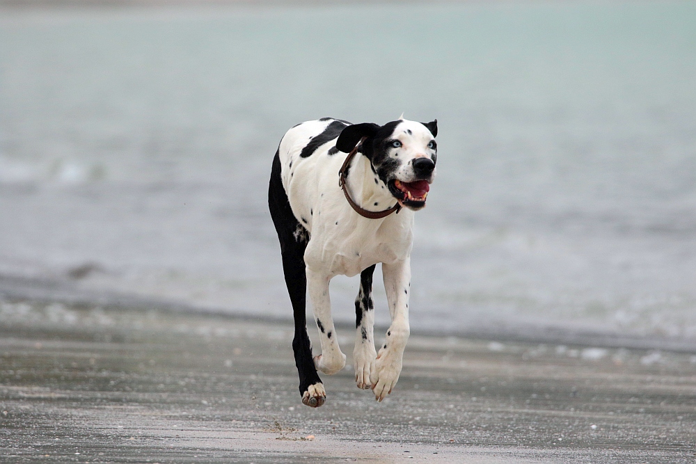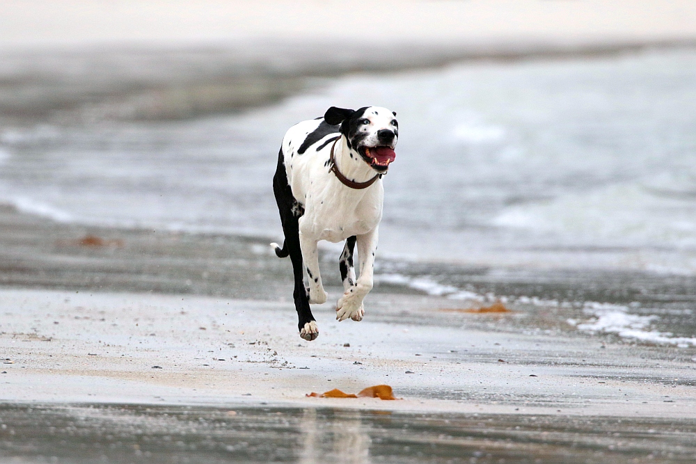 Bailey geniesst den grossen Sandstrand von Ramberg auf den Lofoten