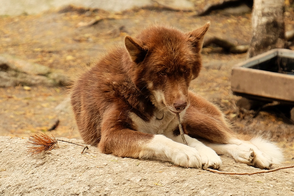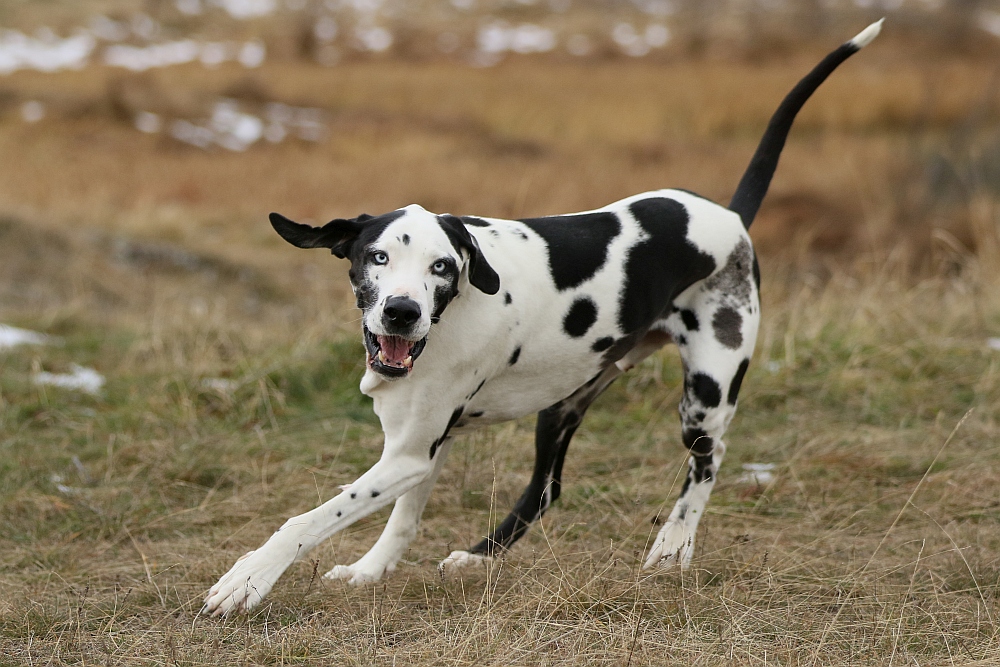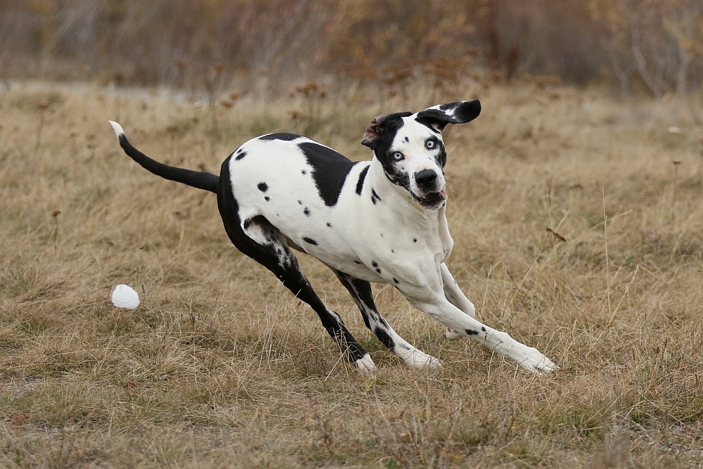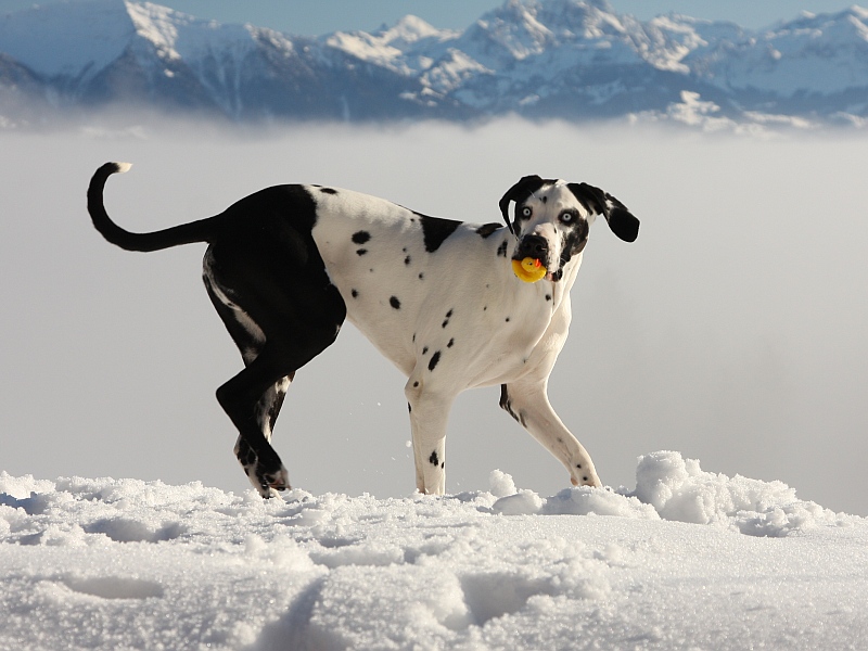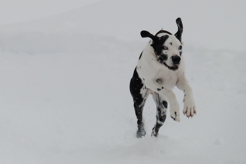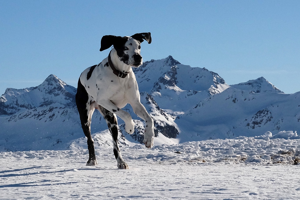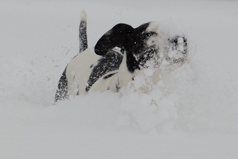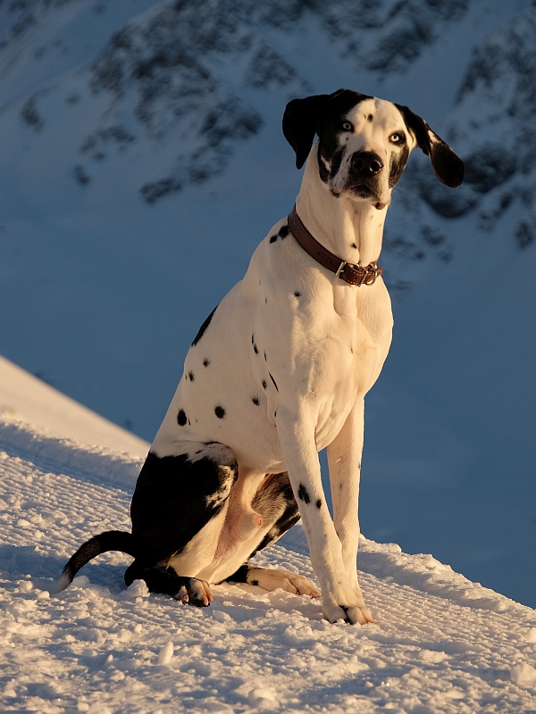 Bailey geniesst den grossen Sandstrand von Ramberg auf den Lofoten