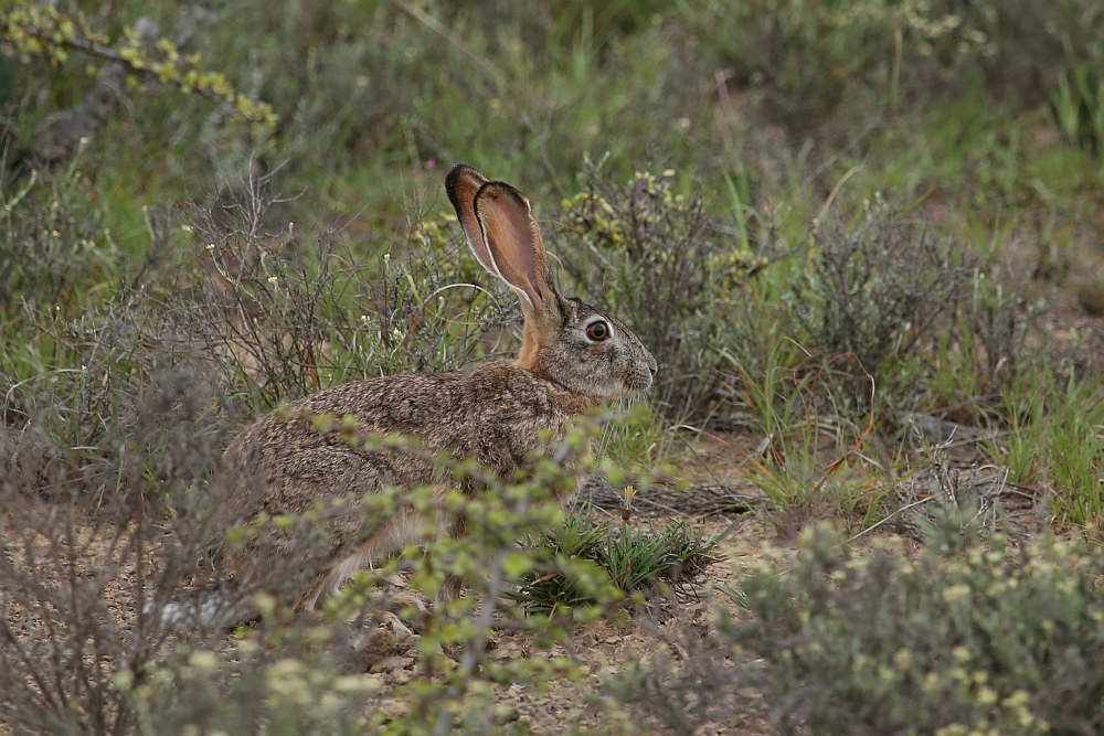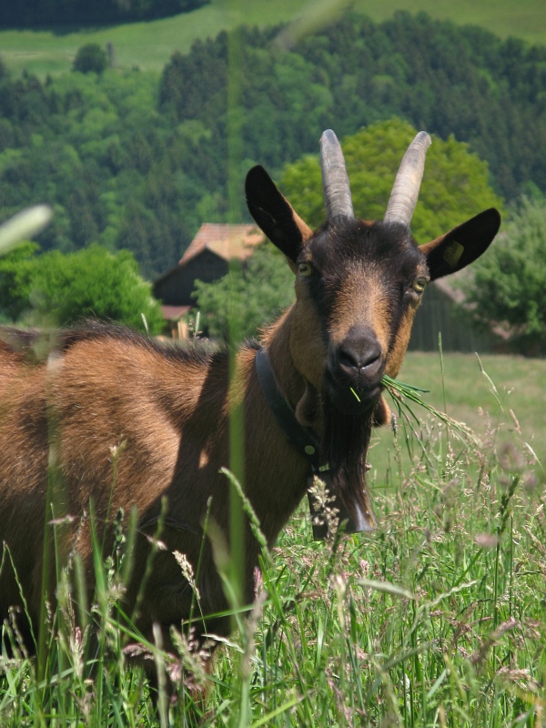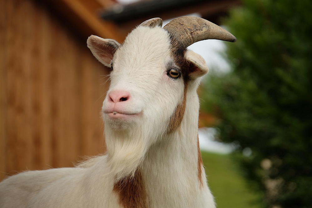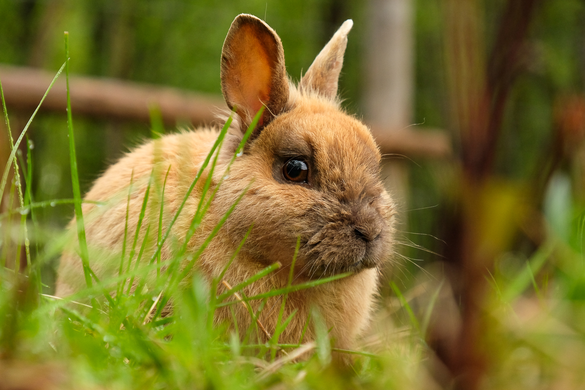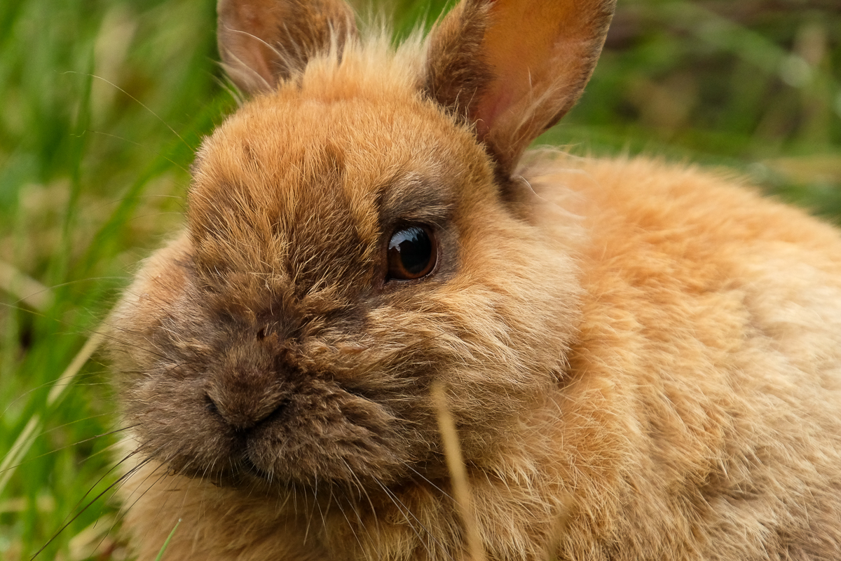 Dieses Kaninchen hoppelt gemeinsam mit einigen Kollegen und den Hühnern frei auf dem Gelände des Hofs herum.