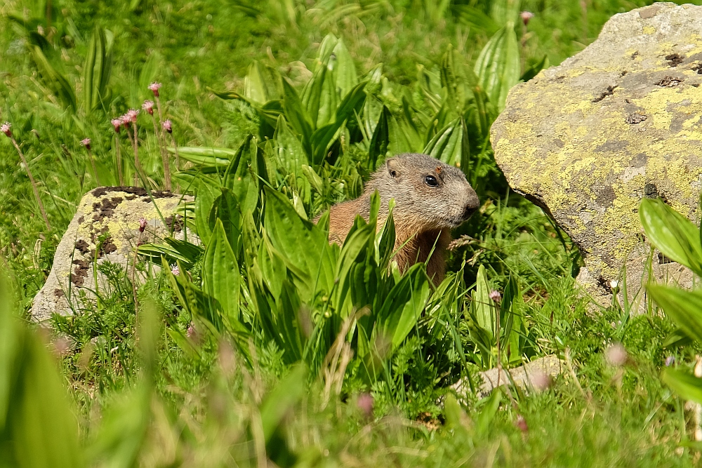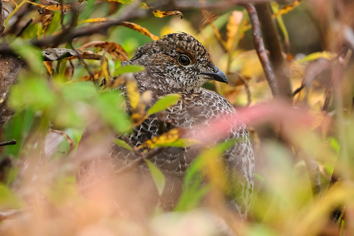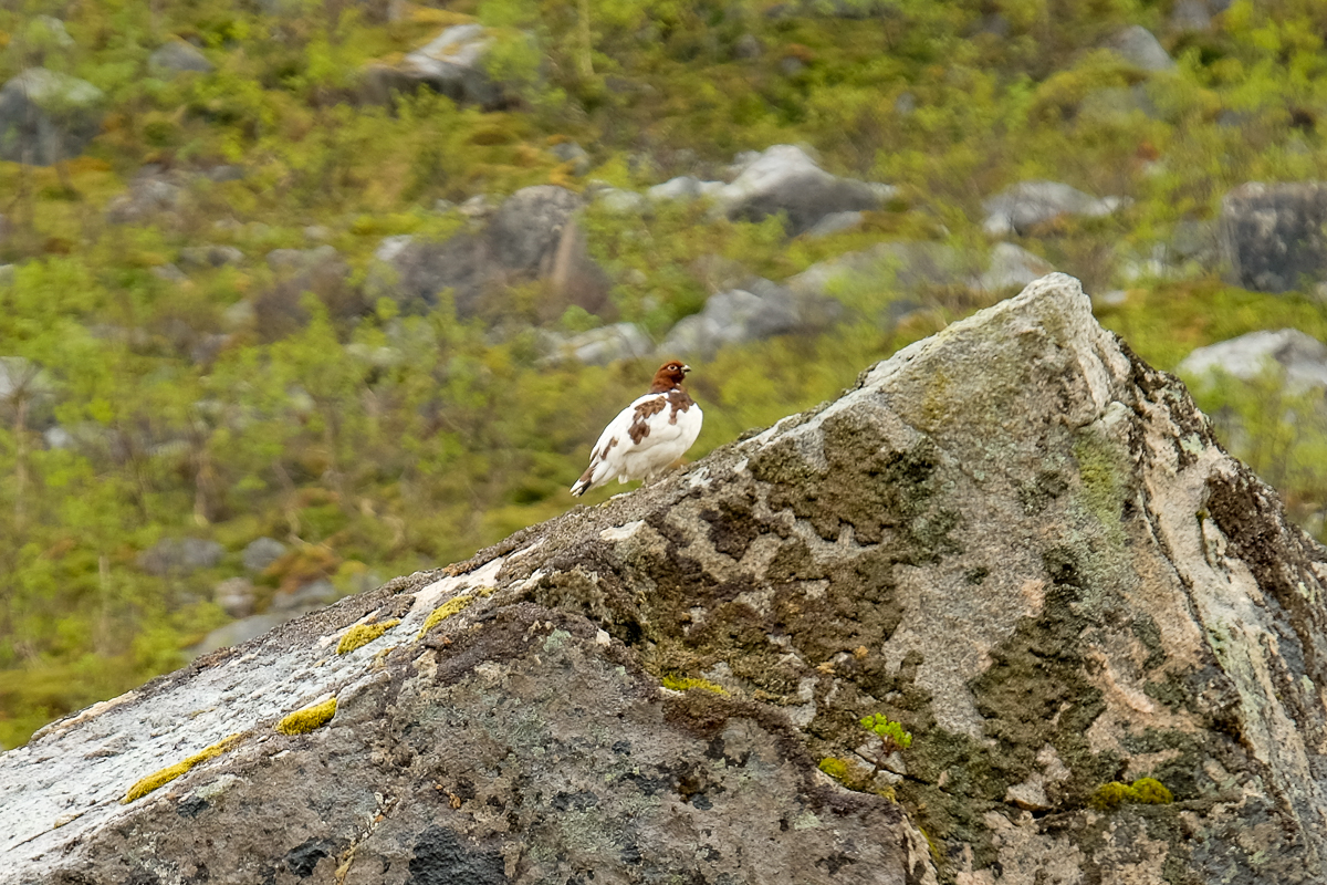 Dieses Schneehuhn befindet sich gerade im frühjährlichen Federkleidwechsel.