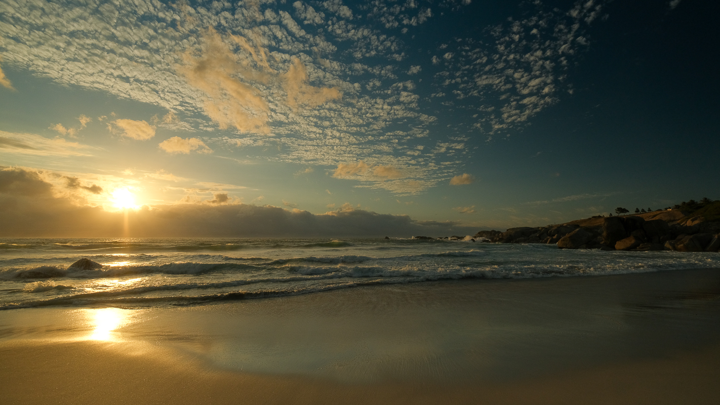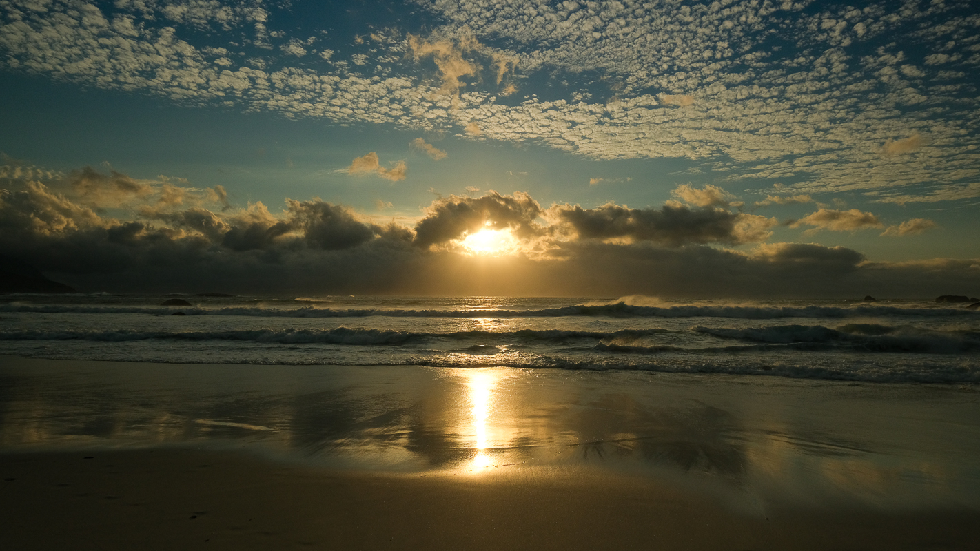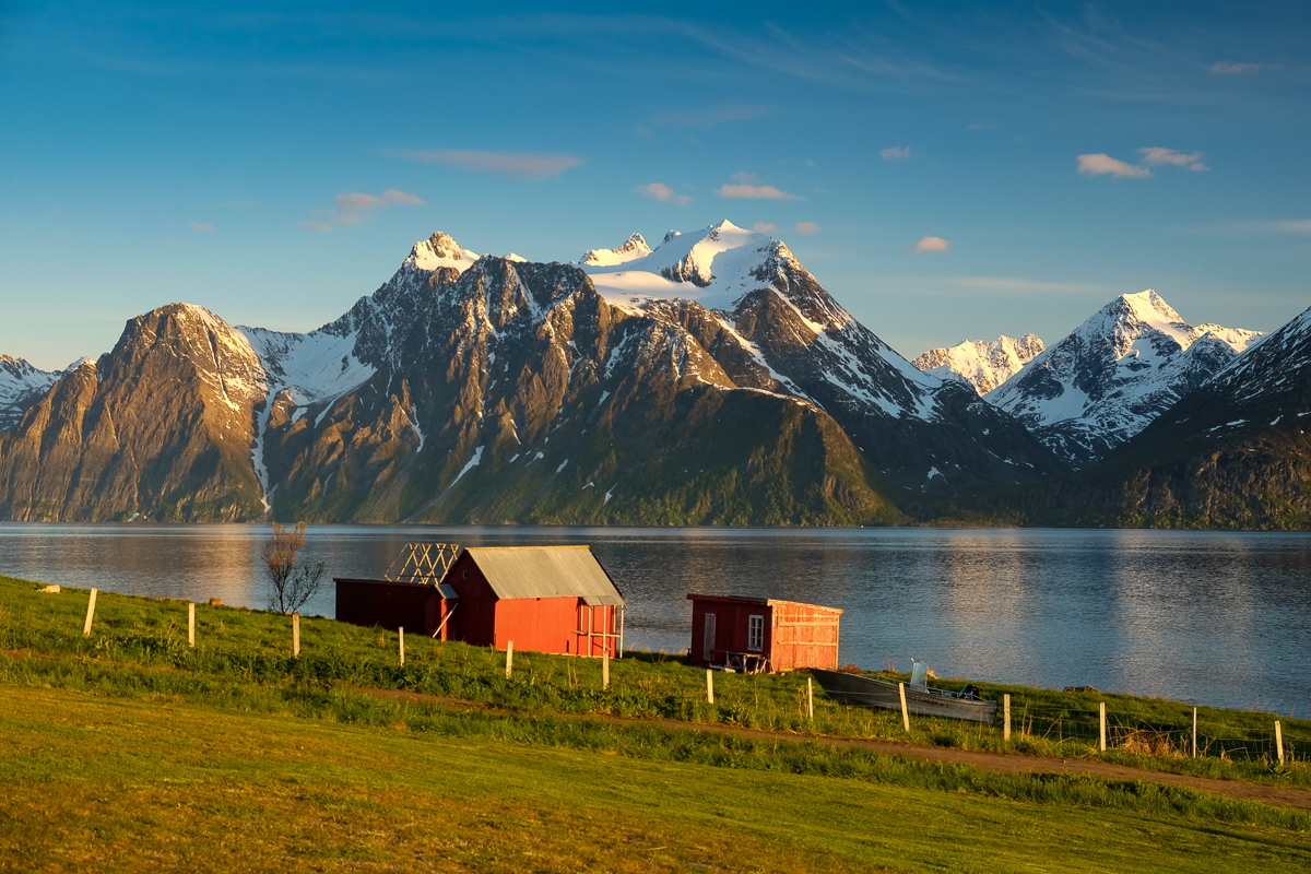 Die ersten Sonnenstrahlen treffen auf die Ostküste von Senja.