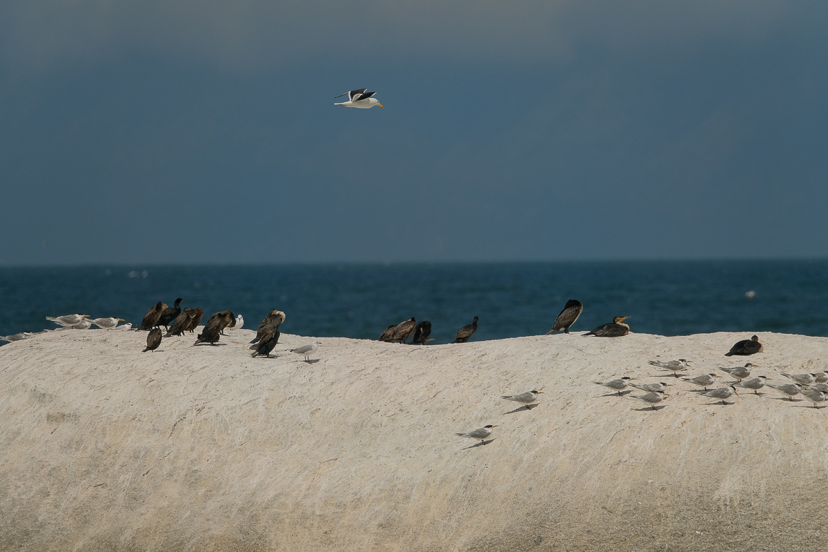 Von Bailey aufgeschreckte Möven am grossen Sandstrand von Ramberg auf den Lofoten