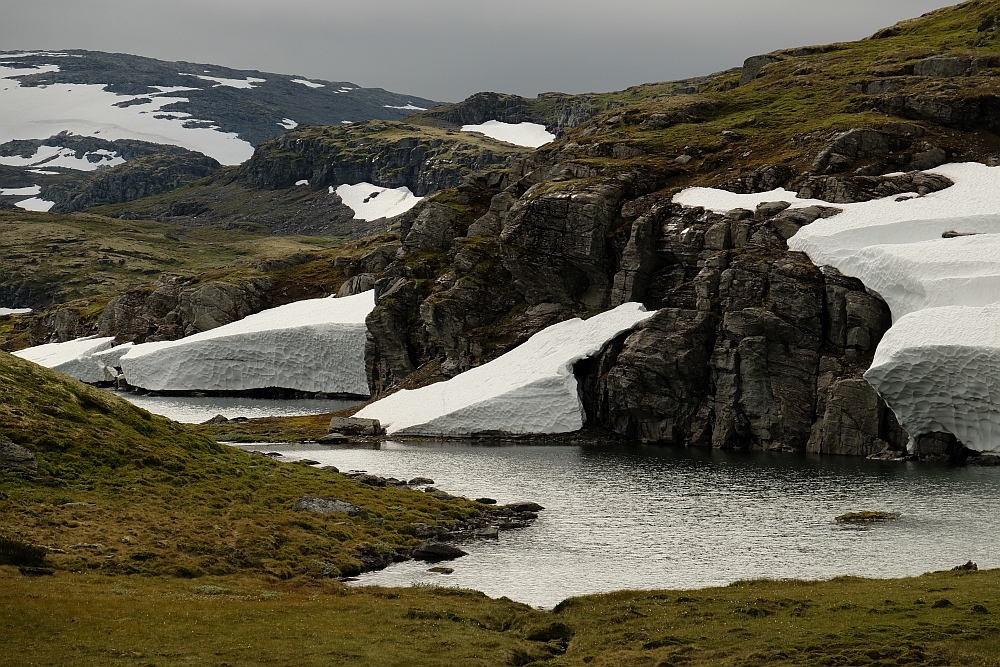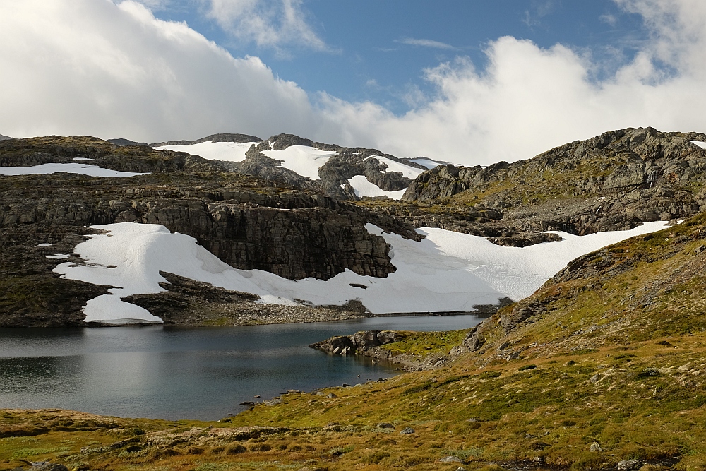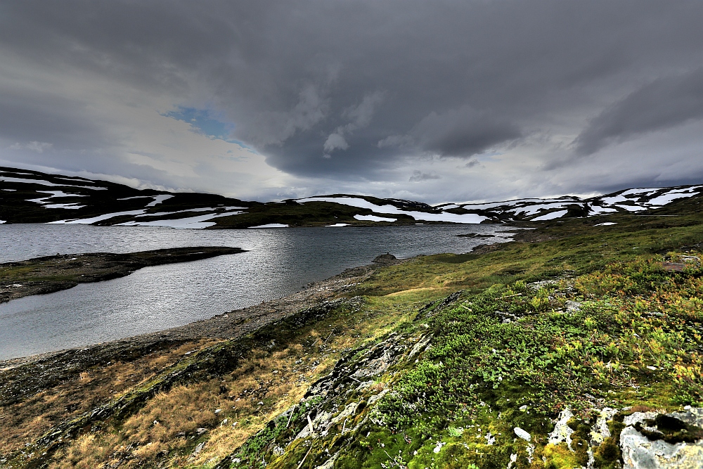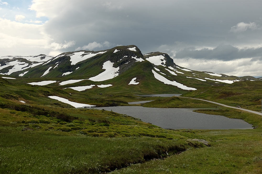 Auf dem Aurlandsfjell zwischen Lærdalsøyri und Aurlandsvangen liegen auch im September noch viele Schneereste