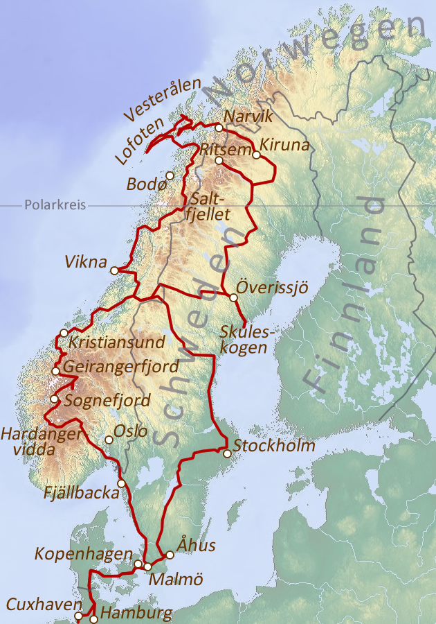 Unsere 10'140 km lange Reise durch Deutschland, Dänemark, Schweden und Norwegen.