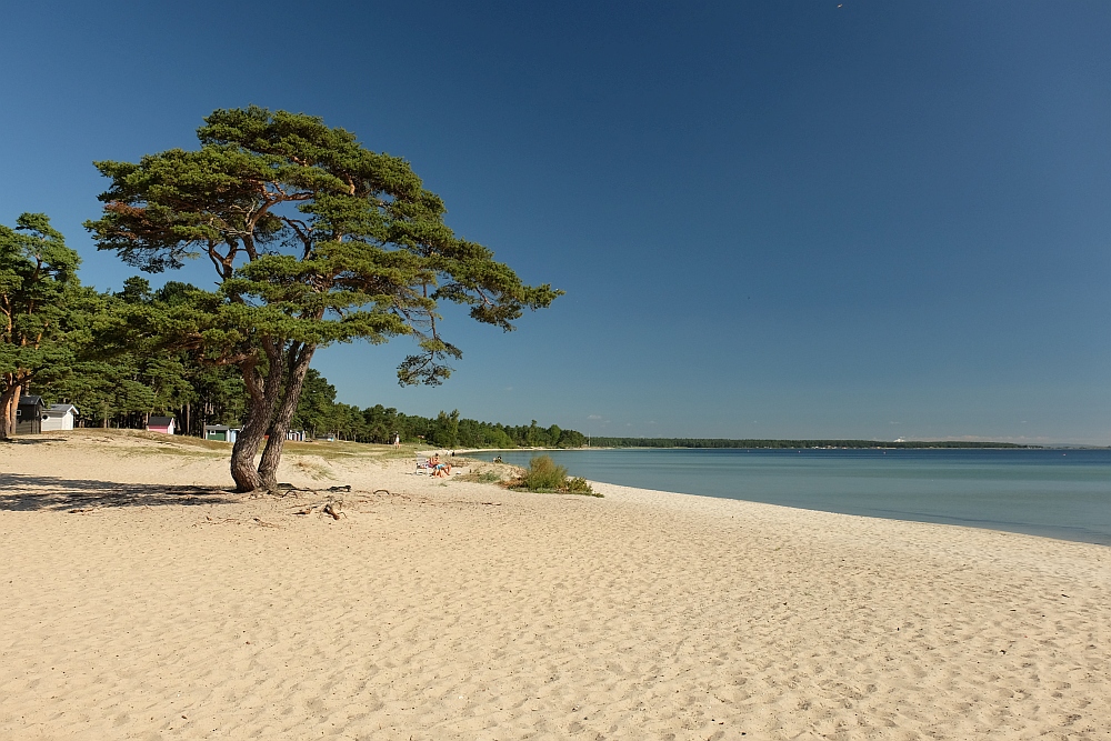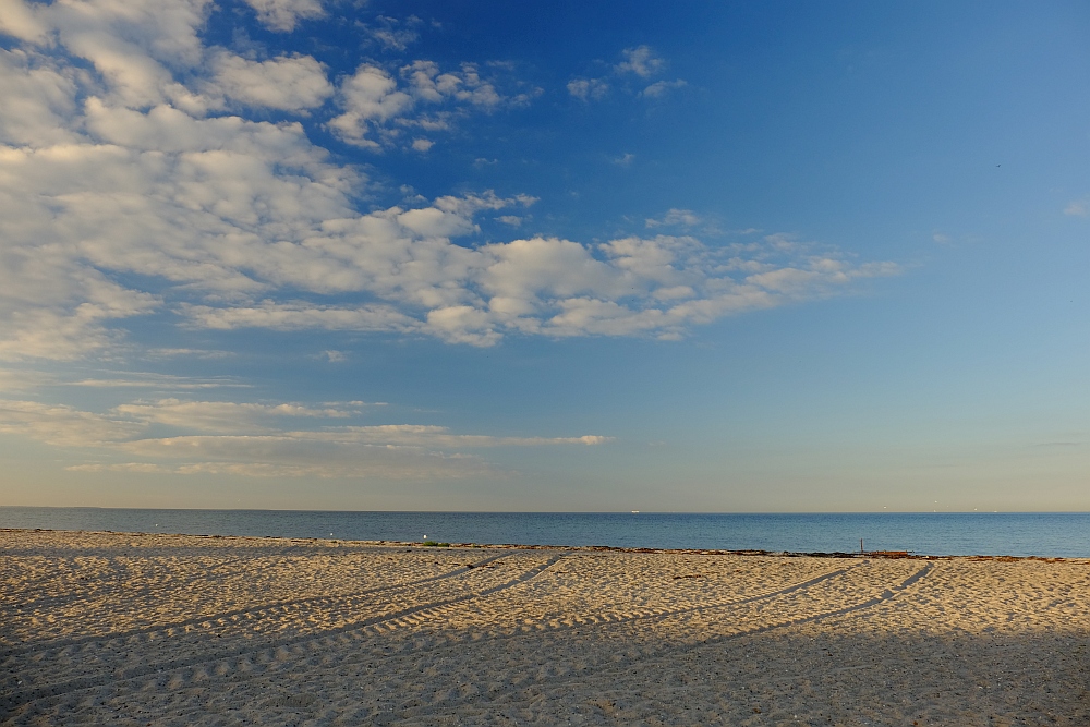 Der bekannte Ostsee-Strand in Åhus war an diesem prächtigen August-Morgen noch menschenleer
