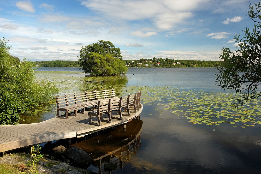 Spezieller Holzsteg an der Promenade im bekannten historischen Städtchen Sigtuna in der Nähe Stockholms