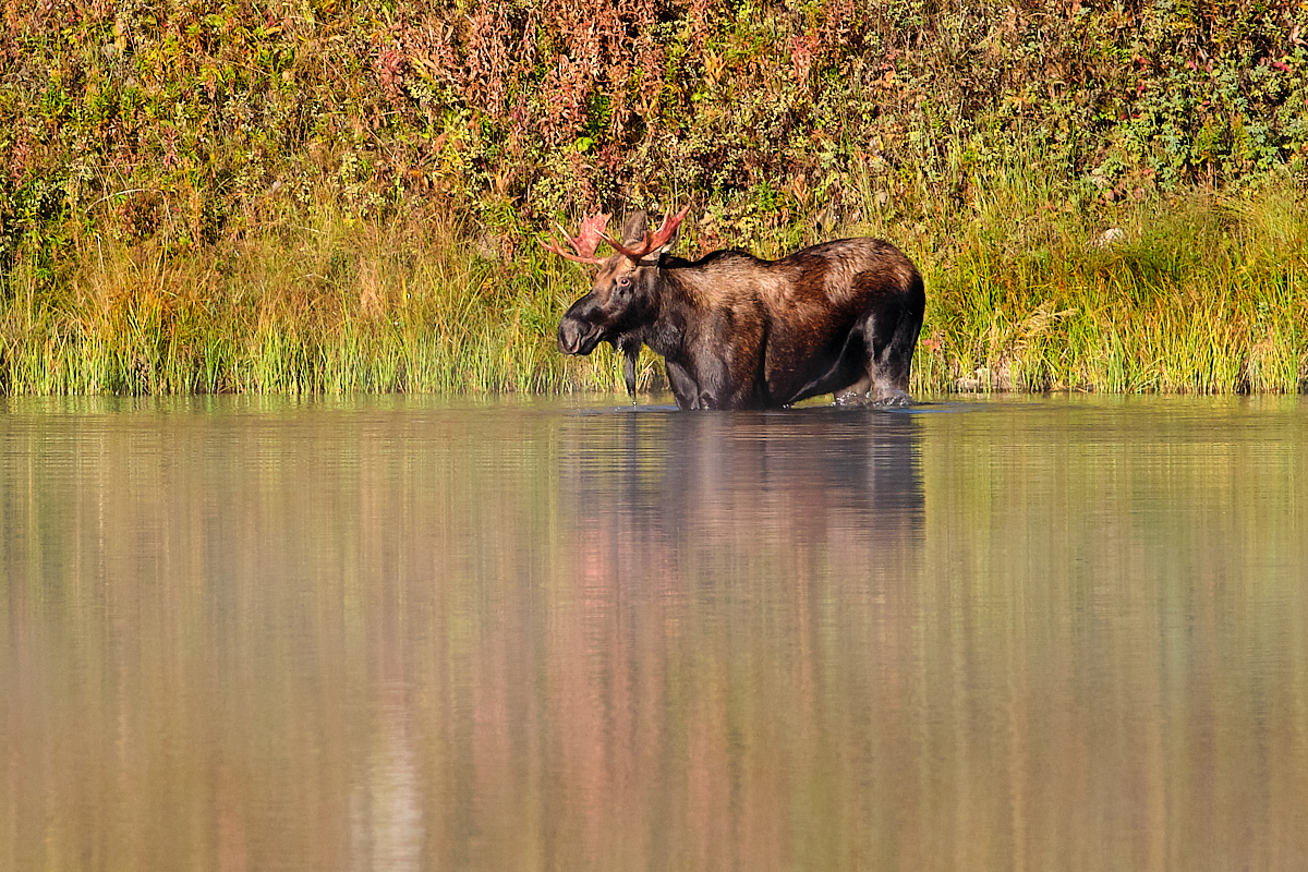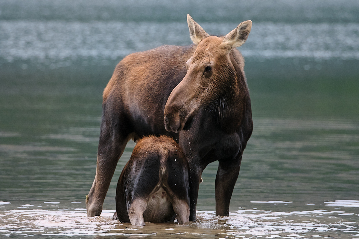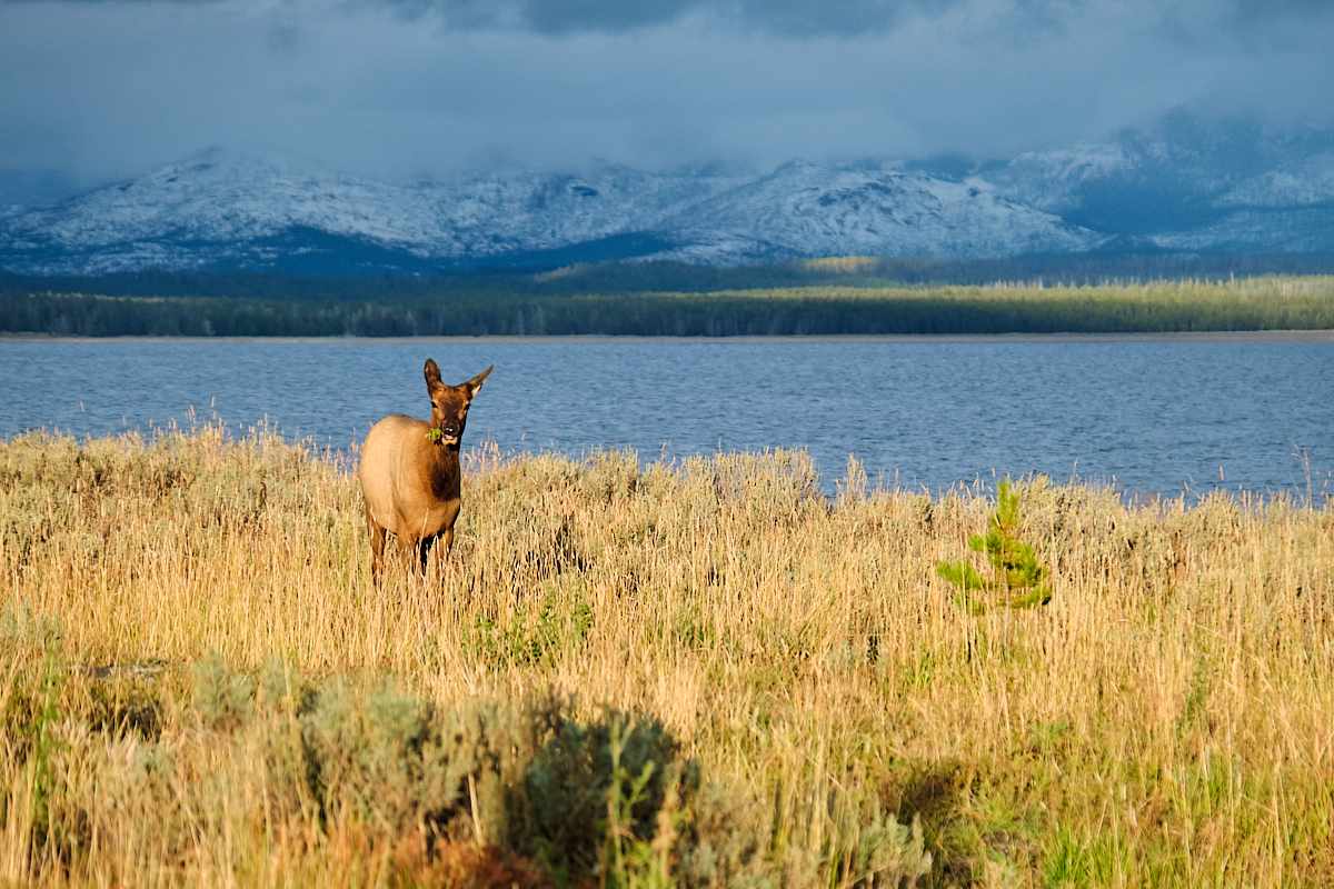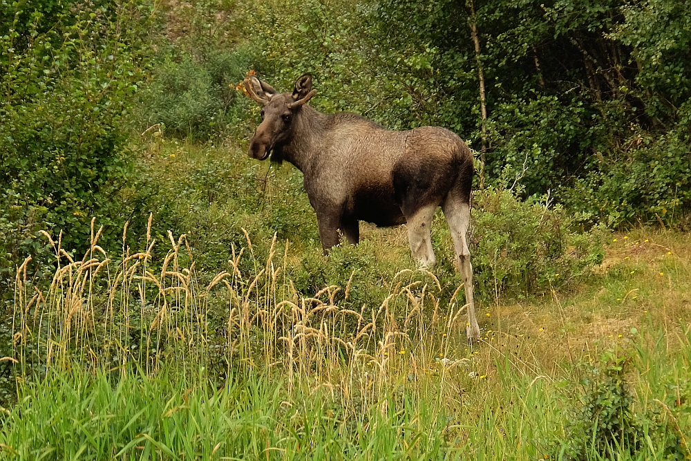 Unser erster und leider auch letzter Elch, der sich kurz fotografieren liess - gesehen auf Vikna