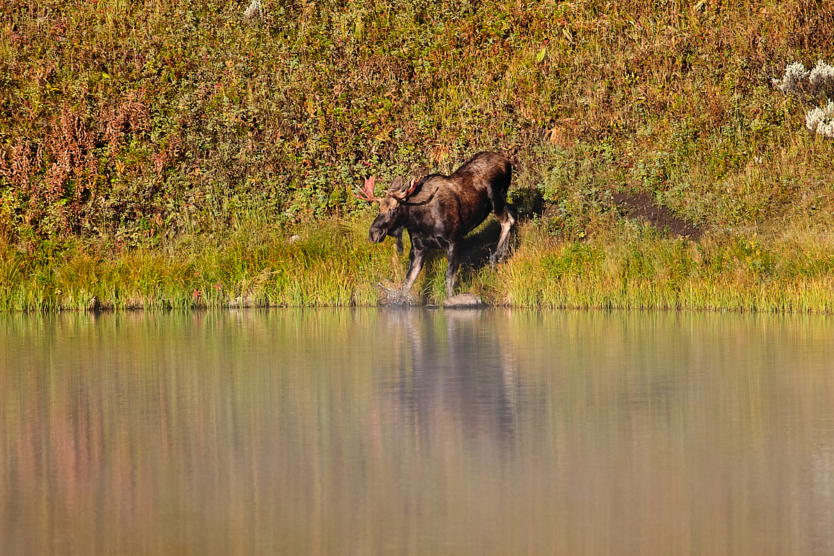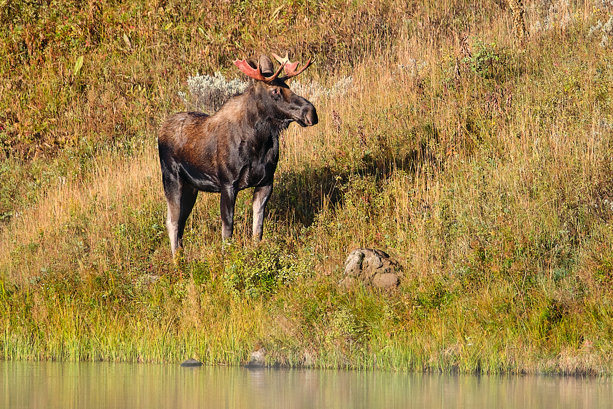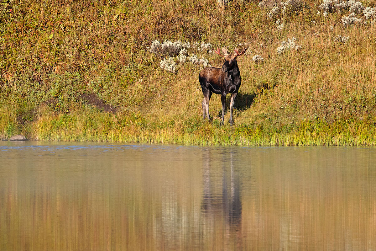 Unser erster und leider auch letzter Elch, der sich kurz fotografieren liess - gesehen auf Vikna
