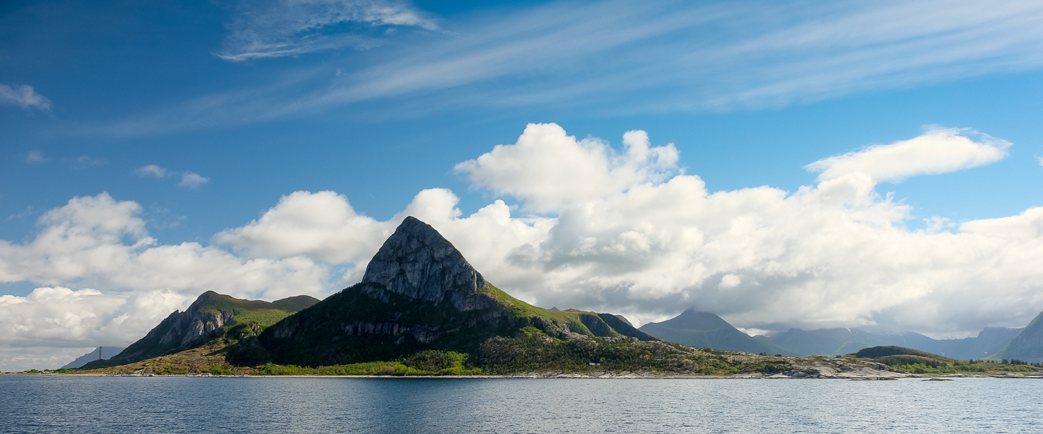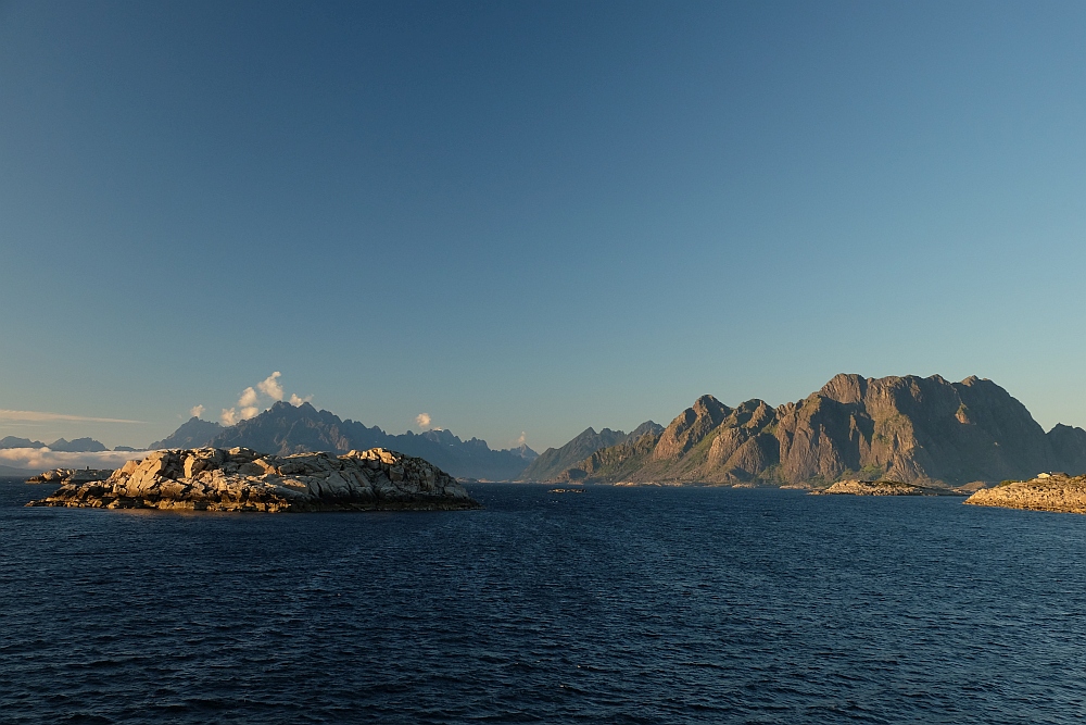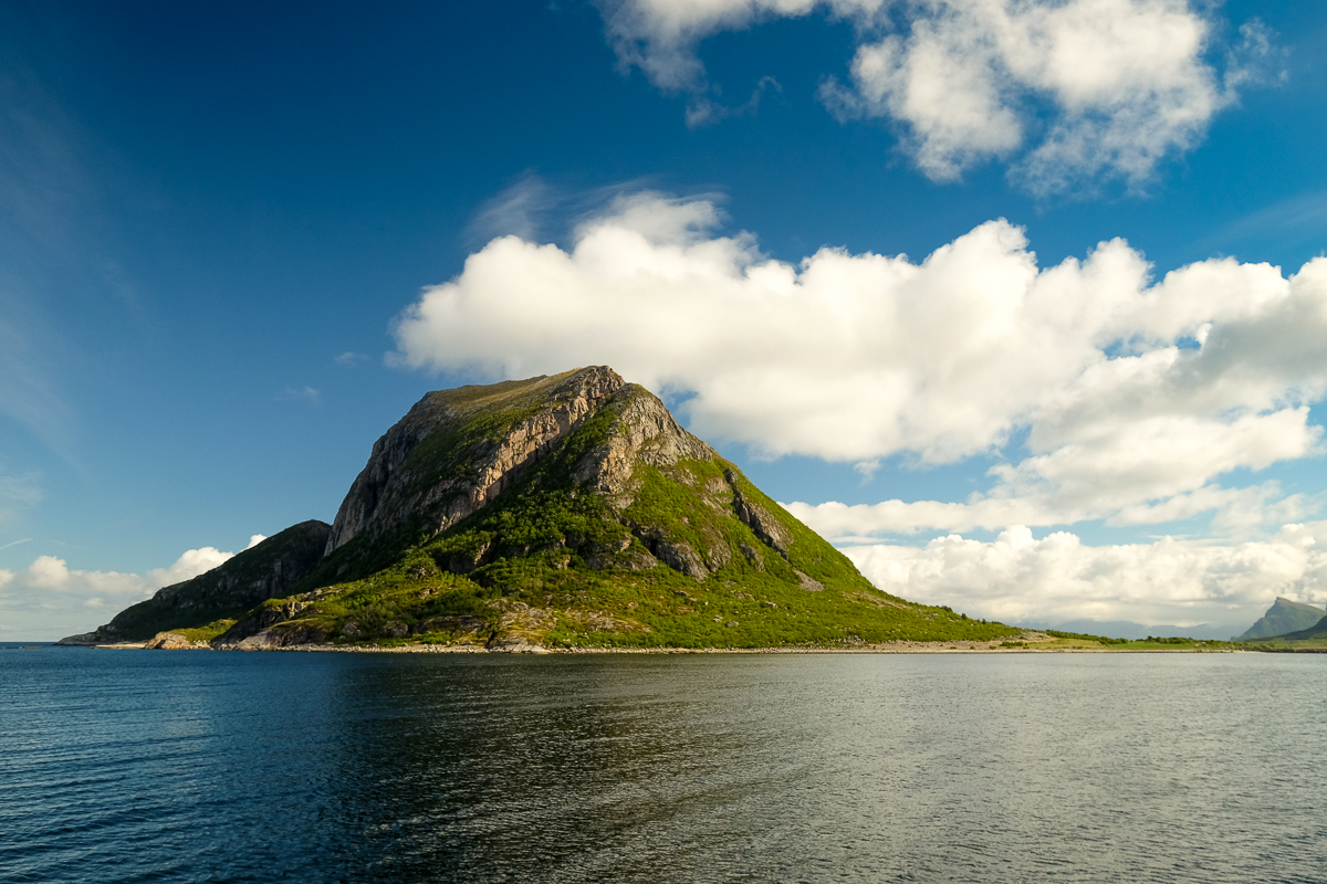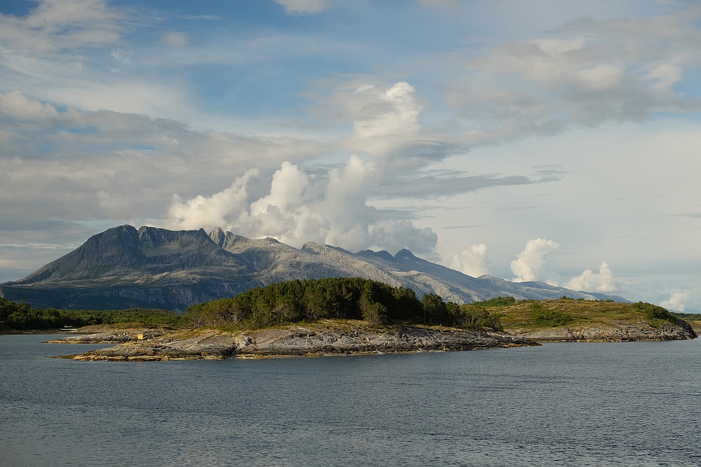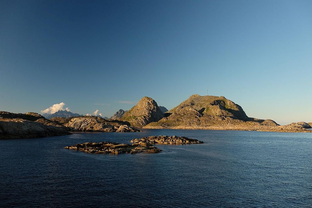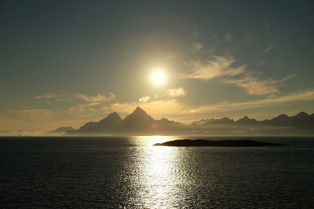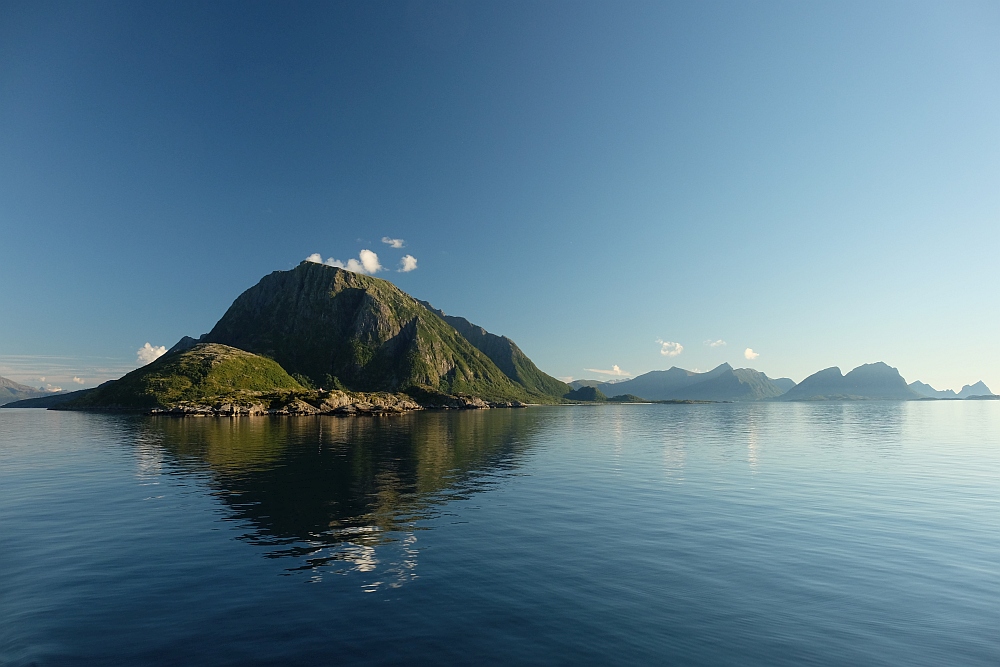 Die Insel Lundøya kurz nach der Ausfahrt in den grossen Vestfjord zwischen dem Festland und den Lofoten