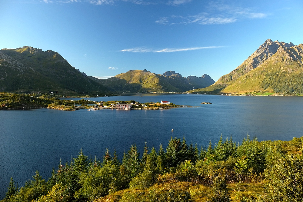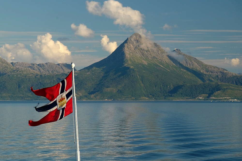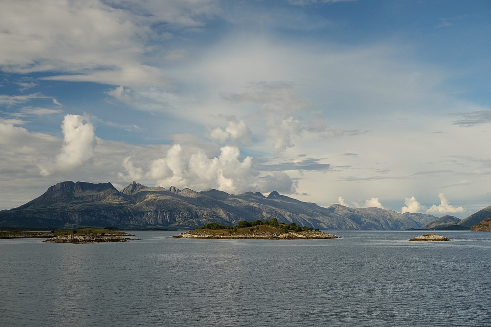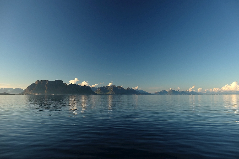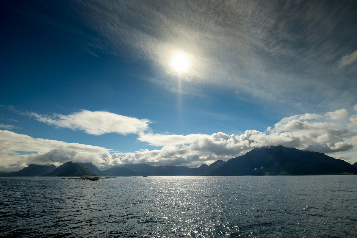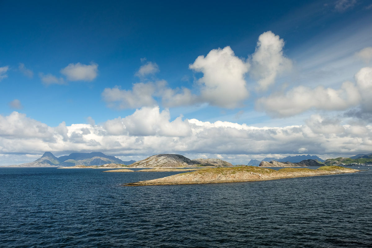 Die Insel Lundøya kurz nach der Ausfahrt in den grossen Vestfjord zwischen dem Festland und den Lofoten
