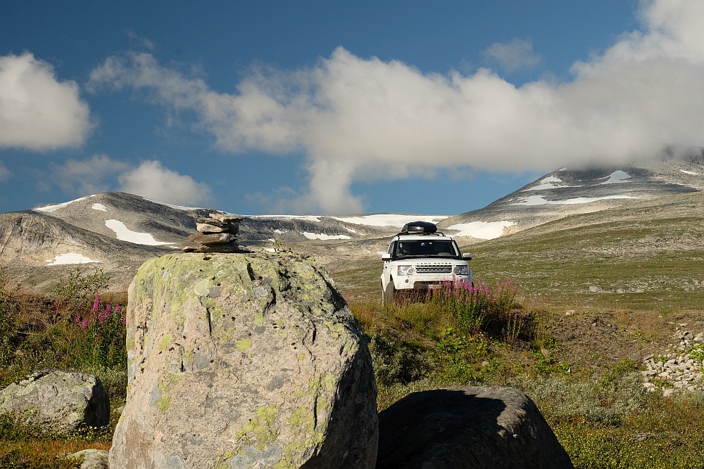Auf dem Saltfjellet überqueren wir mit unserem Land Rover Discovery den Polarkreis