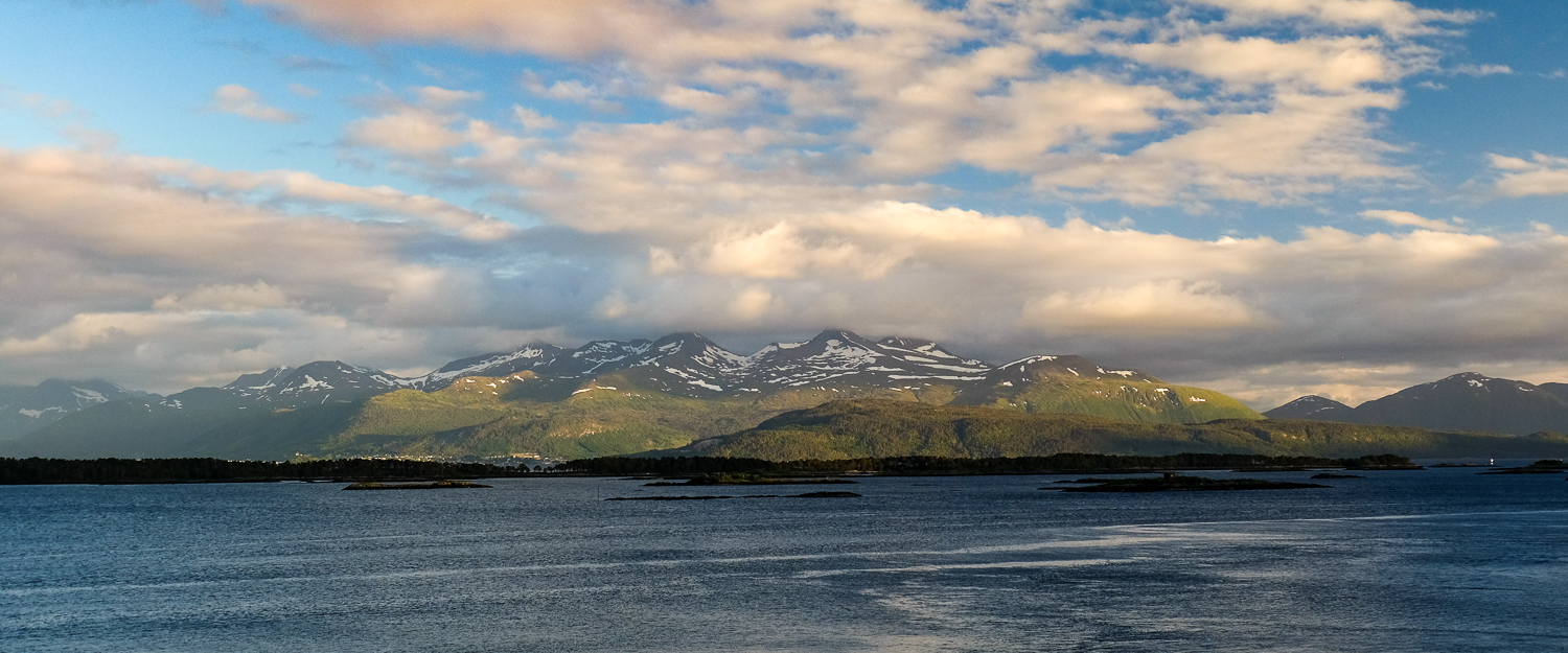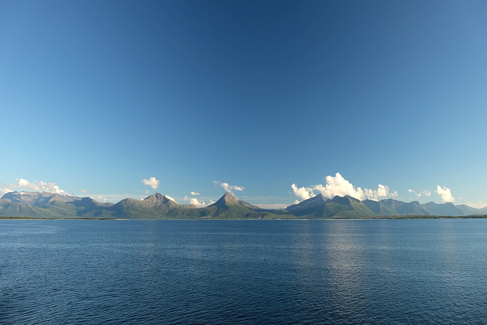 Ein erster Blick über den Vestfjord zu den schroffen Gipfeln der Lofoten