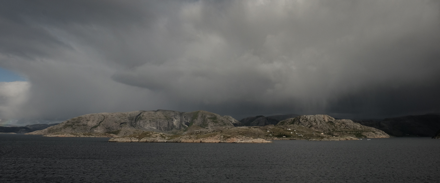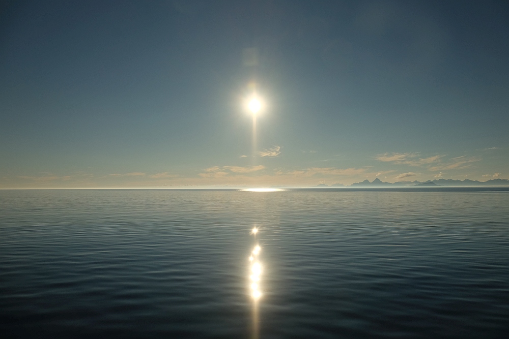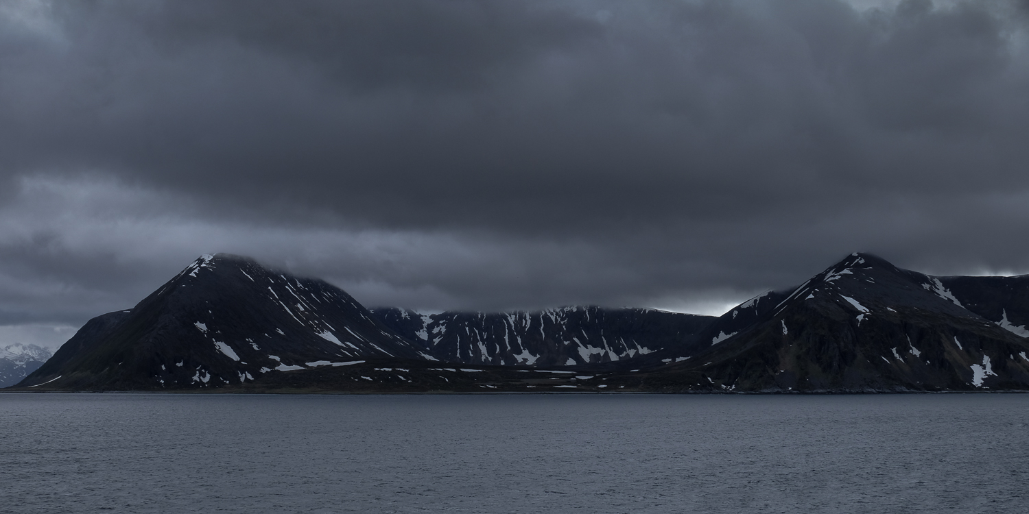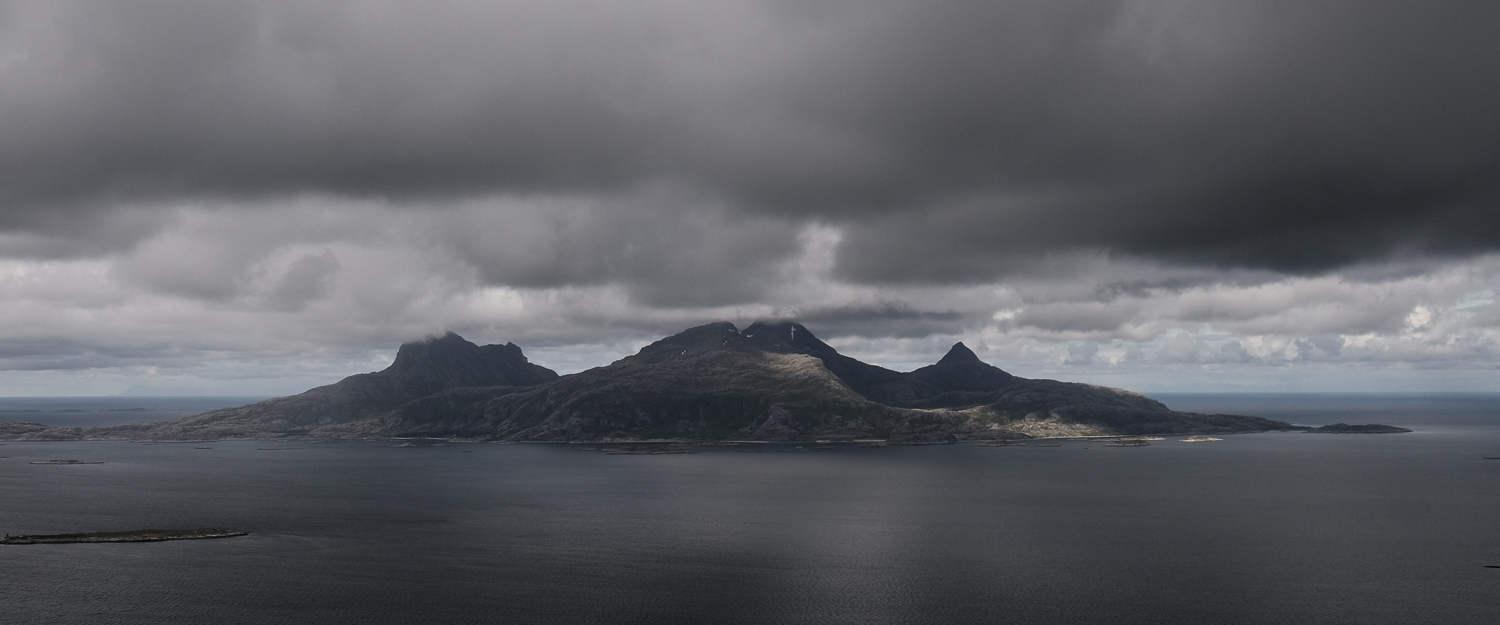 Ein letzter Blick zurück auf die Inseln um Engeløya vor dem Norwegischen Festland