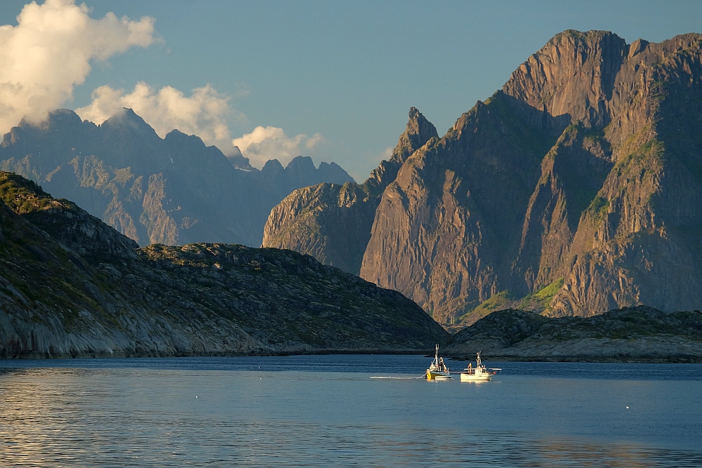 Fischerboote vor Skrova, einer den Lofoten vorgelagerten kleinen Insel
