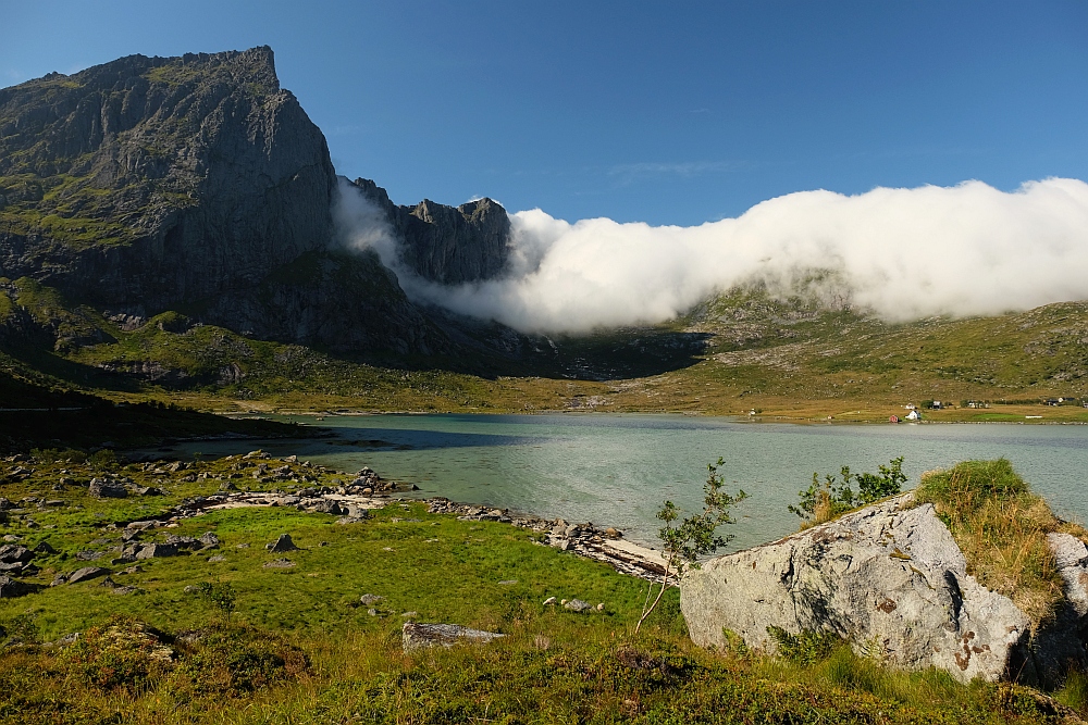 Die Berge nördlich des Eidsfjord sind knapp 700 Meter hoch