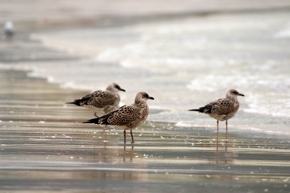 Möven am grossen Sandstrand von Ramberg auf den Lofoten