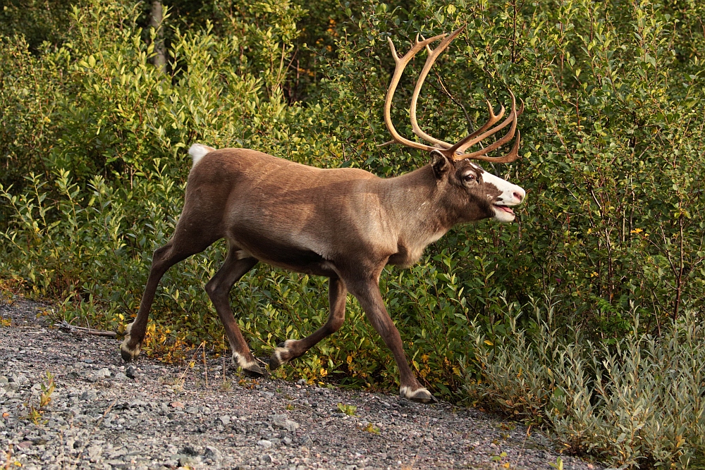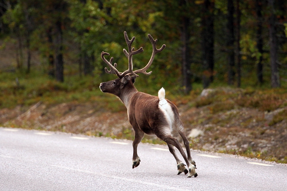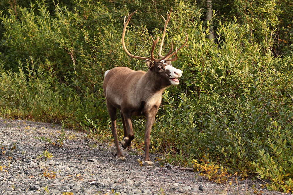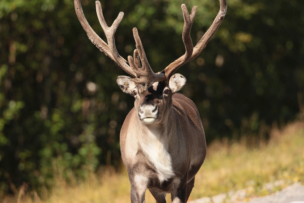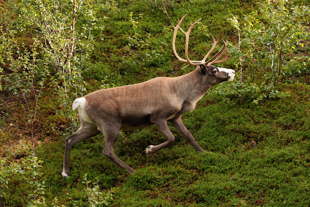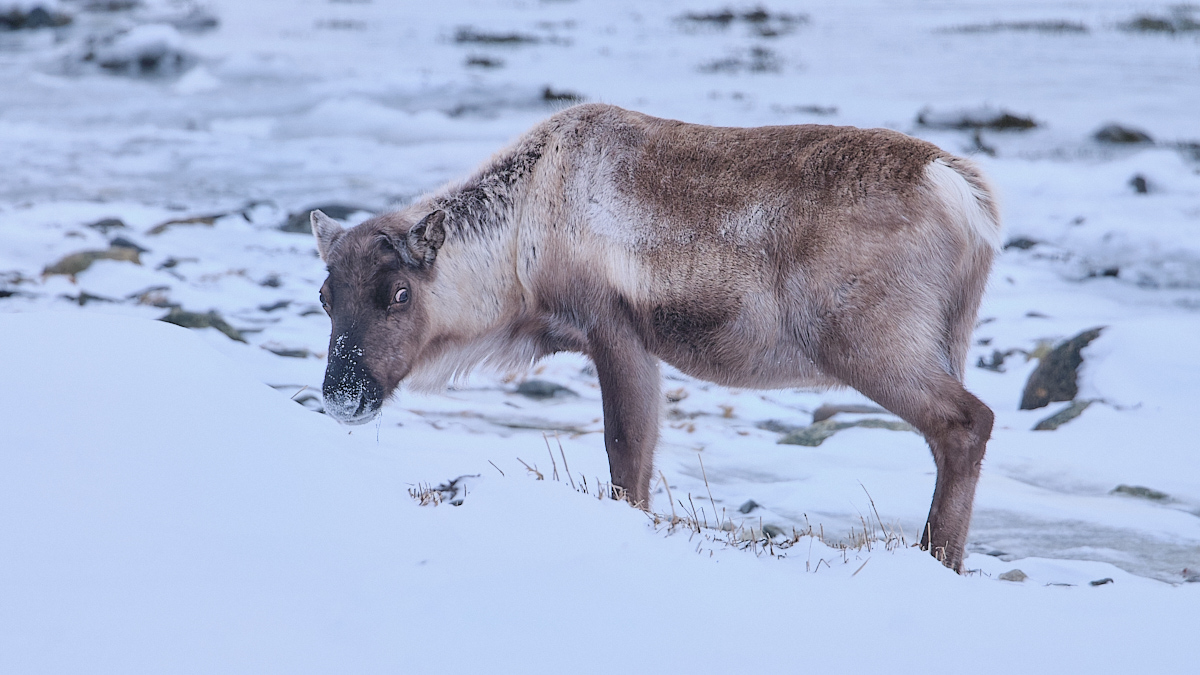 Häufig sind die wilden Rentiere in grossen Gruppen unterwegs, dieses ist aber alleine.