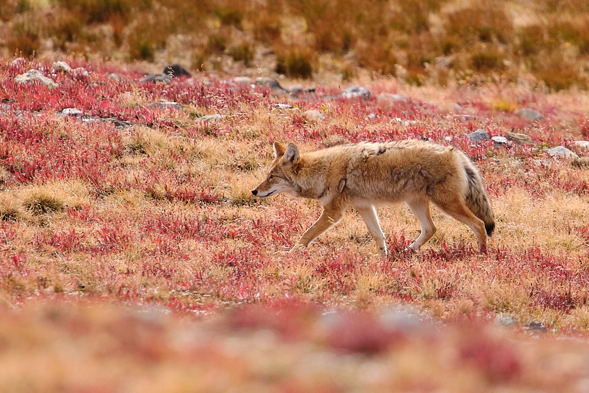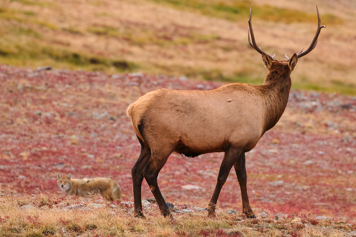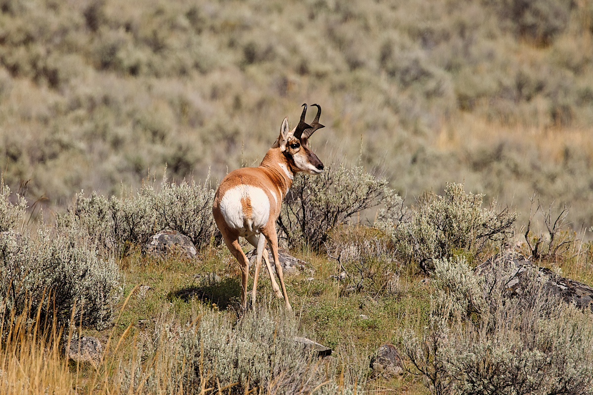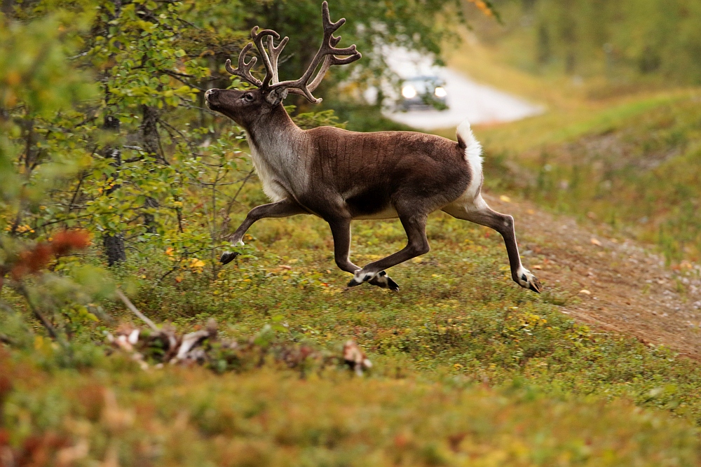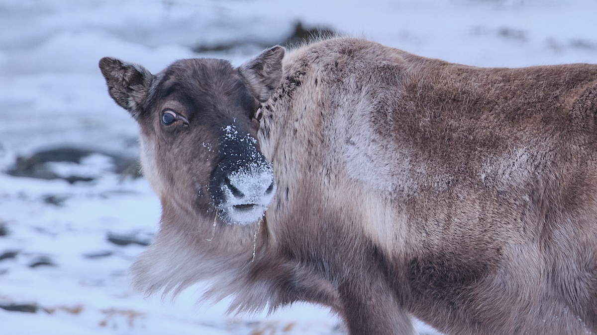 Häufig sind die wilden Rentiere in grossen Gruppen unterwegs, dieses ist aber alleine.