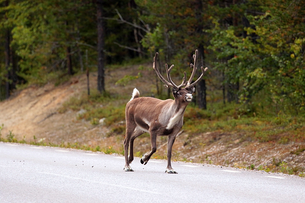 Wieder in Schweden sehen wir die ersten Rentiere im Stora Sjöfallets Nationalpark südwestlich von Kiruna
