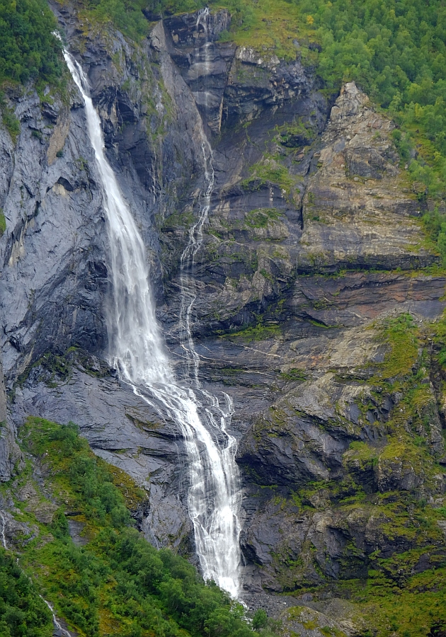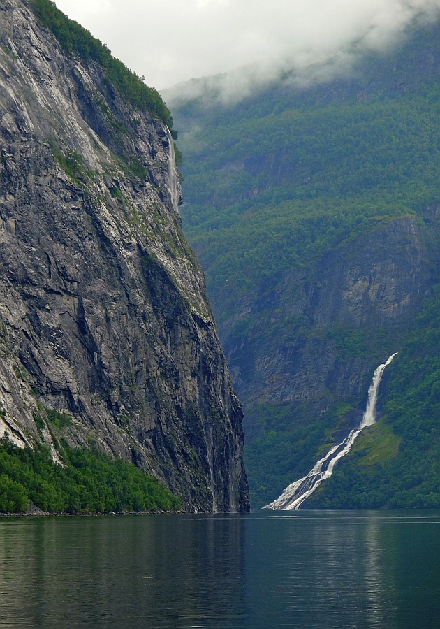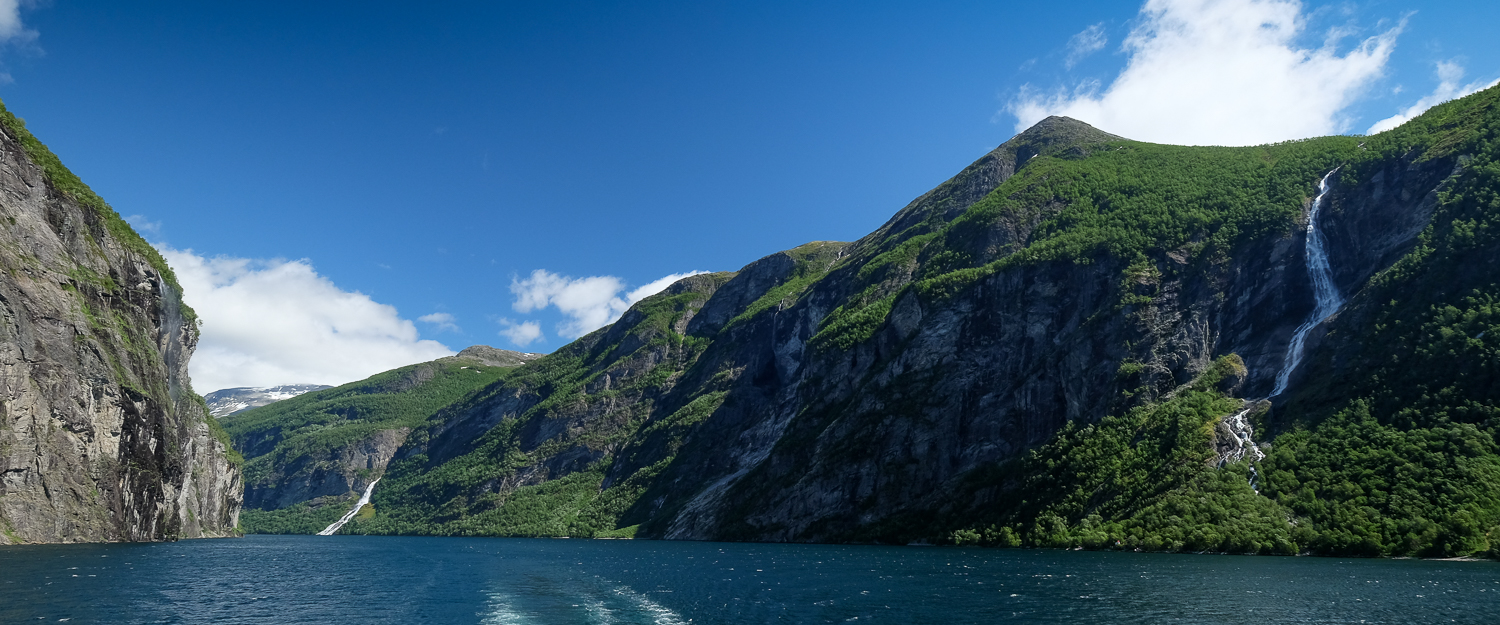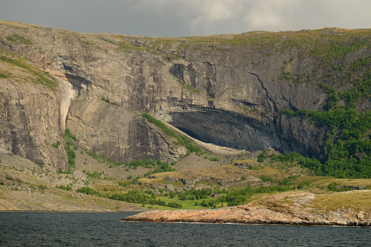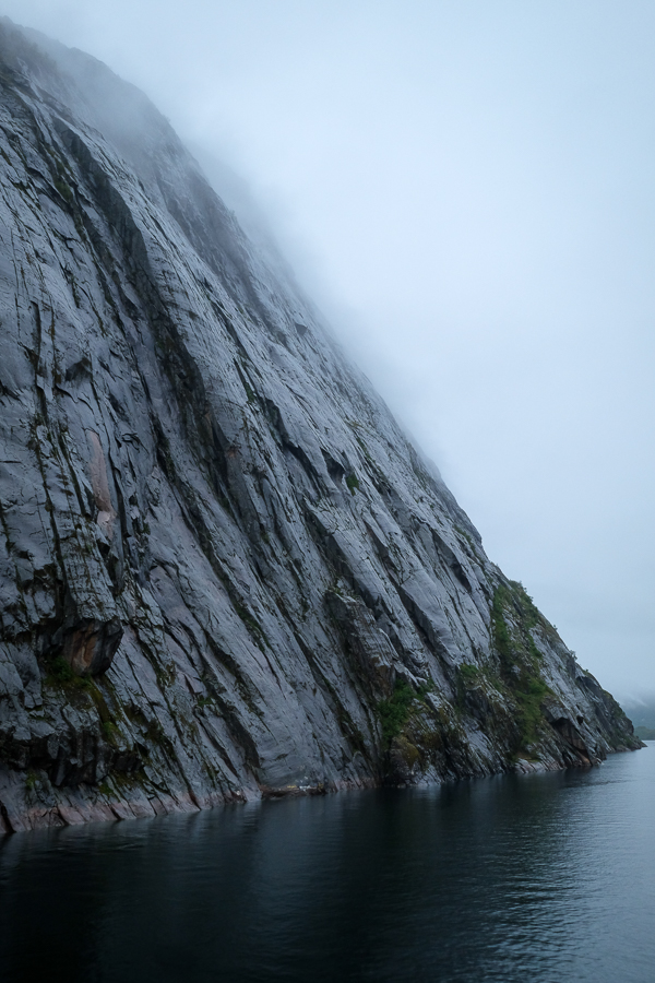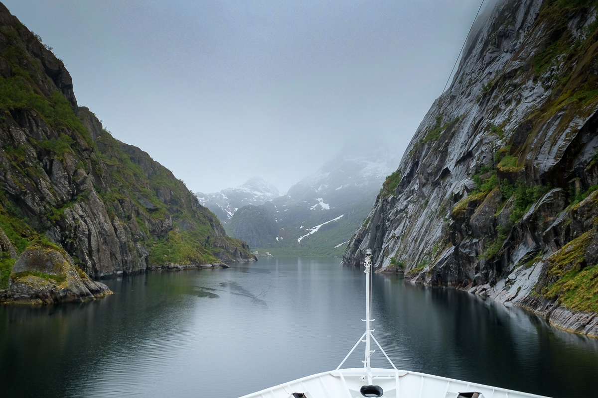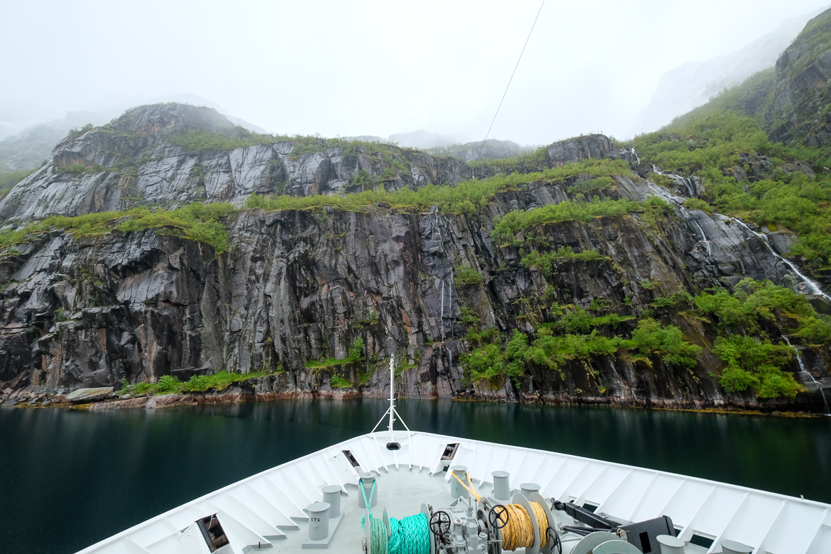 Steile, glatte Felswände säumen die Einfahrt in den Trollfjord.