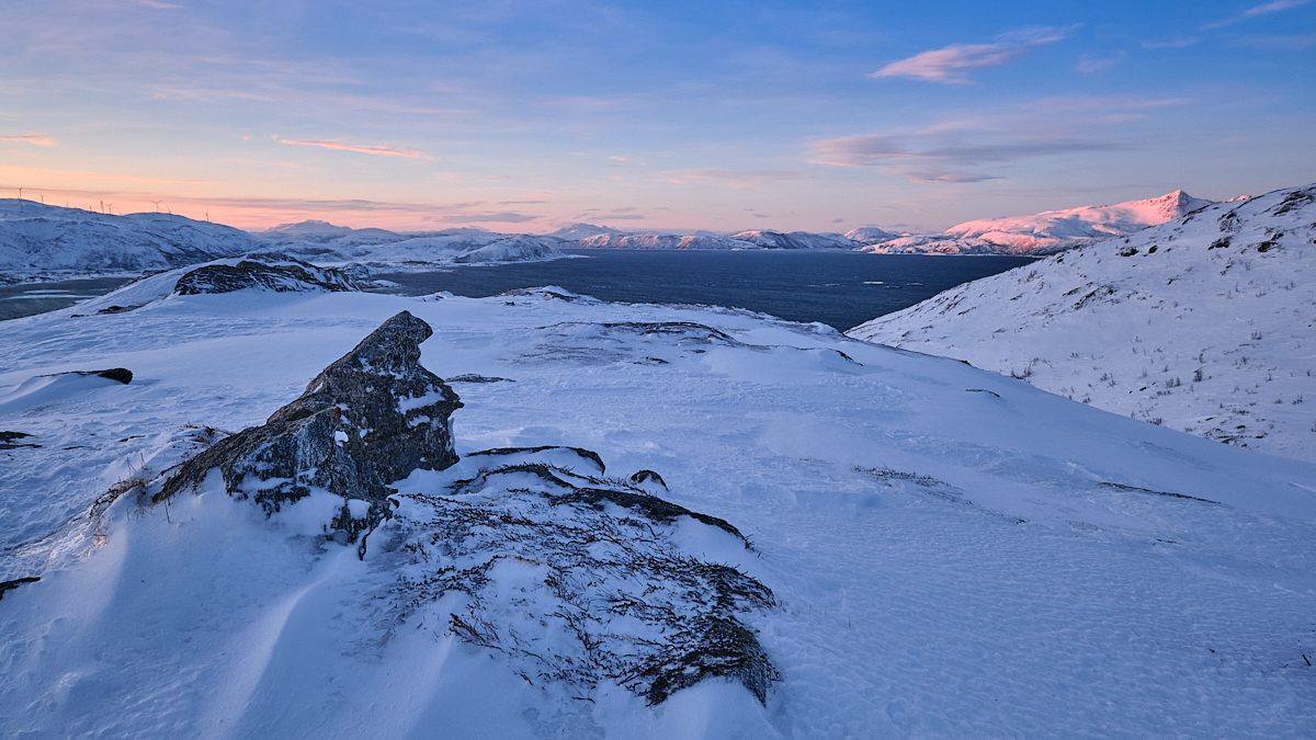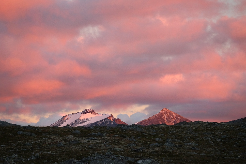 Erstes zartes Rosa im Aufstieg zum Nordkollen auf Hillesøya.
