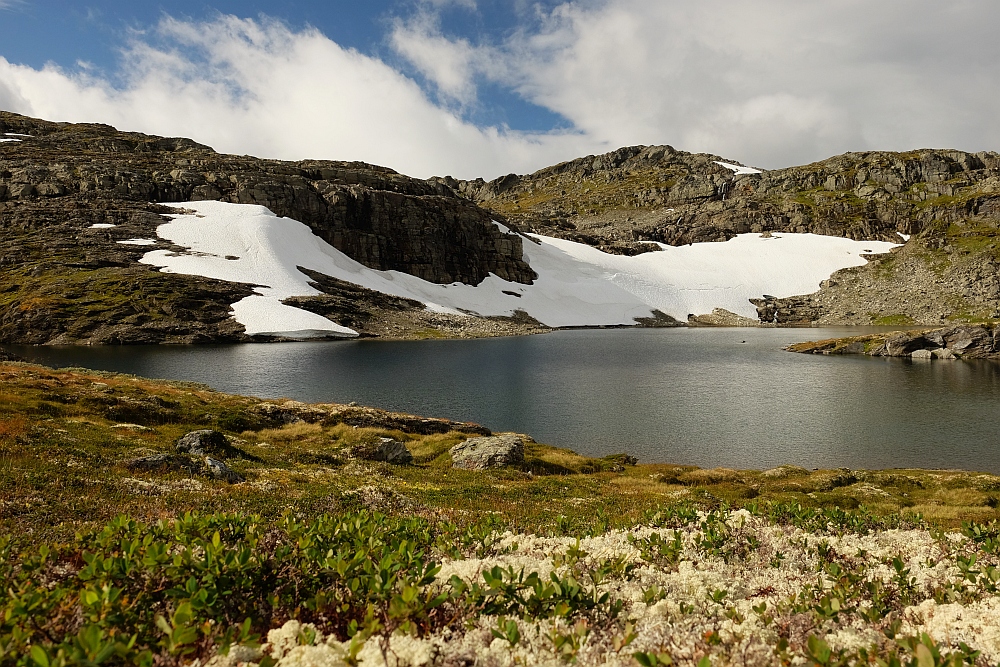 Der See Ovrisvatnet liegt ebenfalls auf der etwa 1000m hoch gelegenen Hochebene Vikafjell