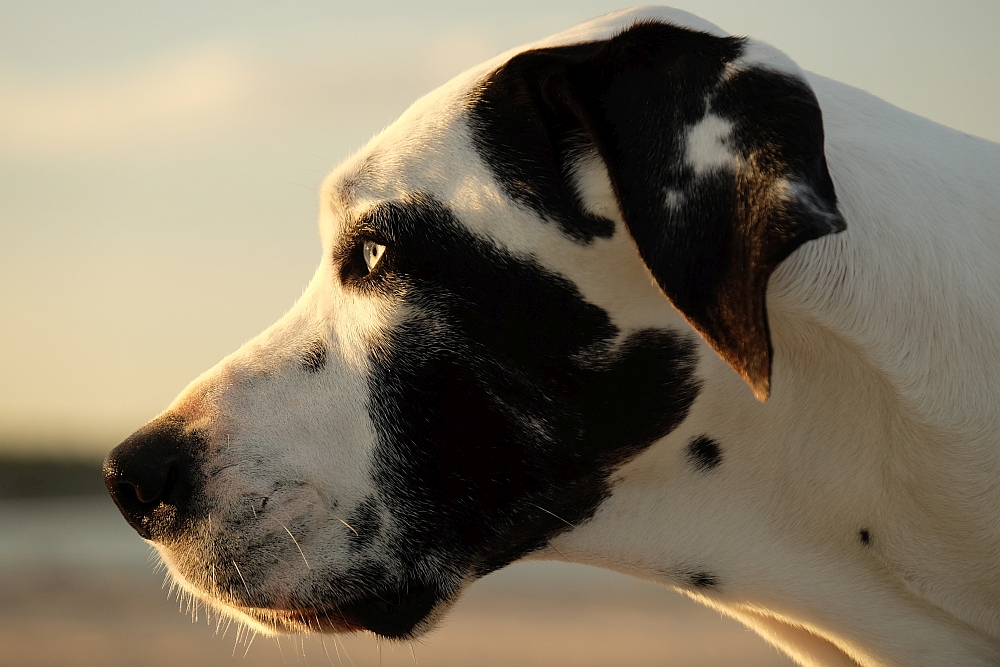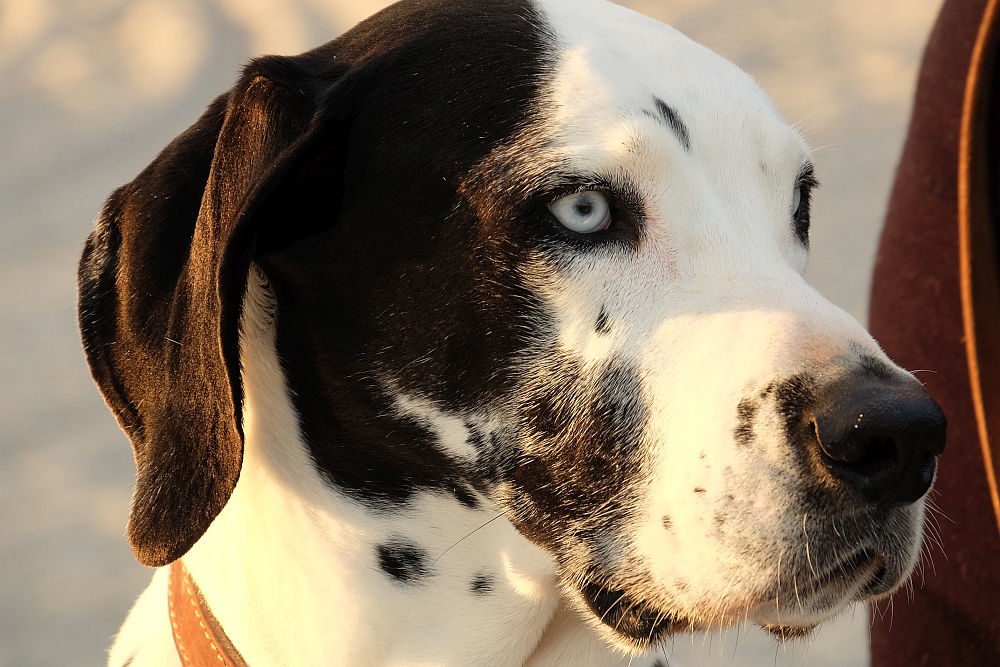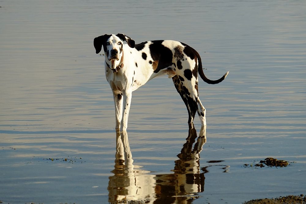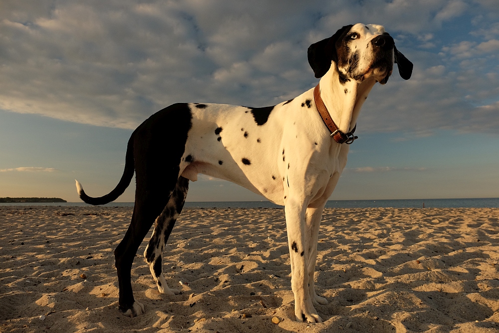 Bailey am grossen Sandstrand von Ramberg auf den Lofoten