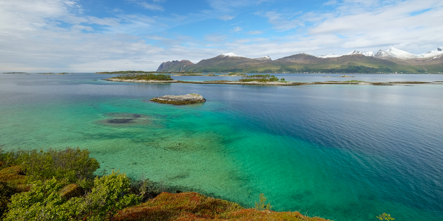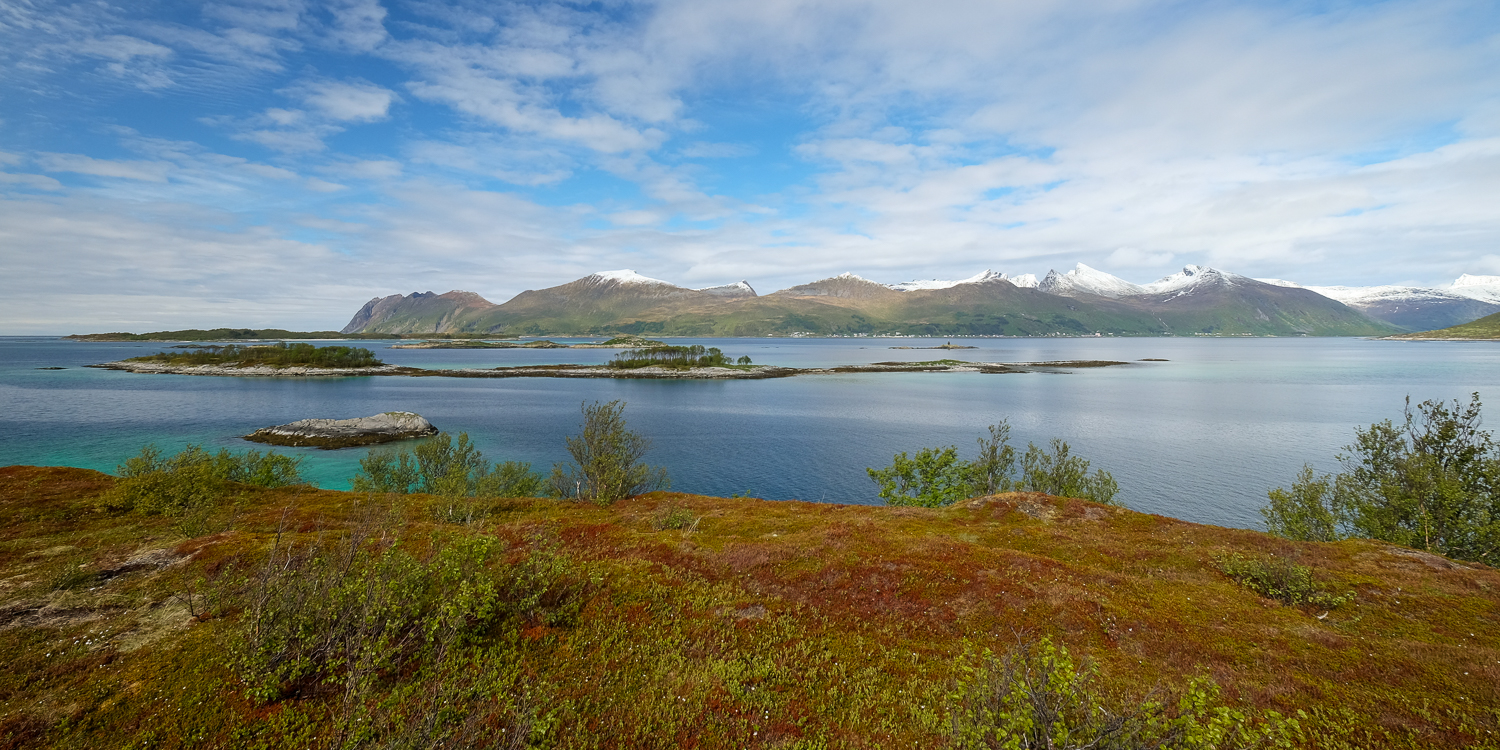 Die Gegend um Tromsø ist geprägt von unzähligen Fjorden, Inseln und Bergen.