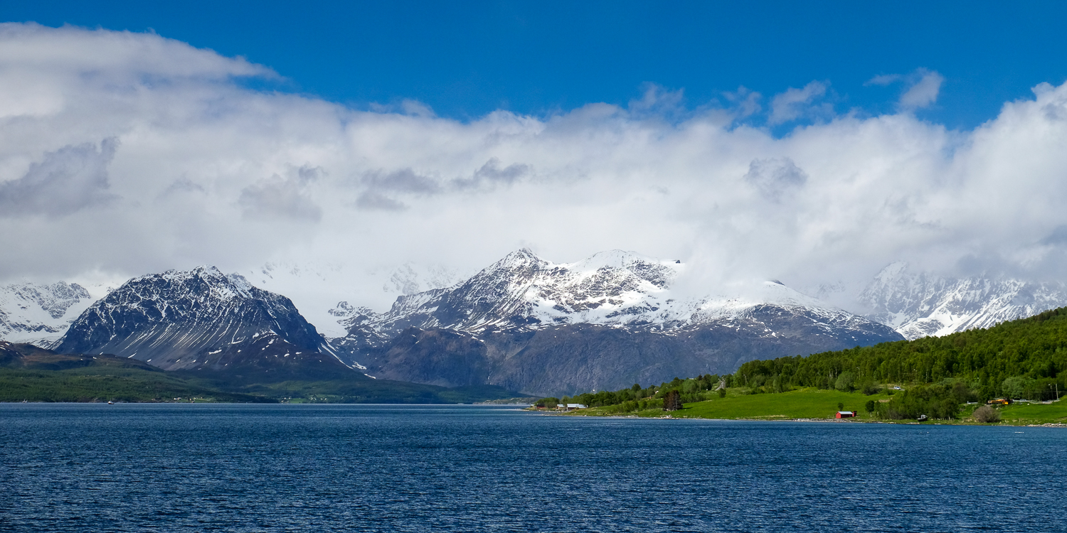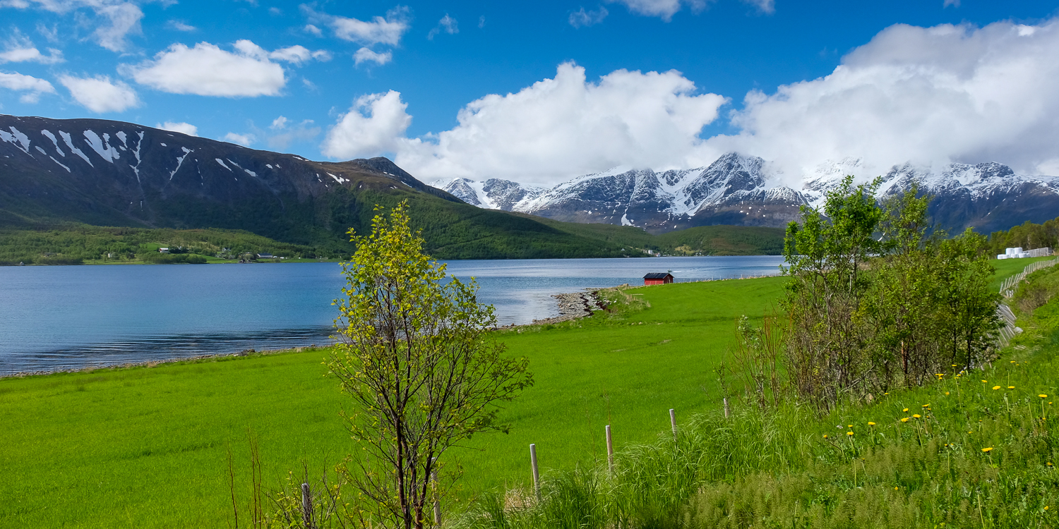 Auch am Lyngenfjord hat der Frühling Einzug gehalten, die Lyngenallpen hingegen sind noch schneebedeckt.